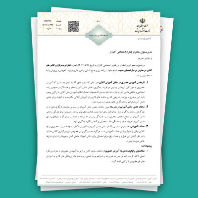 امیدواریم رئیسجمهور محترم و وزیر آموزش و پرورش نسبت به اعتراض اولیا ترتیب اثر دهند و با تشکیل کلاسهای آنلاین مخالفت نمایند.