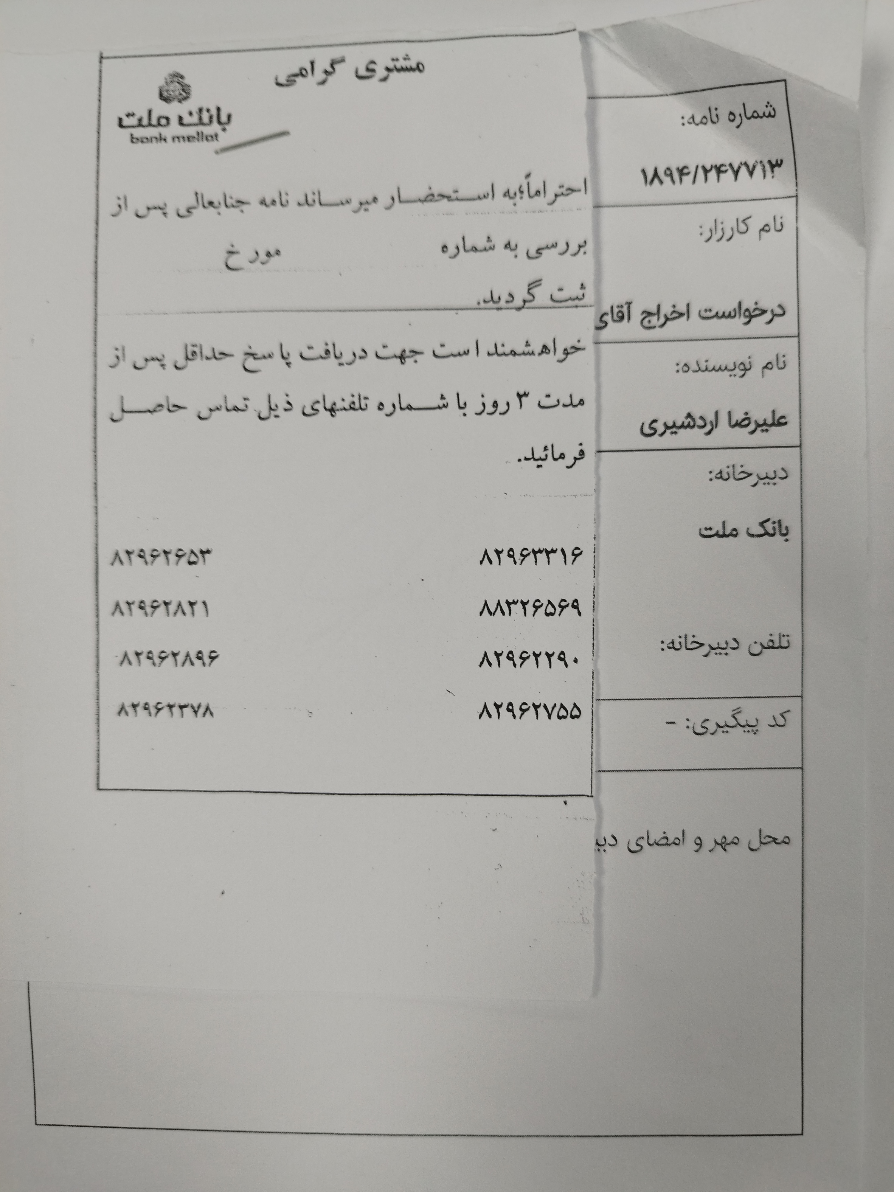 مدیرعامل محترم بانک شهر