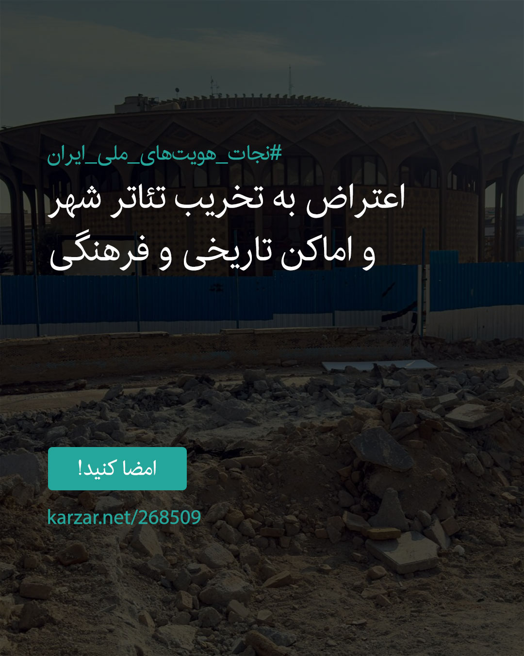 احتراماً به استحضار میرساند، «تئاتر شهر» که یکی از نمادهای هنری و فرهنگی کشور و مایه فخر و هویت شهر تهران است، در سالهای اخیر به دلایل مختلف در معرض تهدید و نابودی قرار گرفته است. متأسفانه برخی اقدامات انسانی بیارتباط با هنر، شامل ساخت و سازهای غیرمجاز و فعالیتهای خطرساز در نزدیکی این مکان تاریخی و فرهنگی، به تدریج این میراث ارزشمند را تهدید میکند.