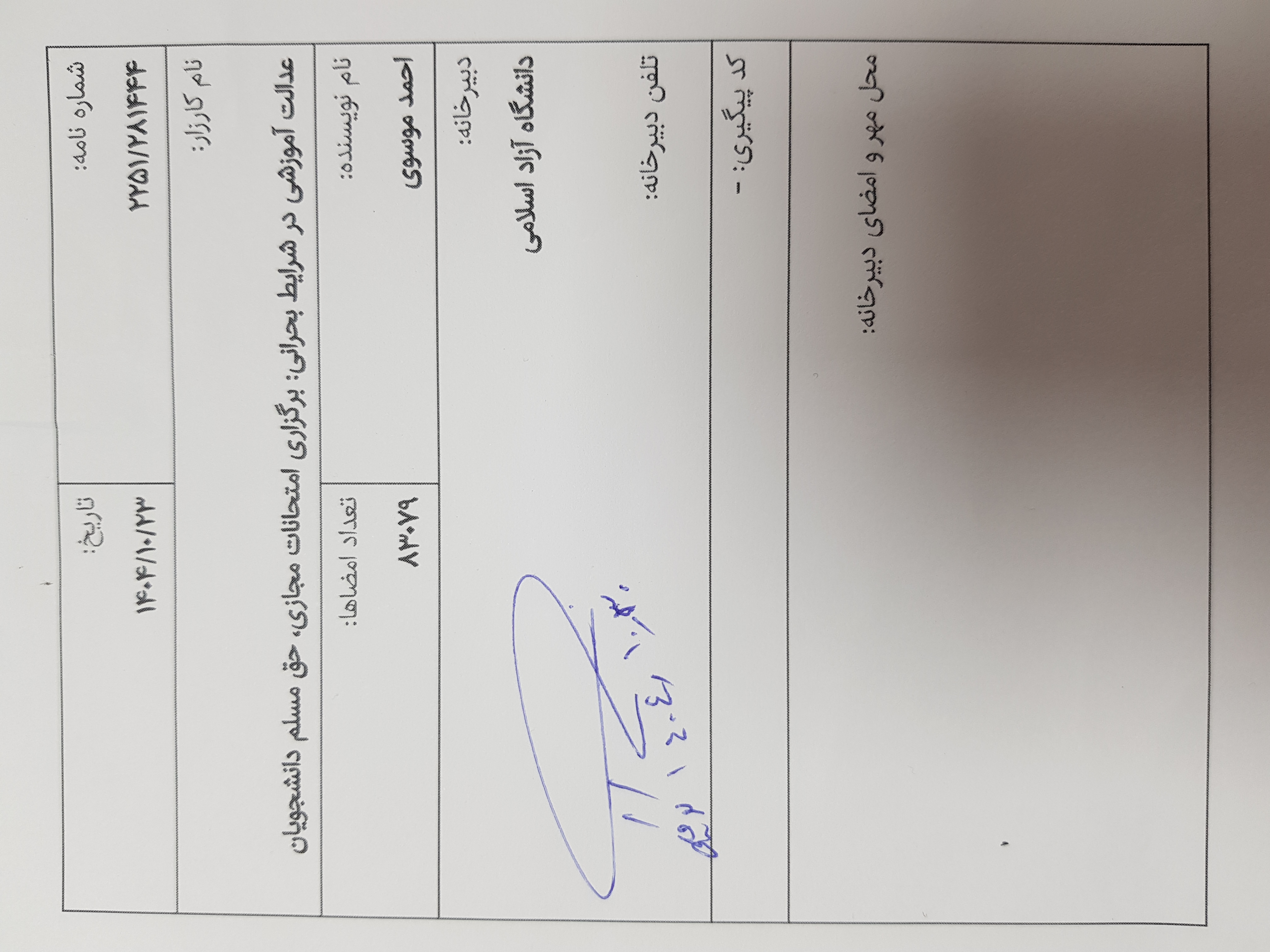 بدینوسیله، از مسئولین محترم دانشگاه آزاد اسلامی، بهویژه ریاست دانشگاه و معاونتهای ذیربط، درخواست داریم تا امتحانات ترم مهر ۱۴۰۴ بهصورت مجازی و در تاریخهای تعیینشده برگزار شود تا دانشجویان قادر به ادامه تحصیل خود در شرایط آرامتری باشند و از مشکلات و چالشهای موجود رهایی یابند.