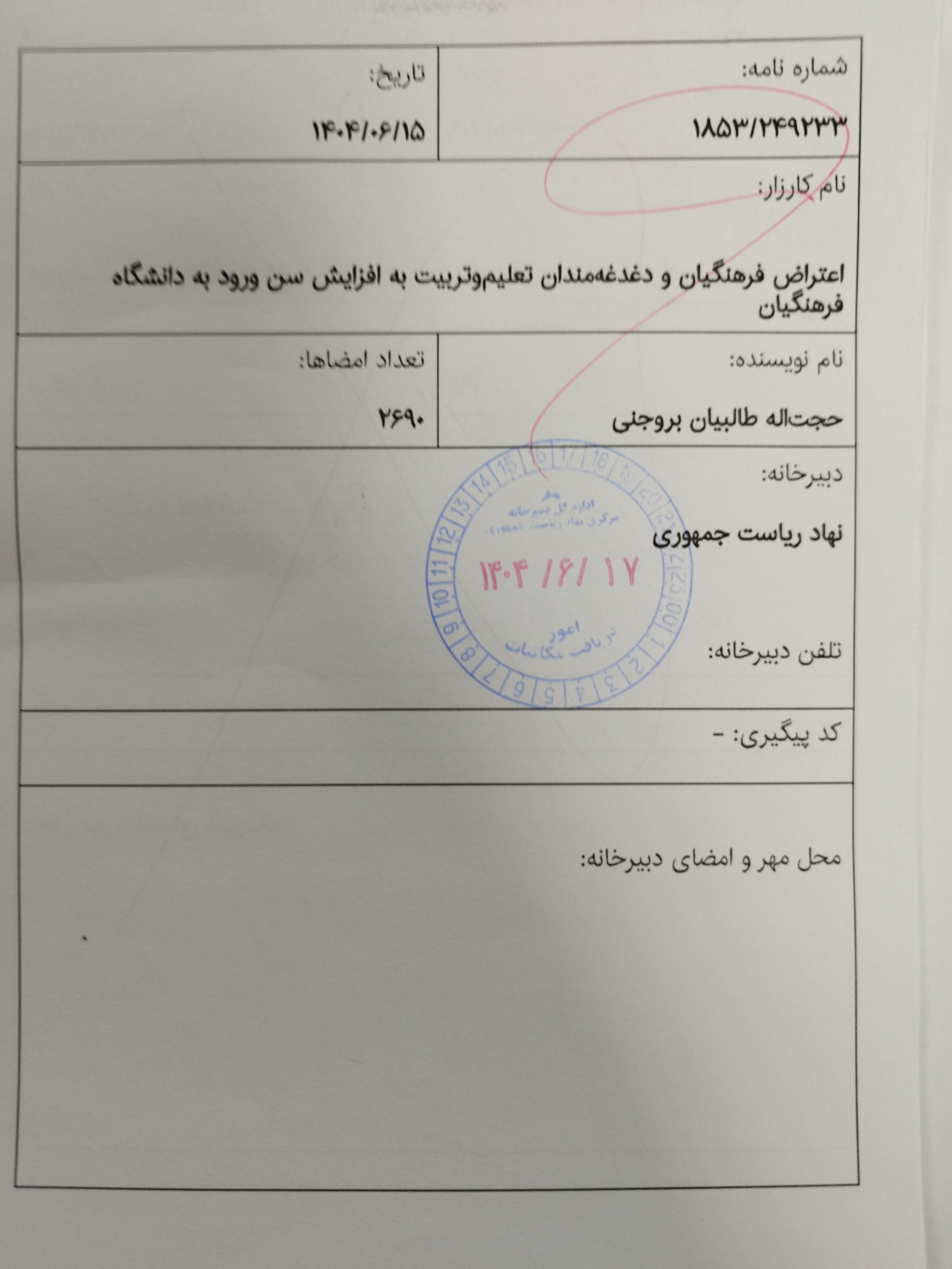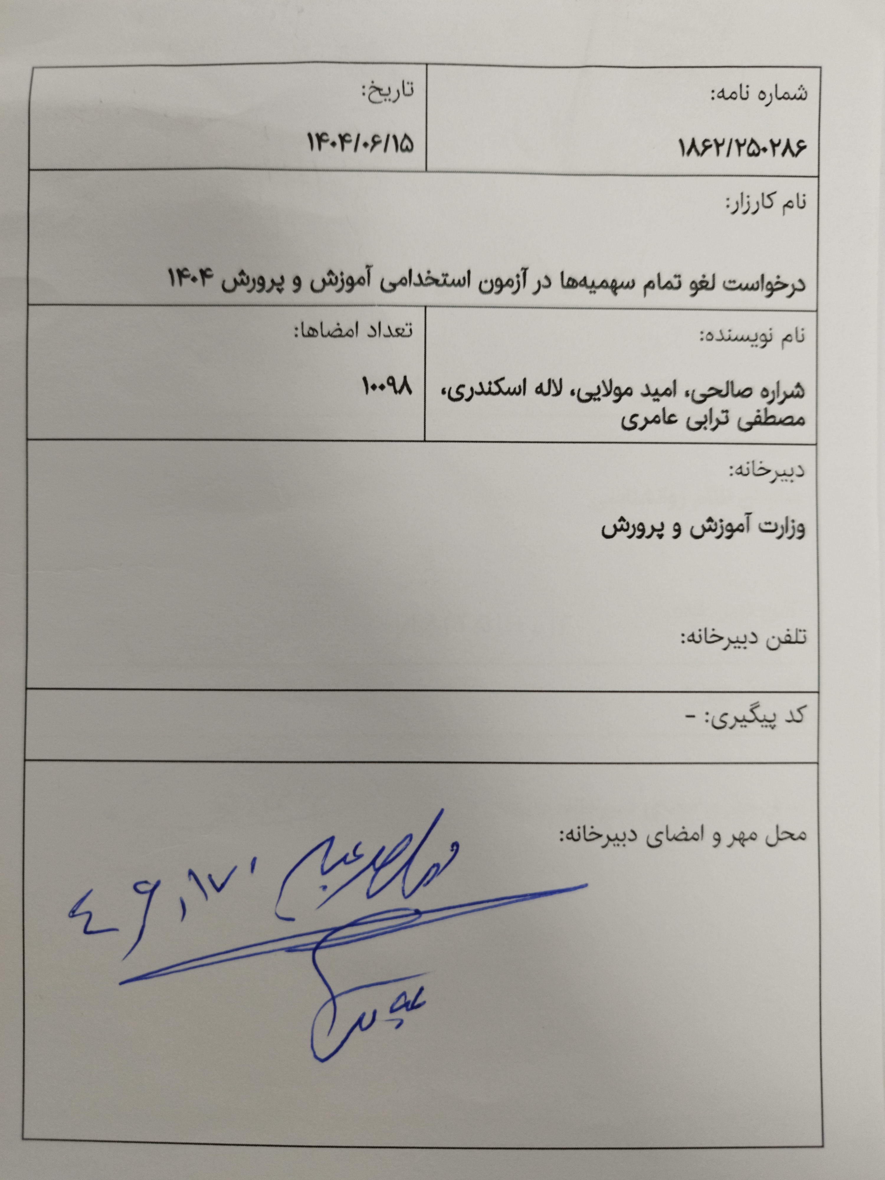 این کارزار در دبیرخانه وزارت آموزش و پرورش ثبت شد.
