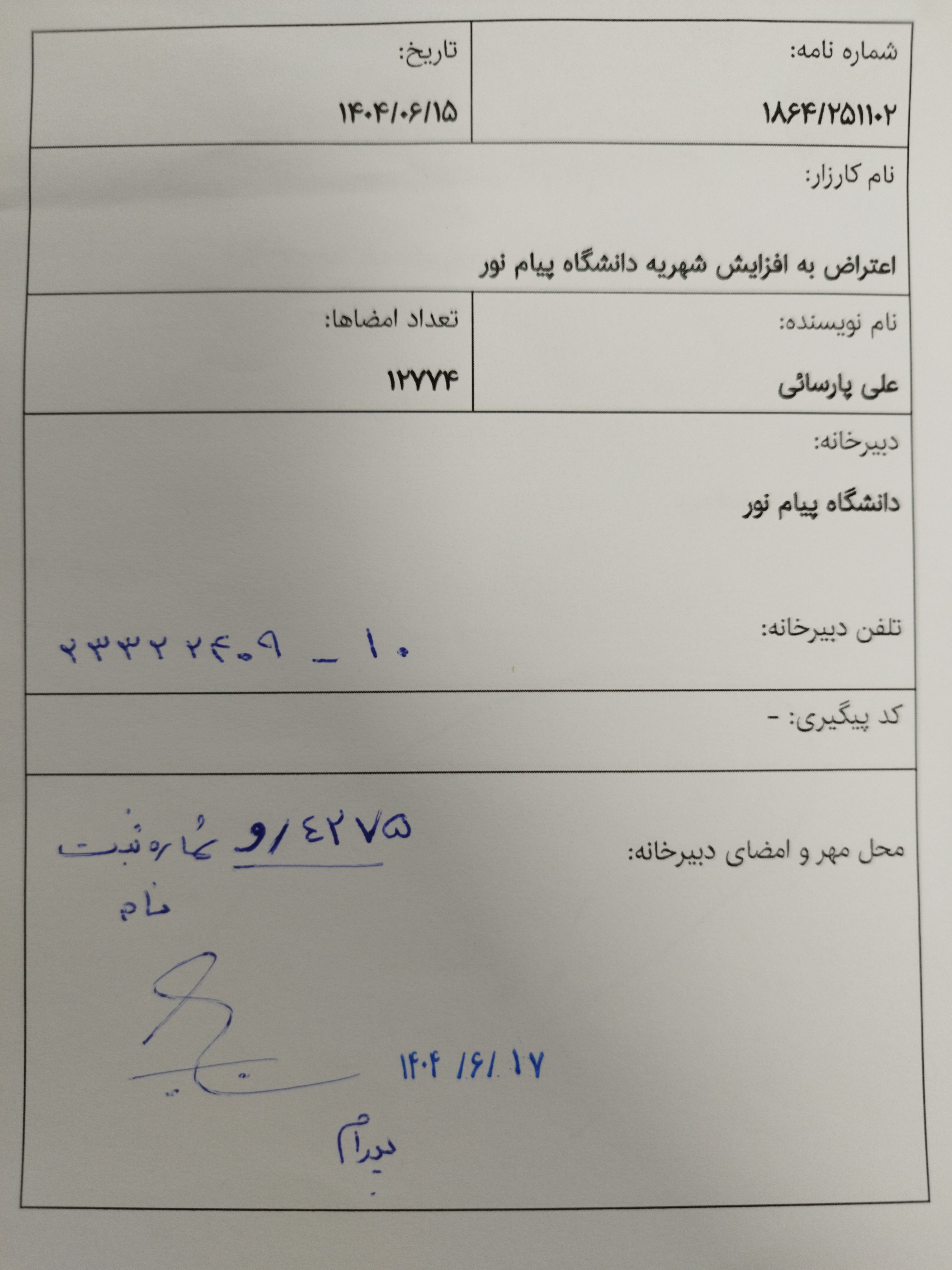این کارزار در دبیرخانه دانشگاه پیام نور ثبت شد.
