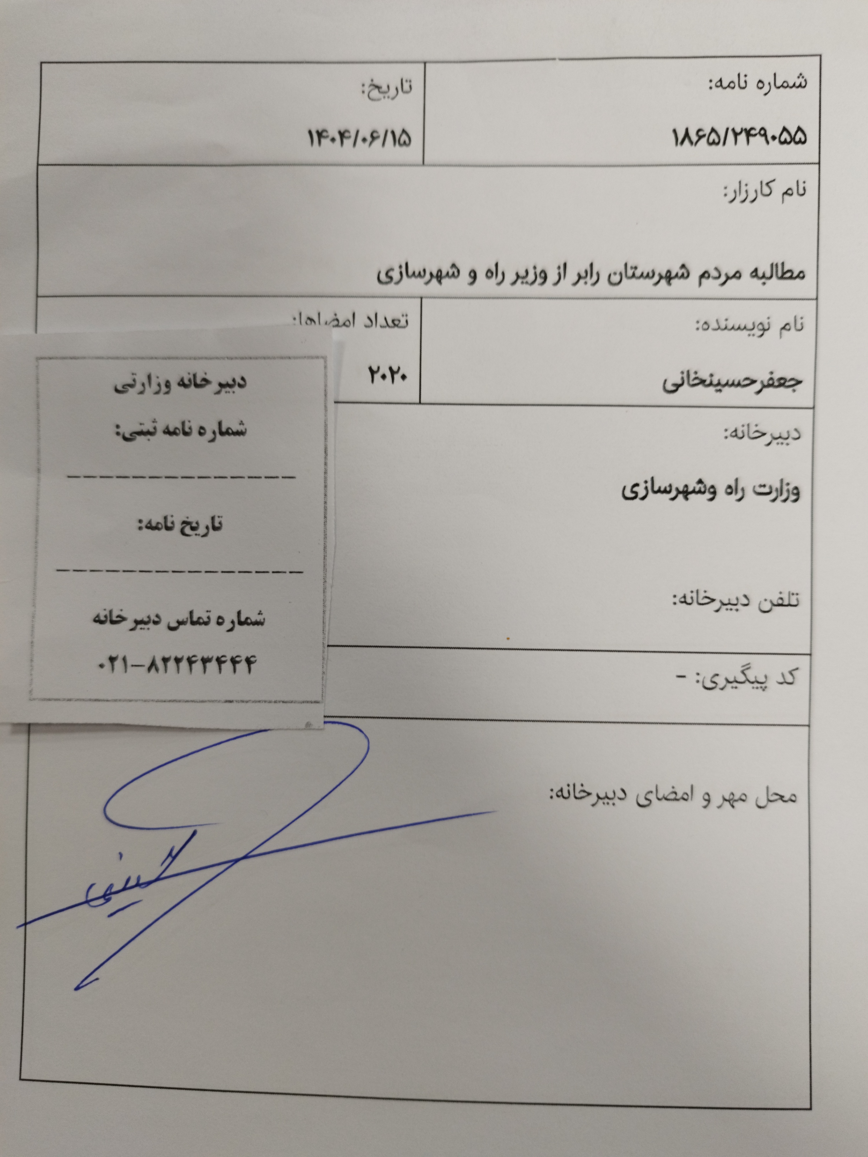 این کارزار در دبیرخانه وزارت راه و شهرسازی ثبت شد.