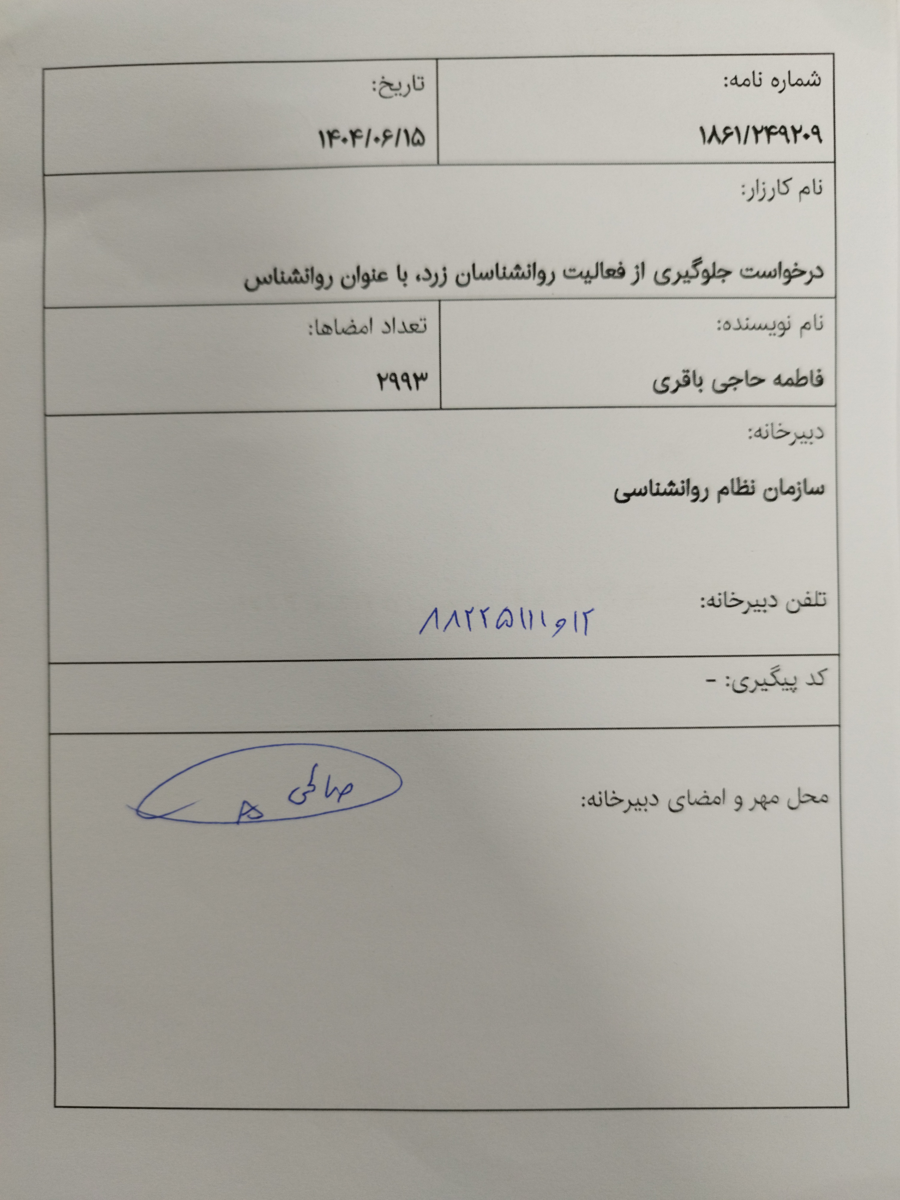 این کارزار در دبیرخانه سازمان نظام روانشناسی ثبت شد.