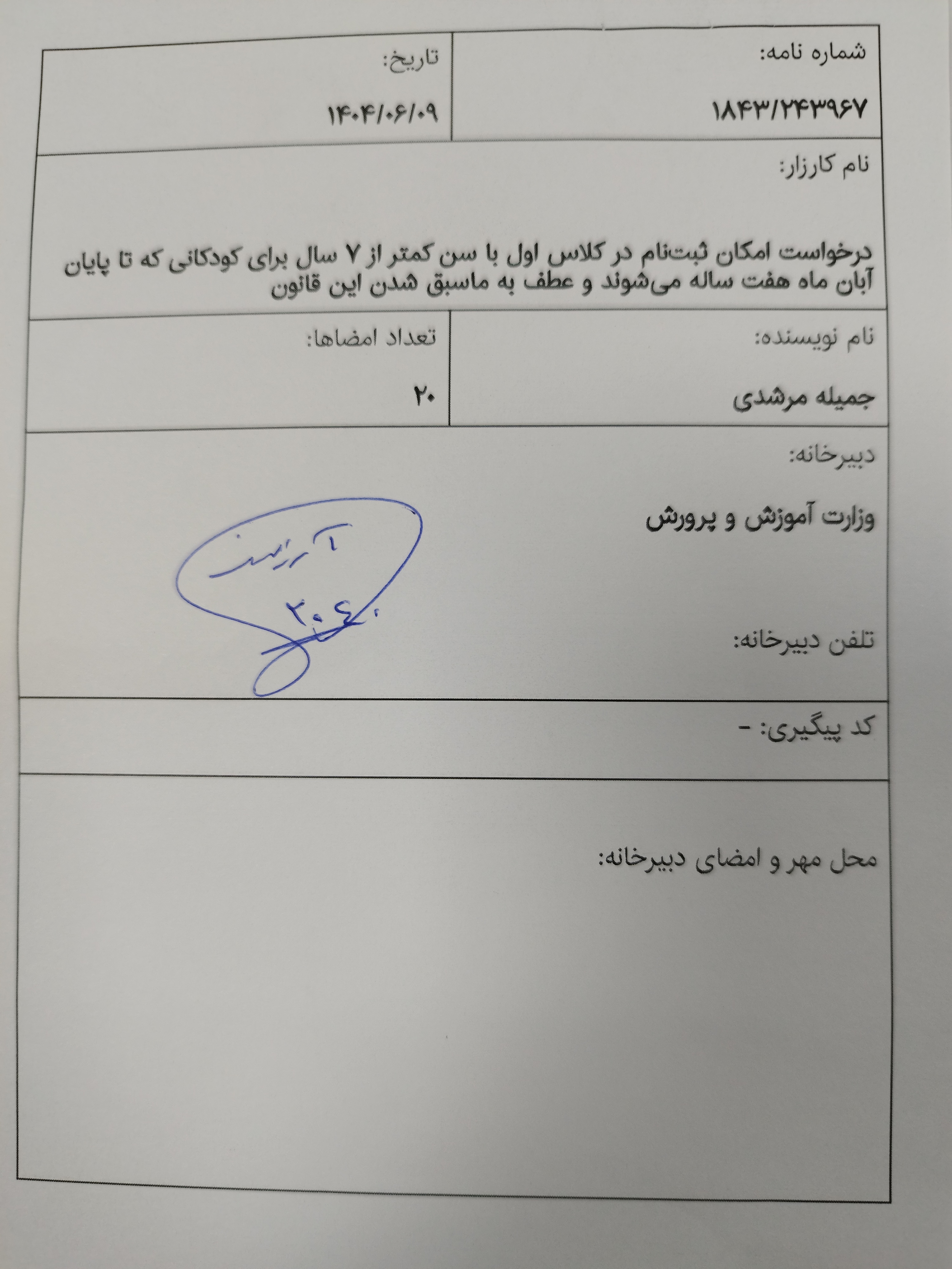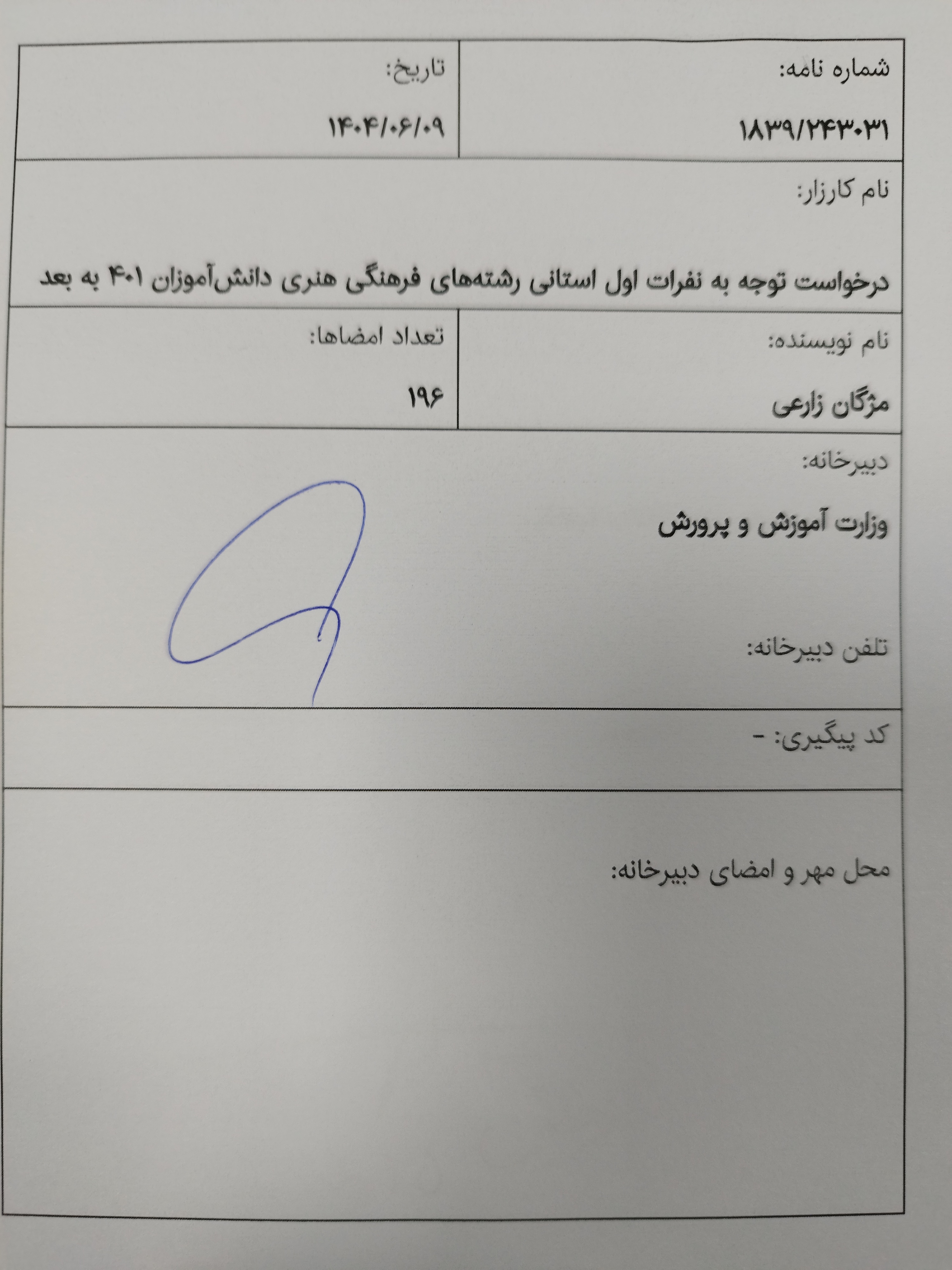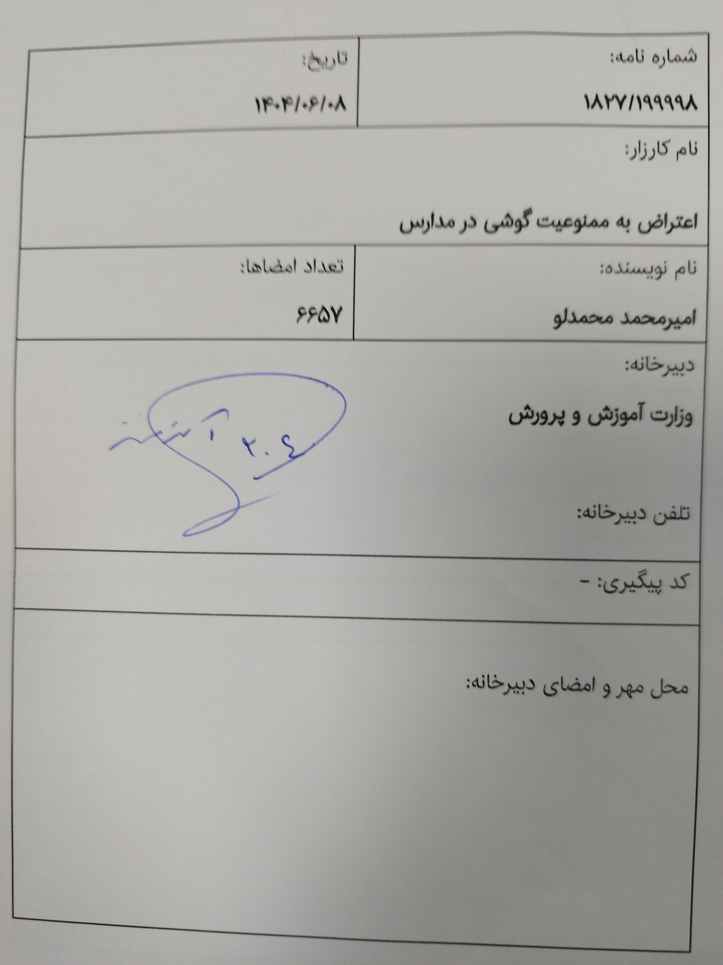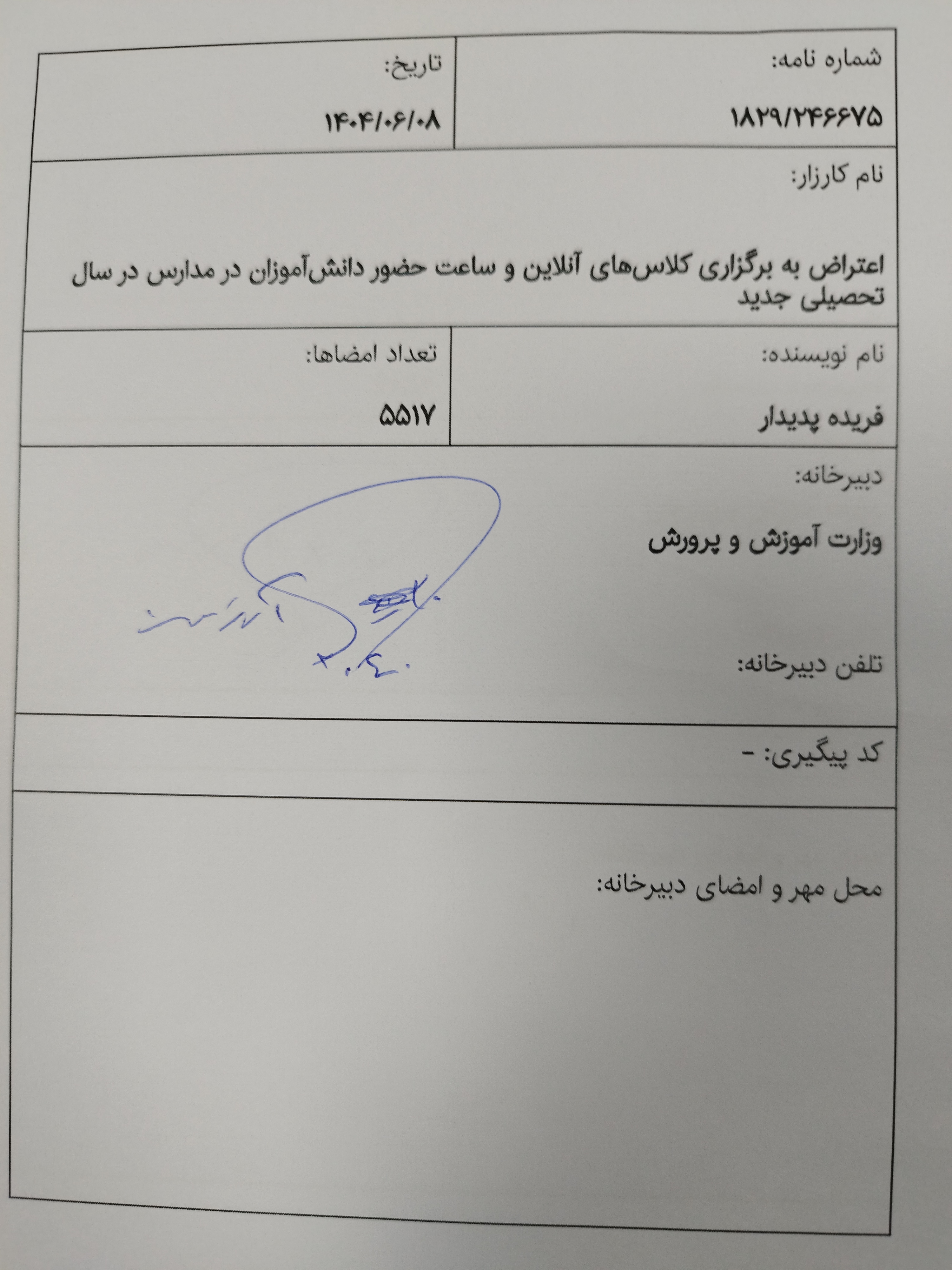 این کارزار در دبیرخانه وزارت آموزش و پرورش ثبت شد.