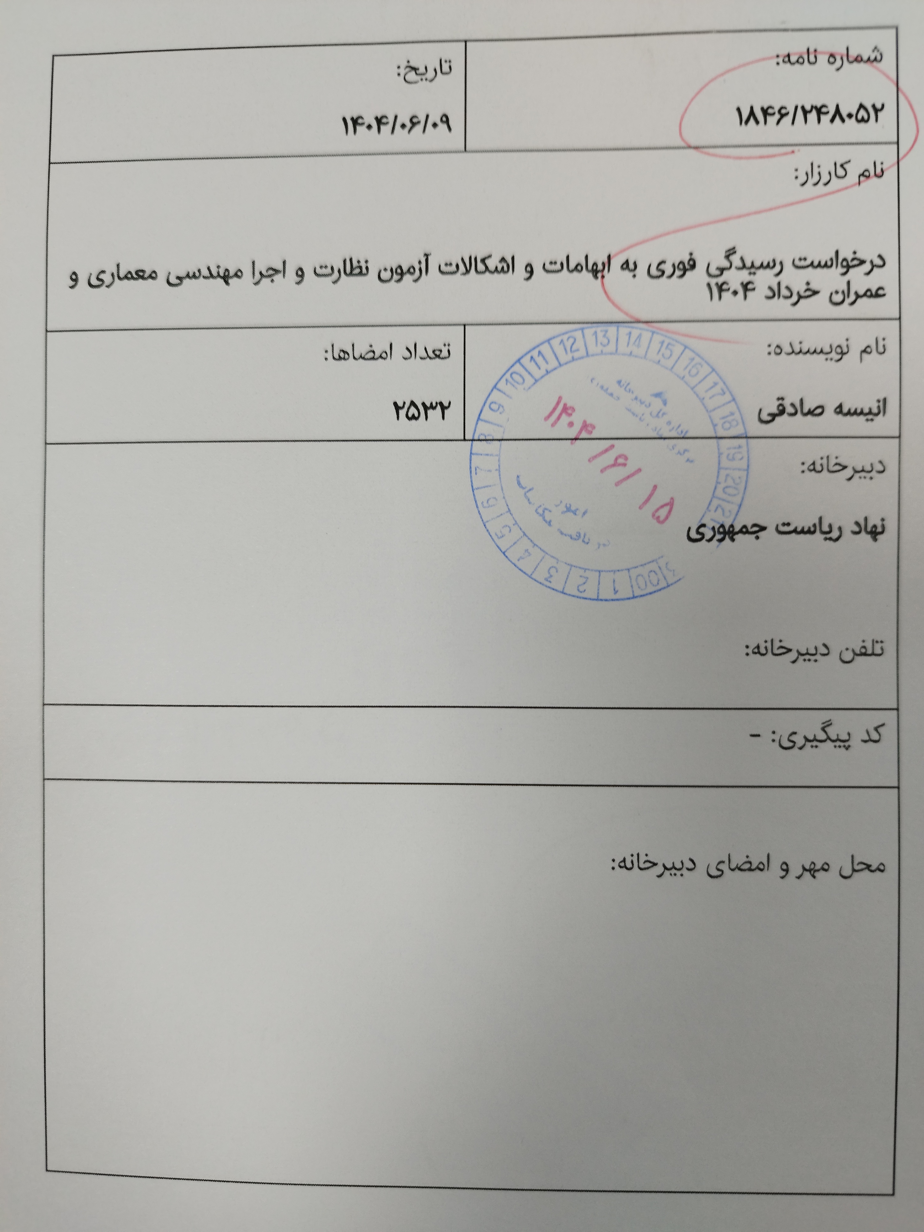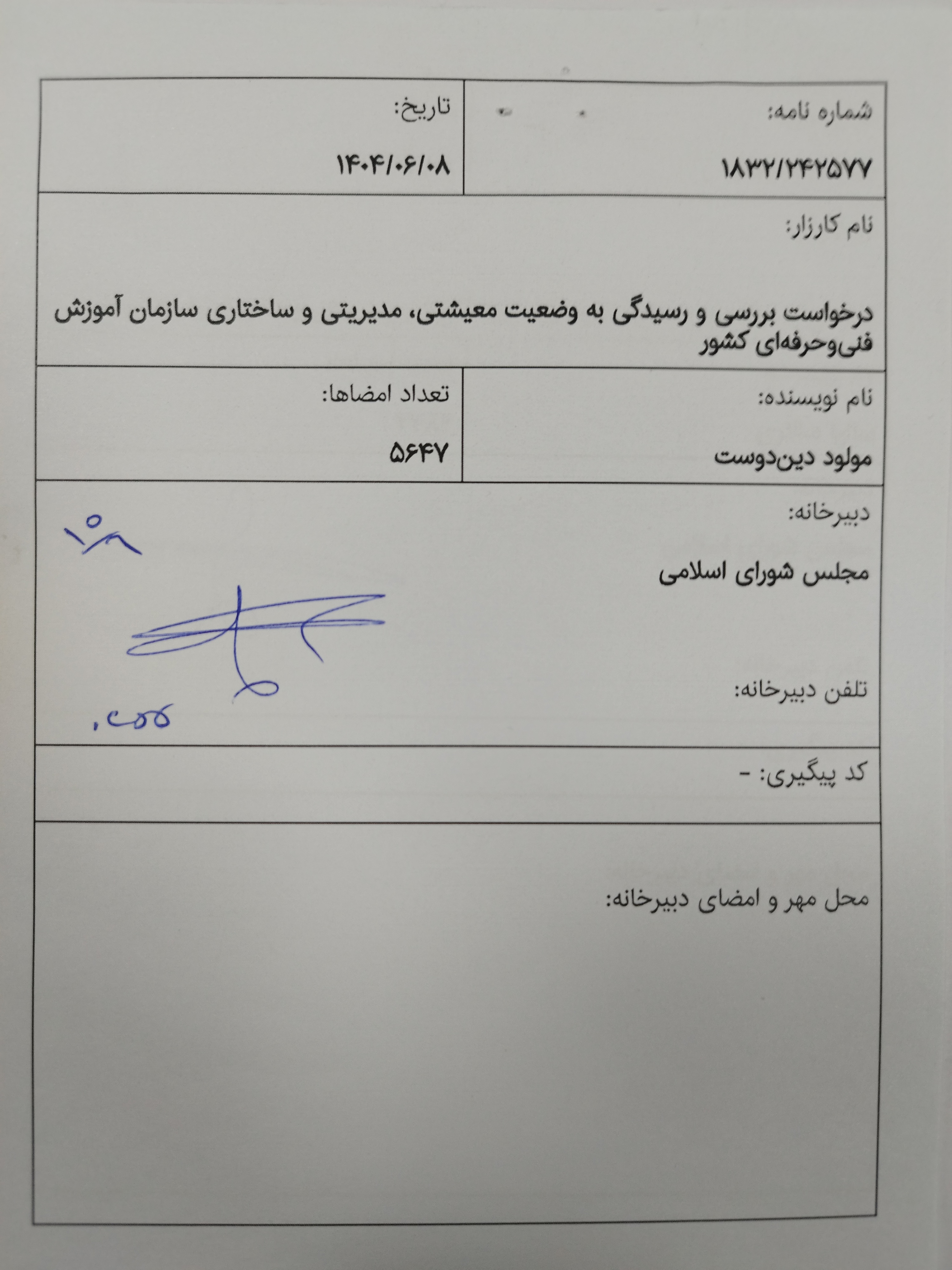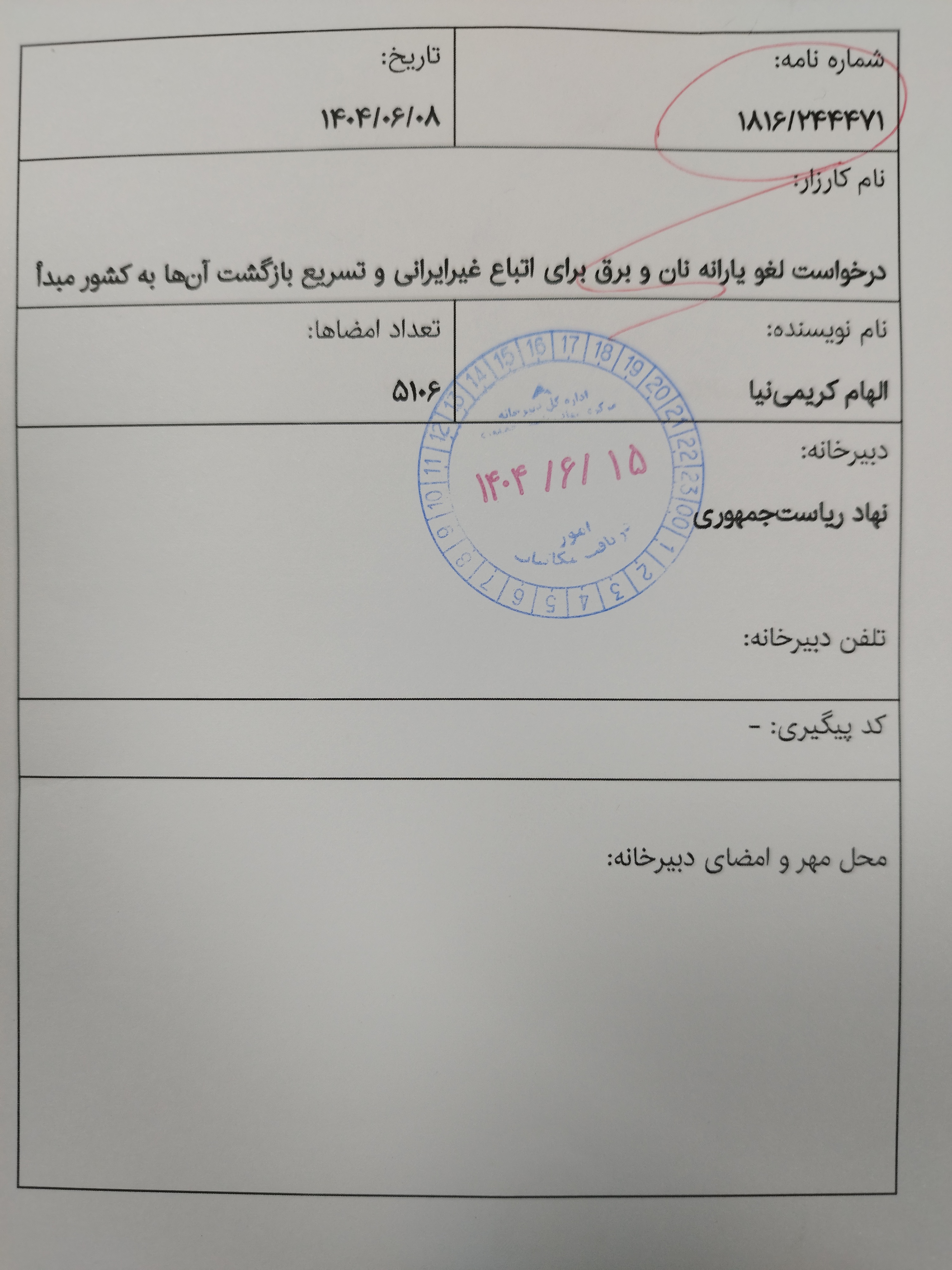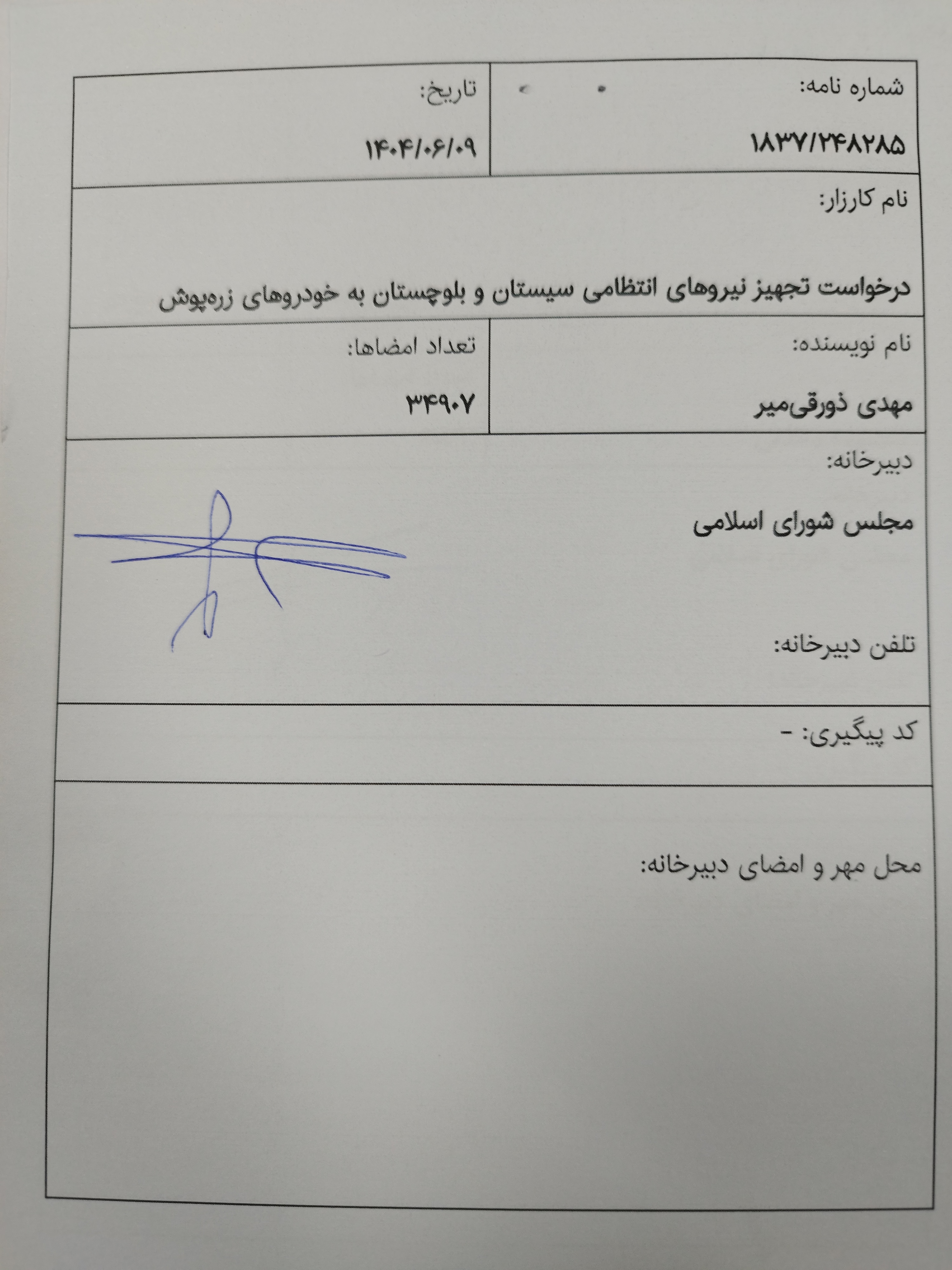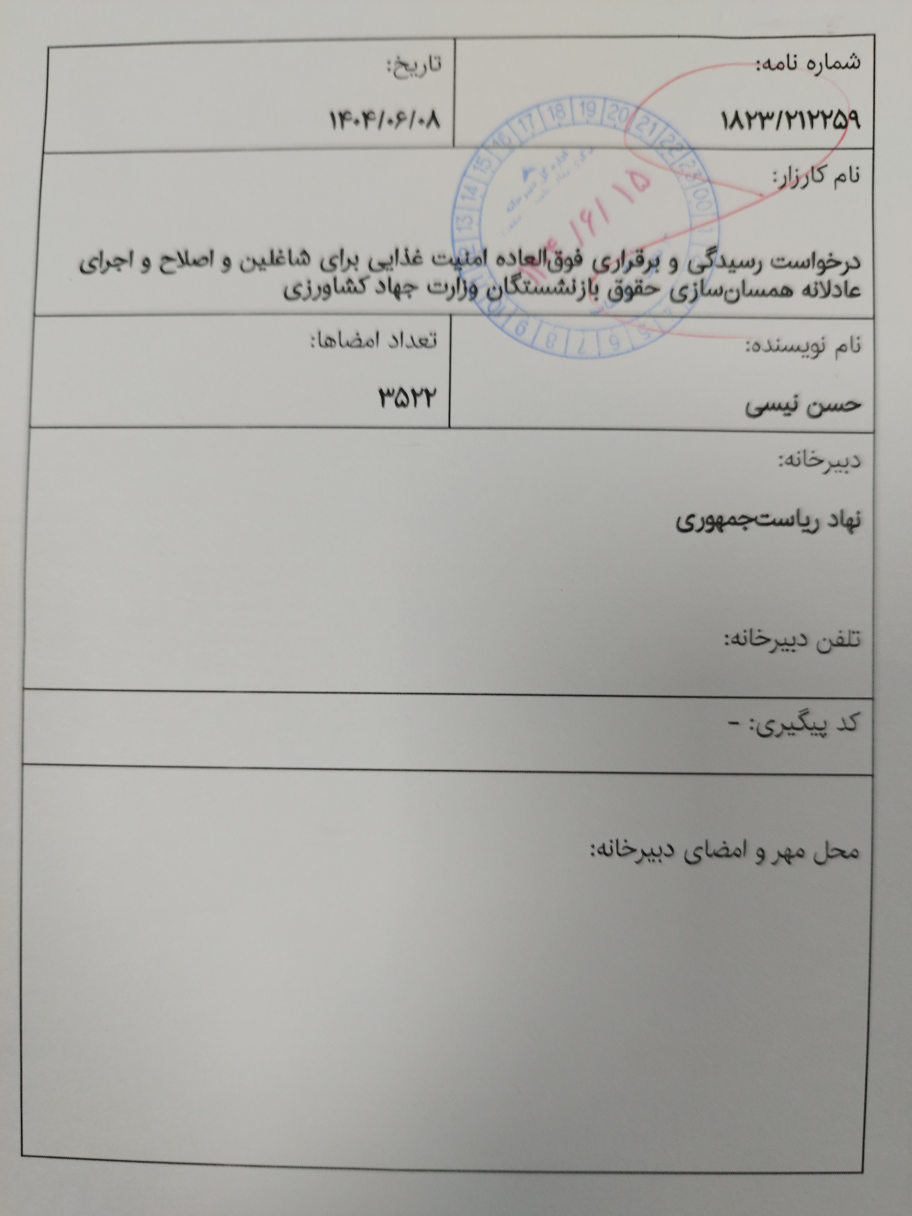 نامه گزارش این کارزار جهت پیگیری صادر شد.