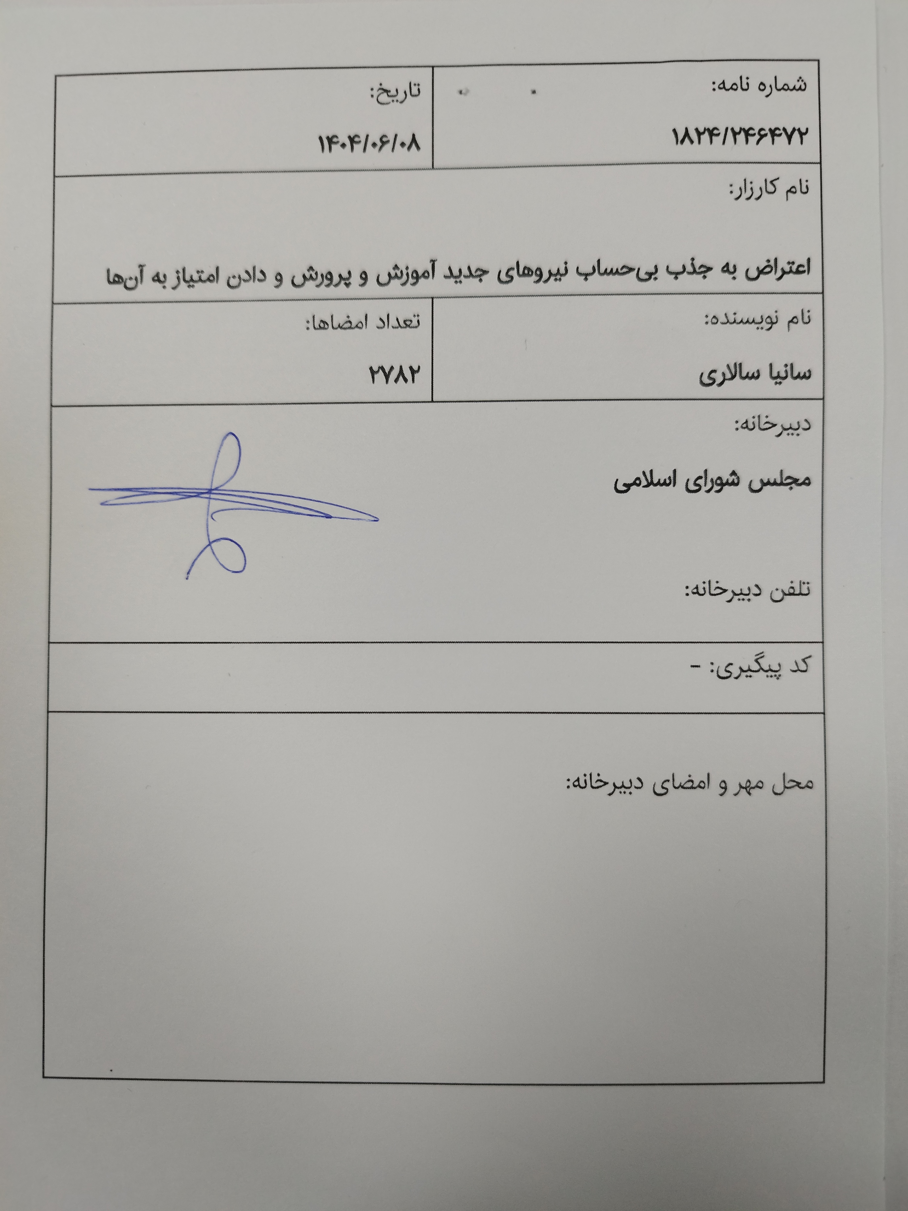 این کارزار در دبیرخانه مجلس شورای اسلامی ثبت شد.