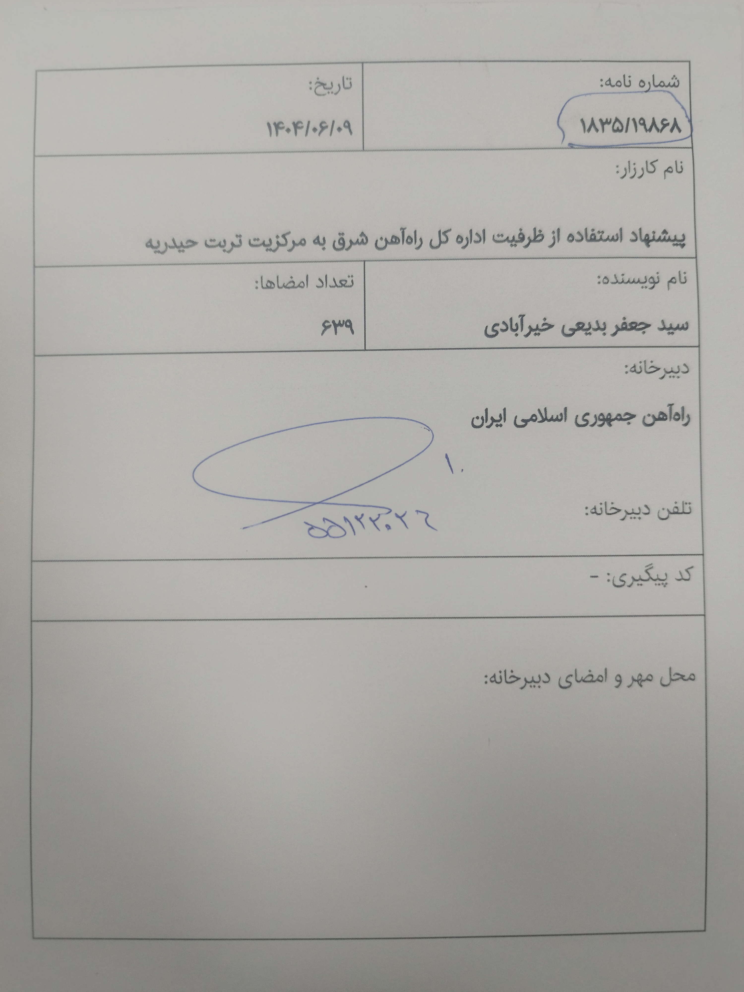 این کارزار در دبیرخانه راه آهن جمهوری اسلامی ایران ثبت شد.