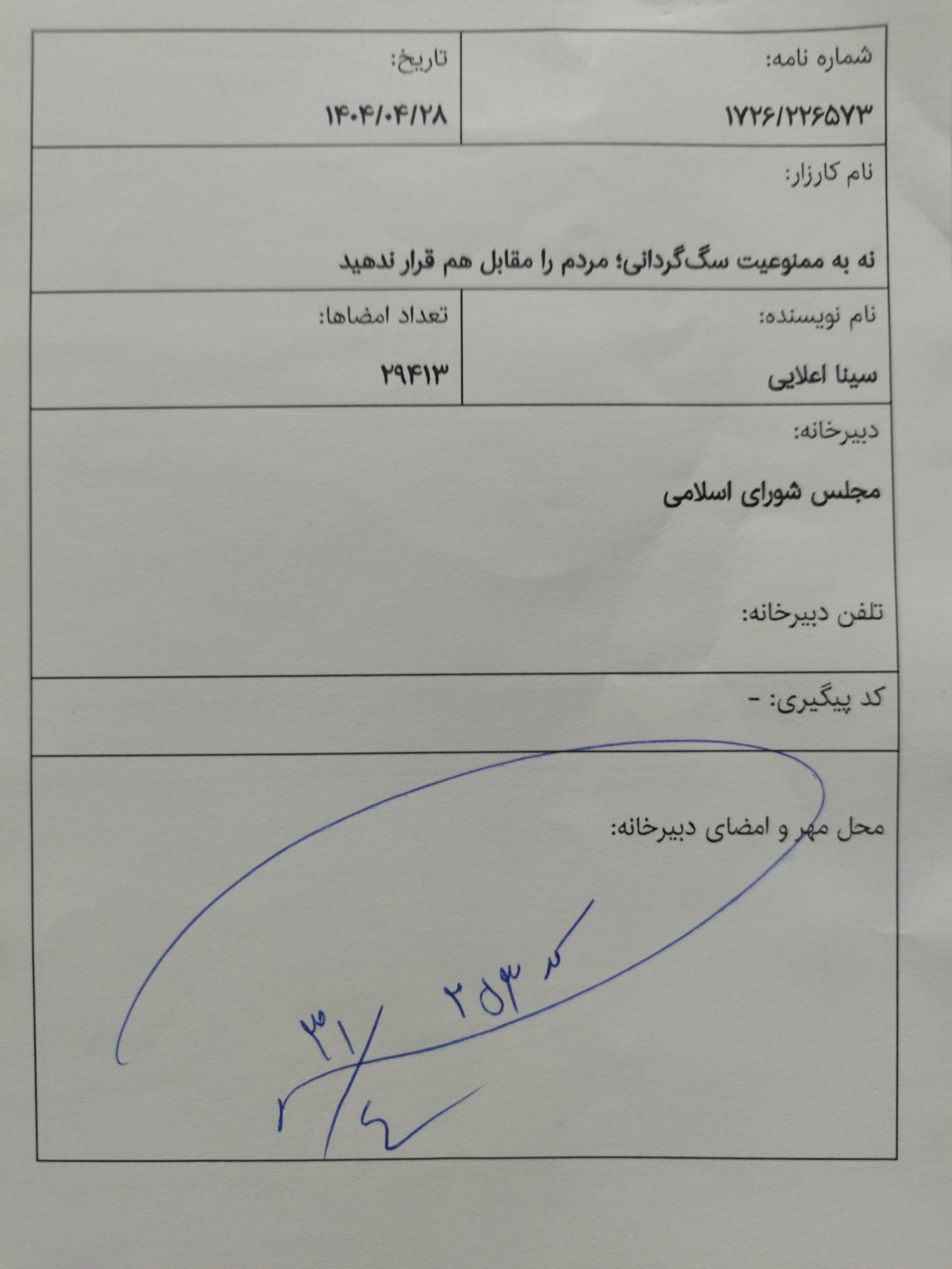 این کارزار در دبیرخانه مجلس شورای اسلامی ثبت شد.