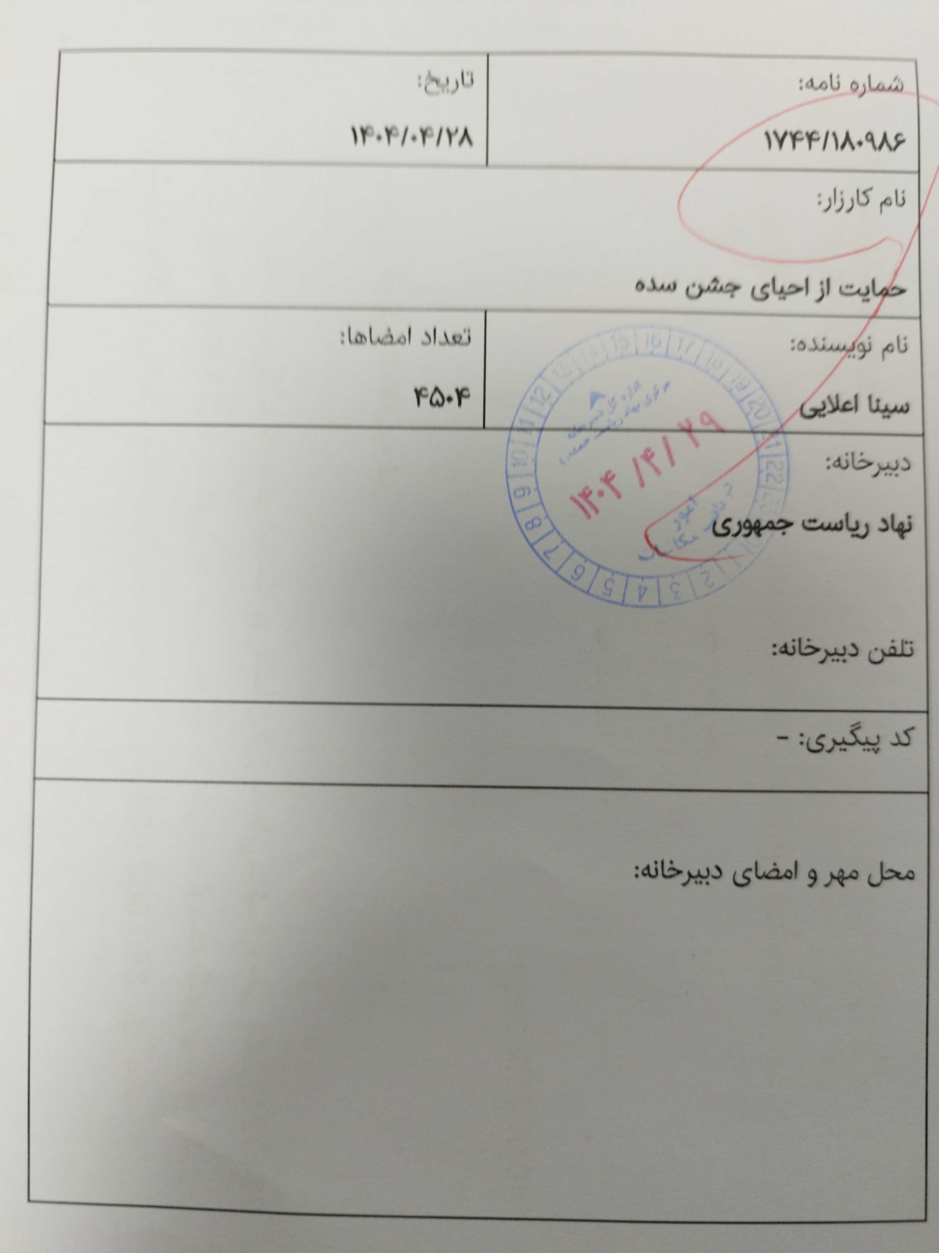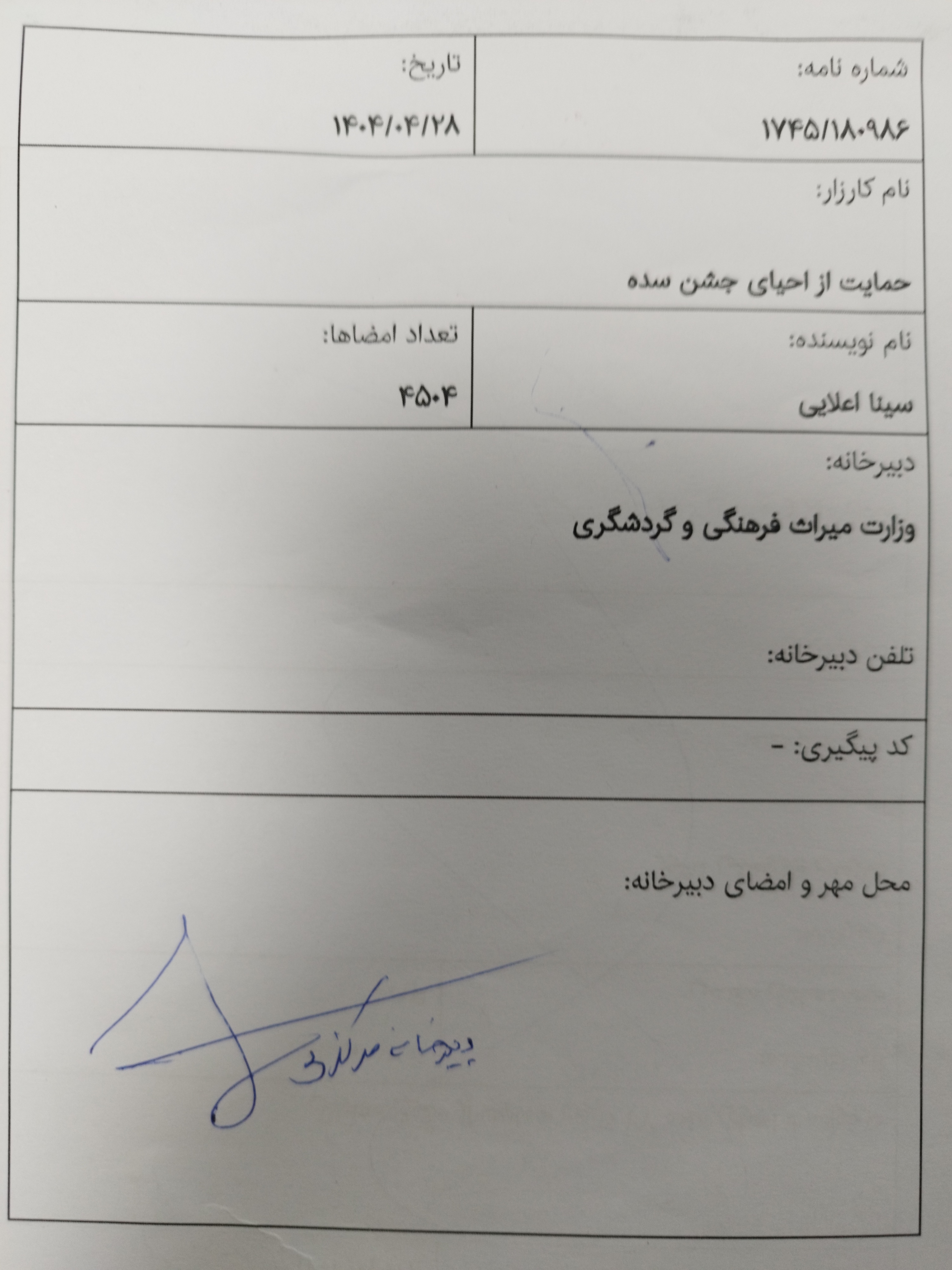 این کارزار در دبیرخانه وزارت میراث فرهنگی، گردشگری و صنایع دستی ثبت شد.