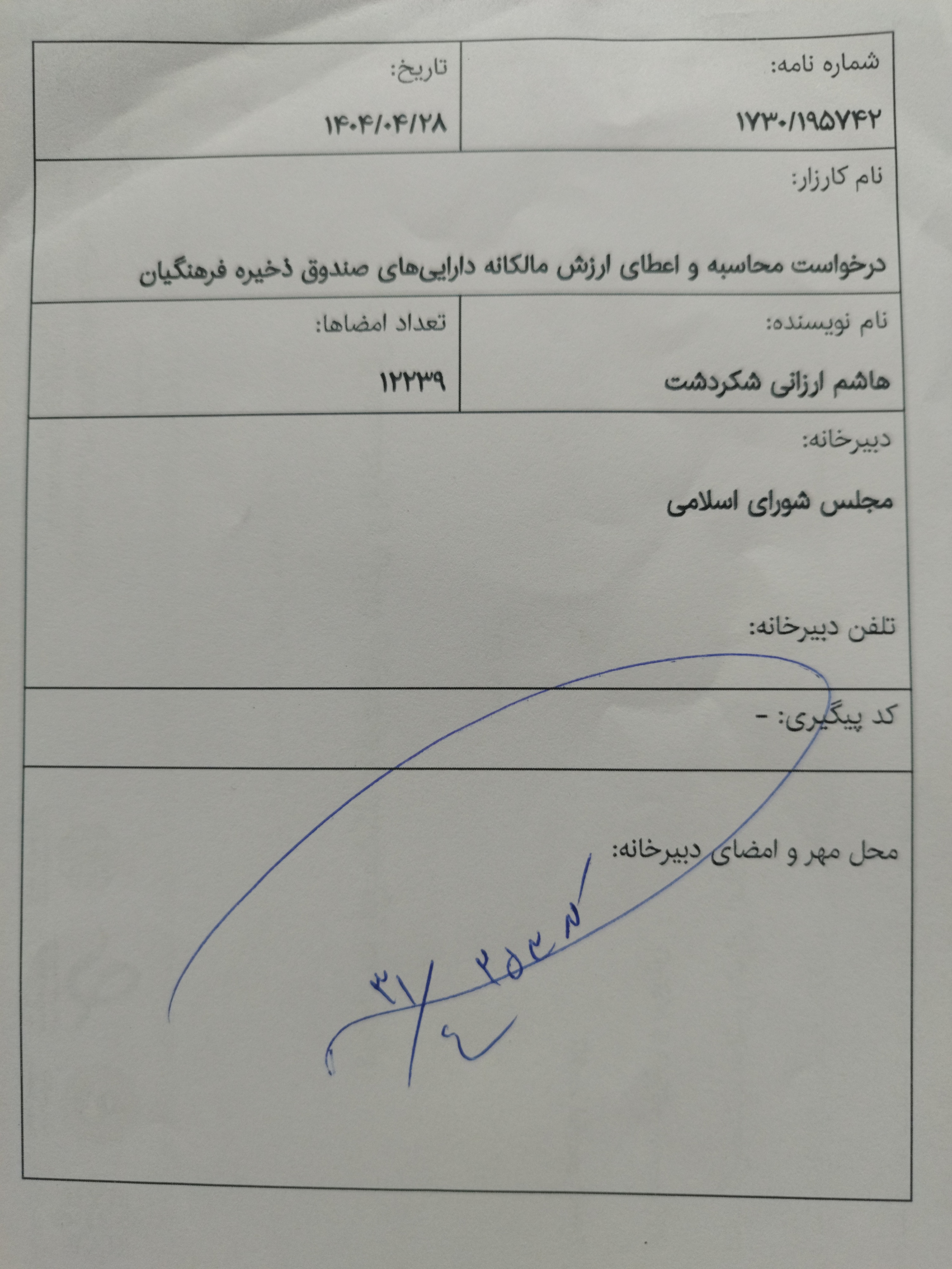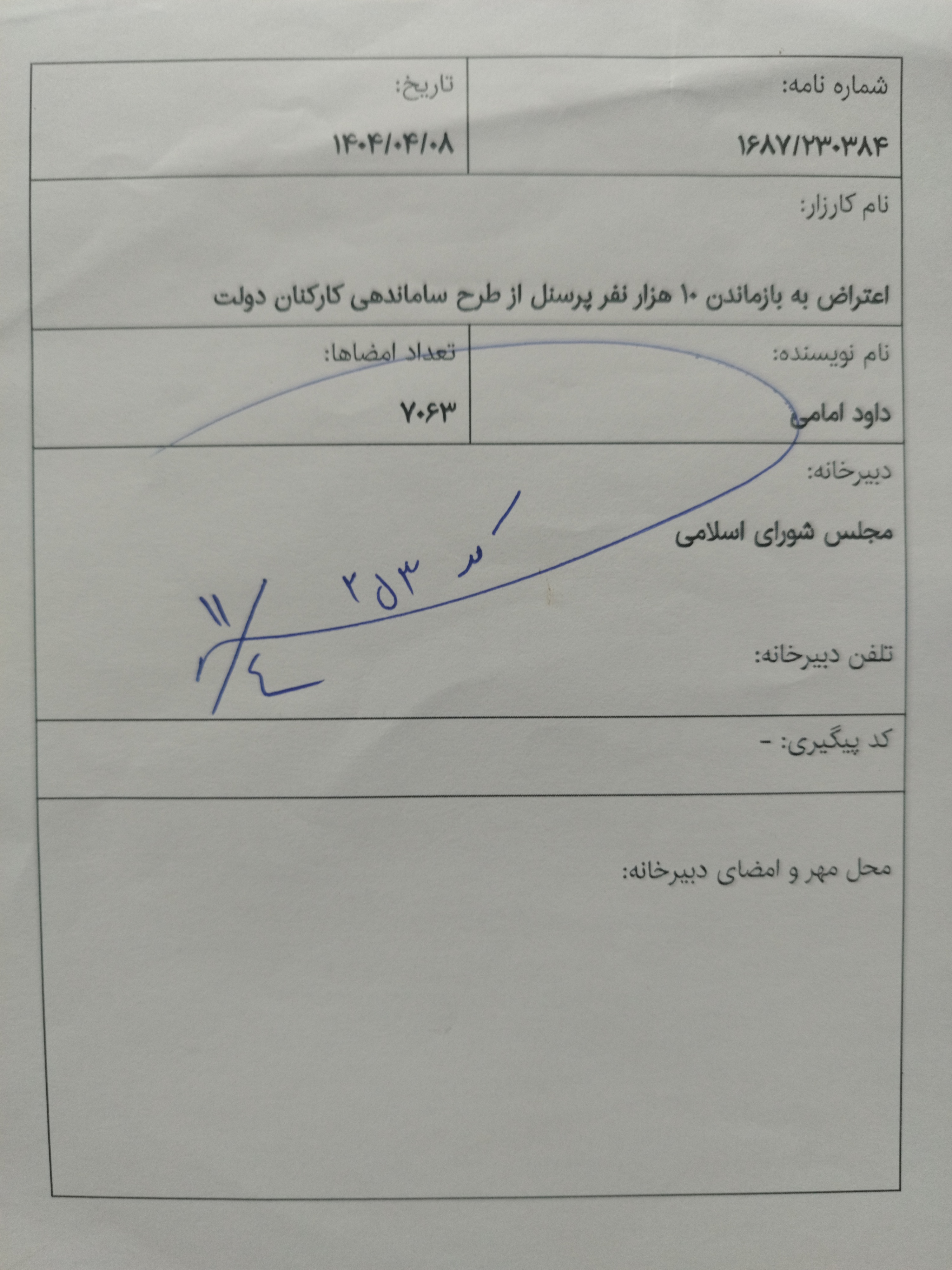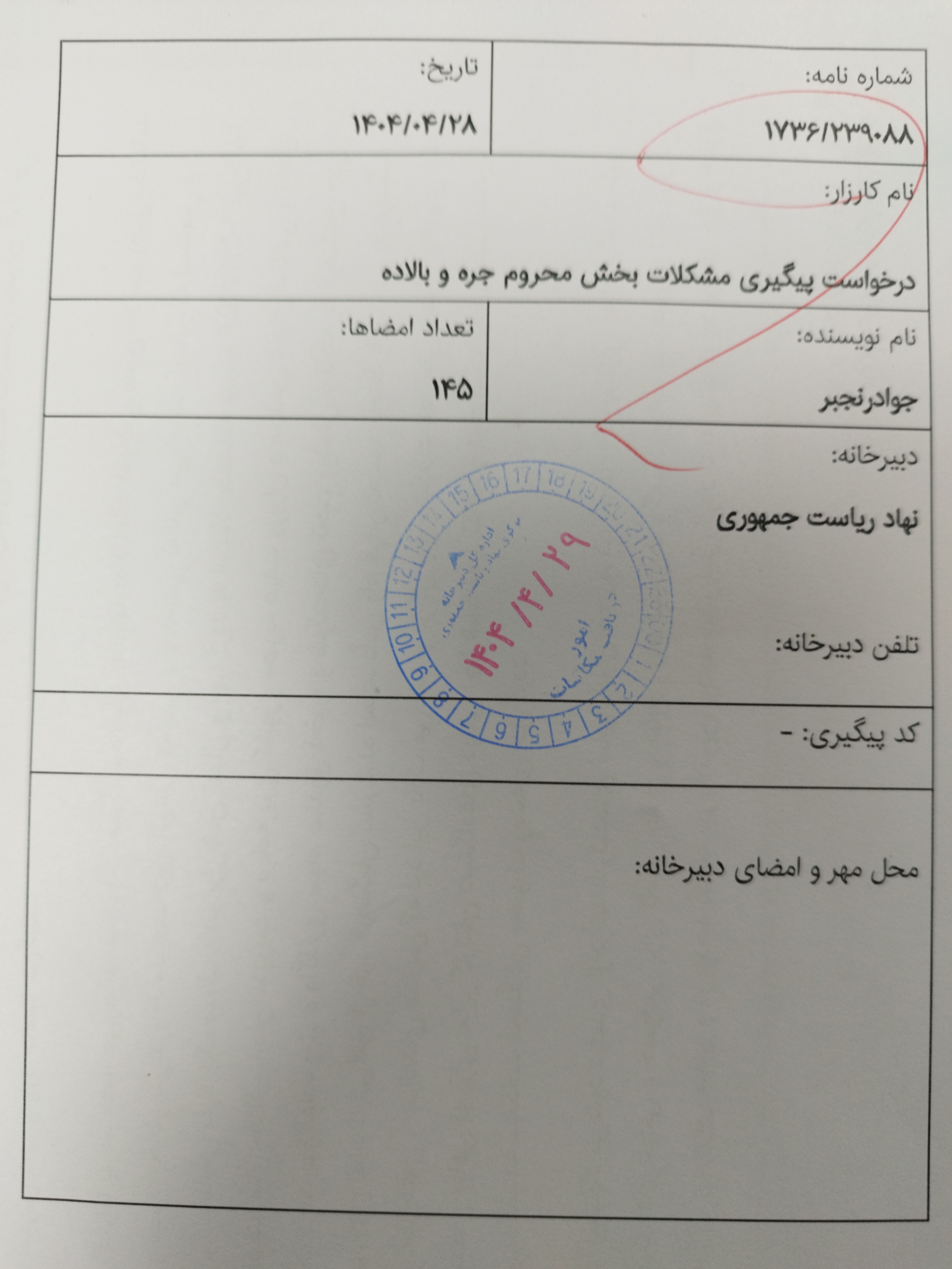 نامه گزارش این کارزار جهت پیگیری صادر شد.