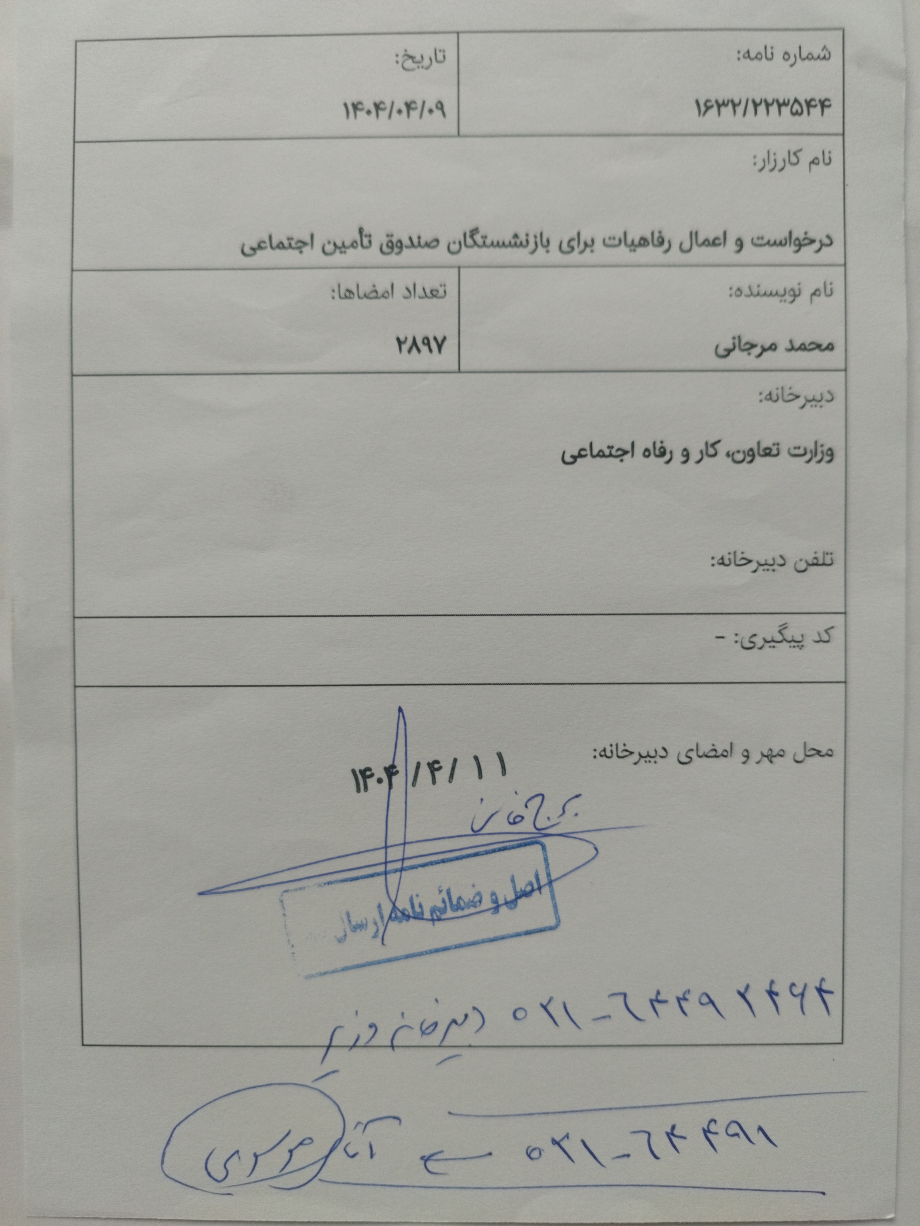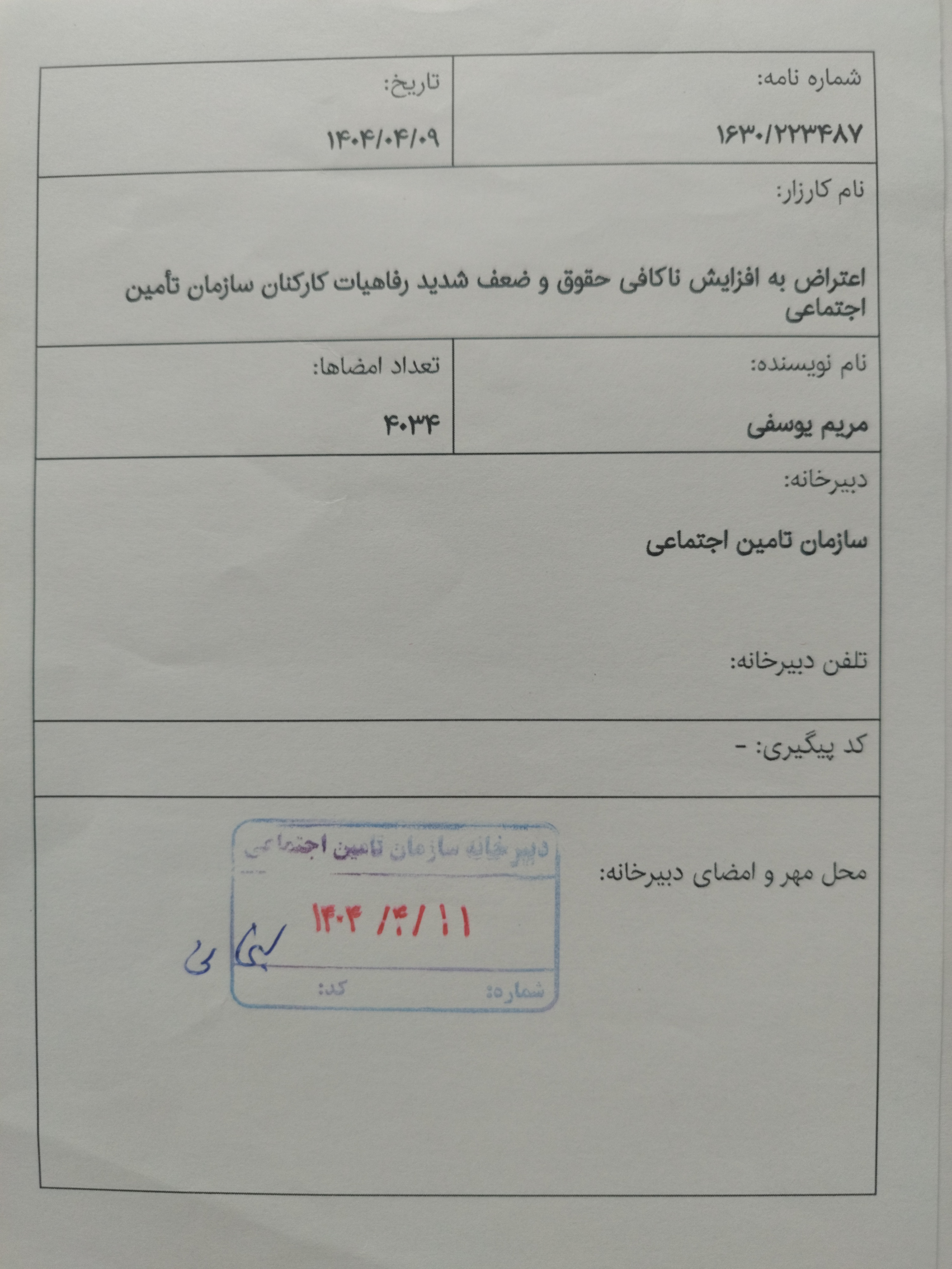 این کارزار در دبیرخانه سازمان تامین اجتماعی ثبت شد.