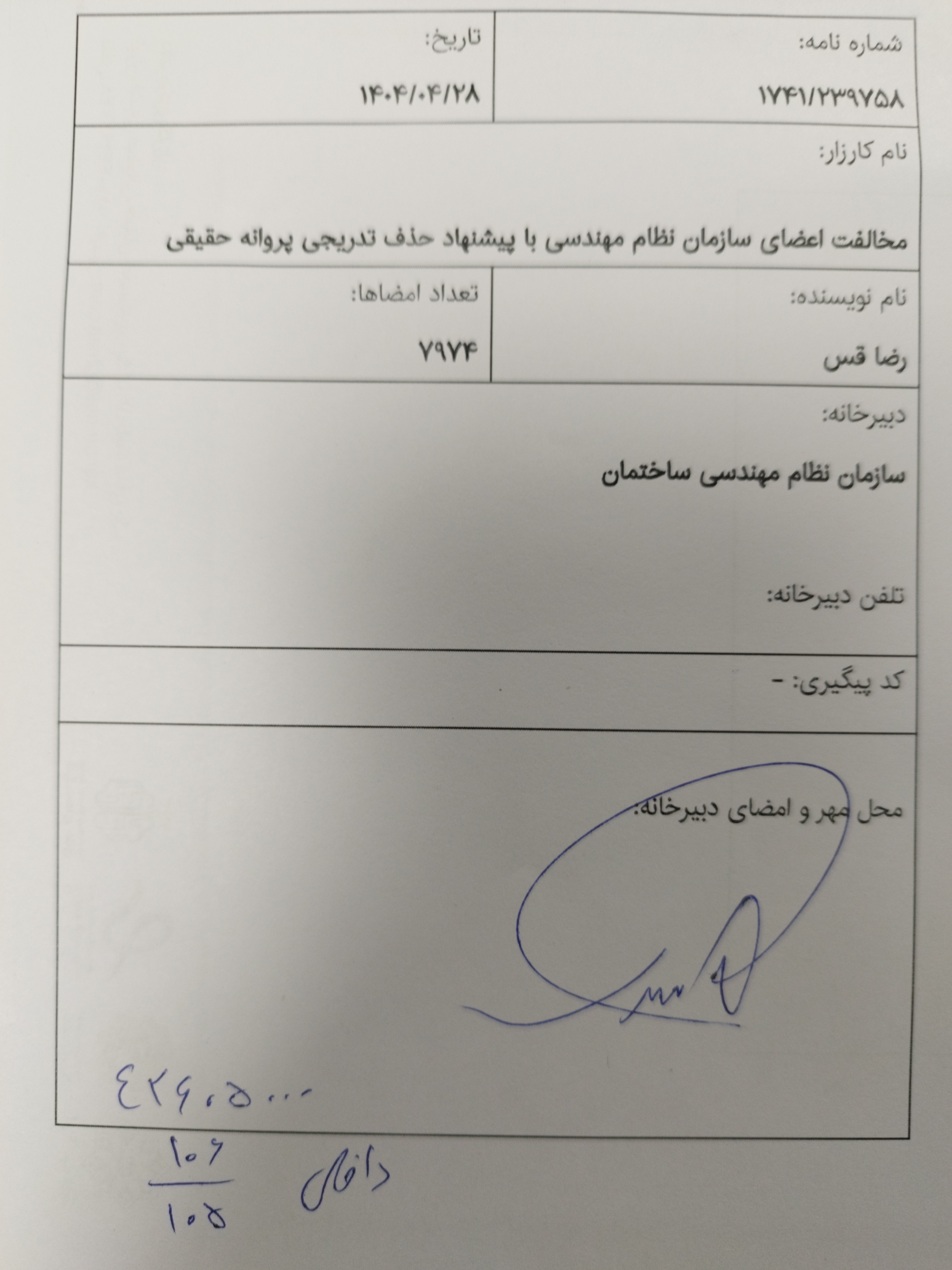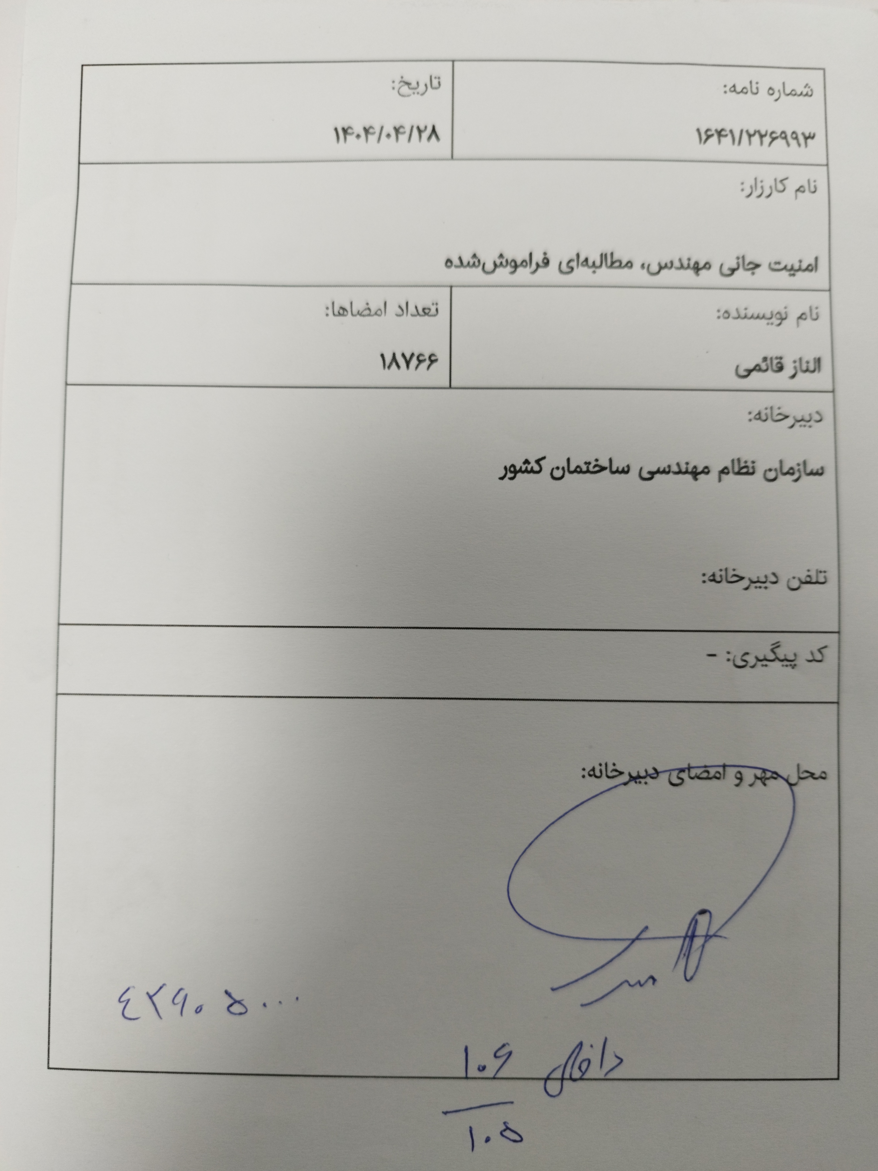 این کارزار در دبیرخانه سازمان نظام مهندسی کشور ثبت شد.