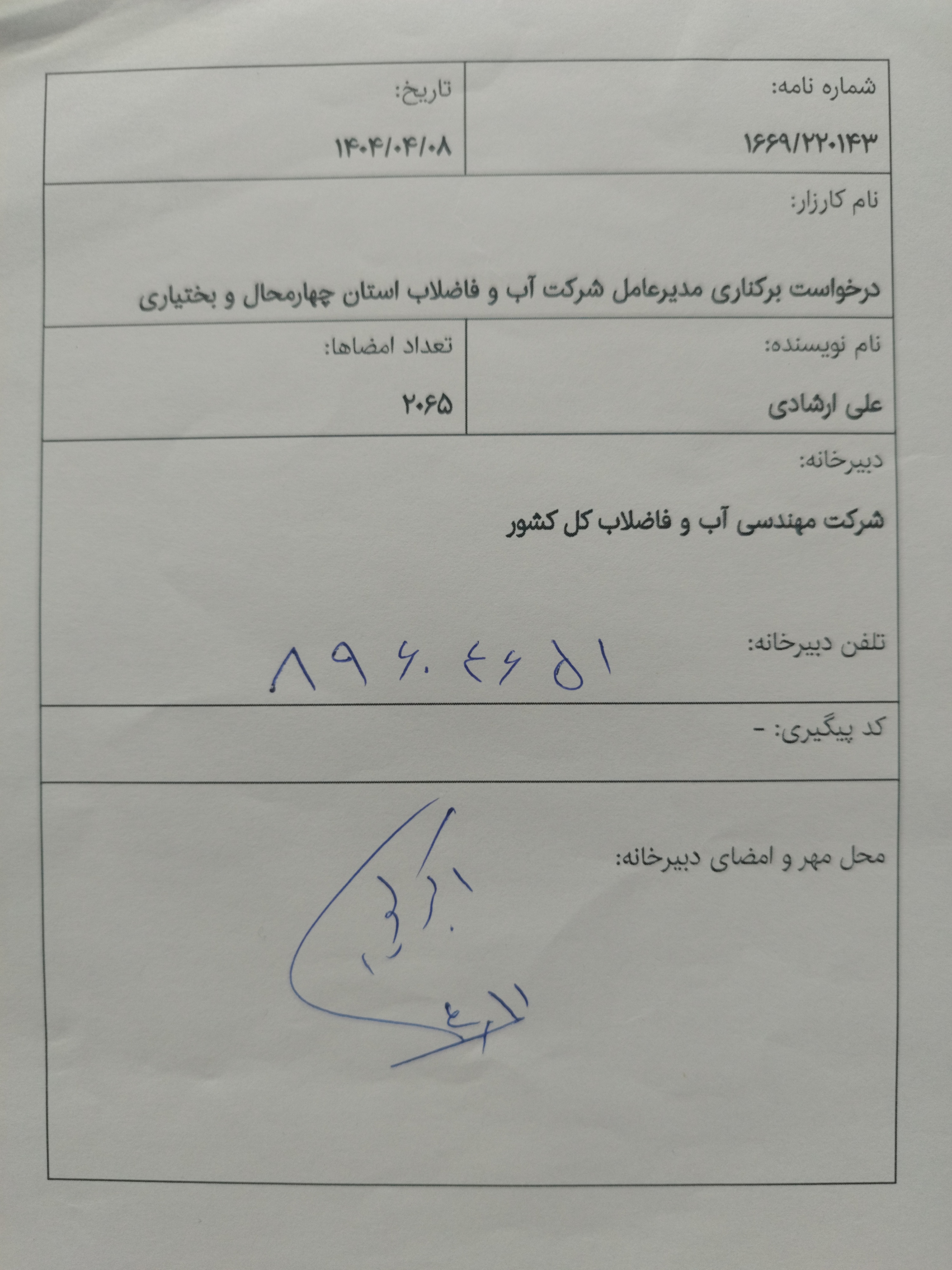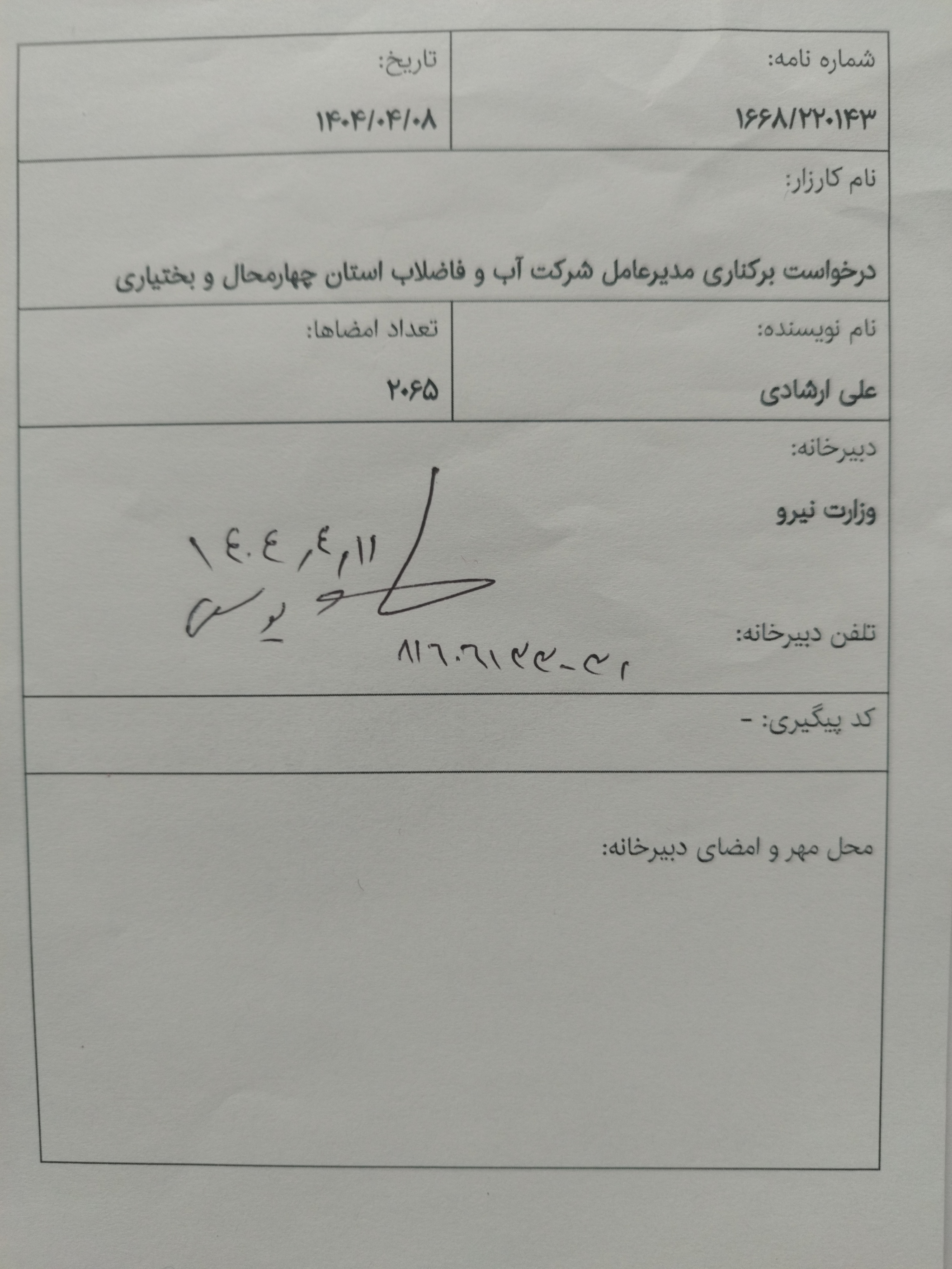 این کارزار در دبیرخانه شرکت مهندسی آب و فاضلاب کل کشور ثبت شد.