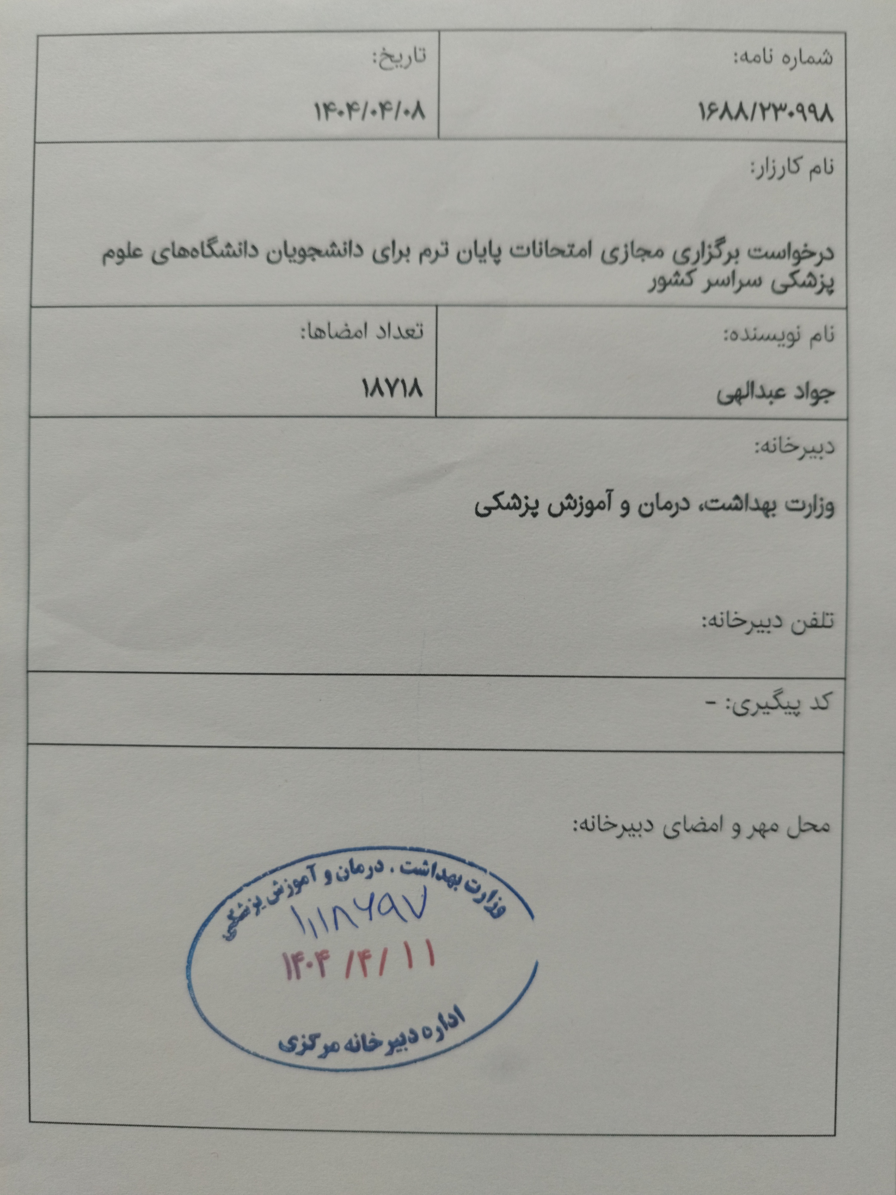 این کارزار در دبیرخانه وزارت بهداشت، درمان و آموزش پزشکی ثبت شد.