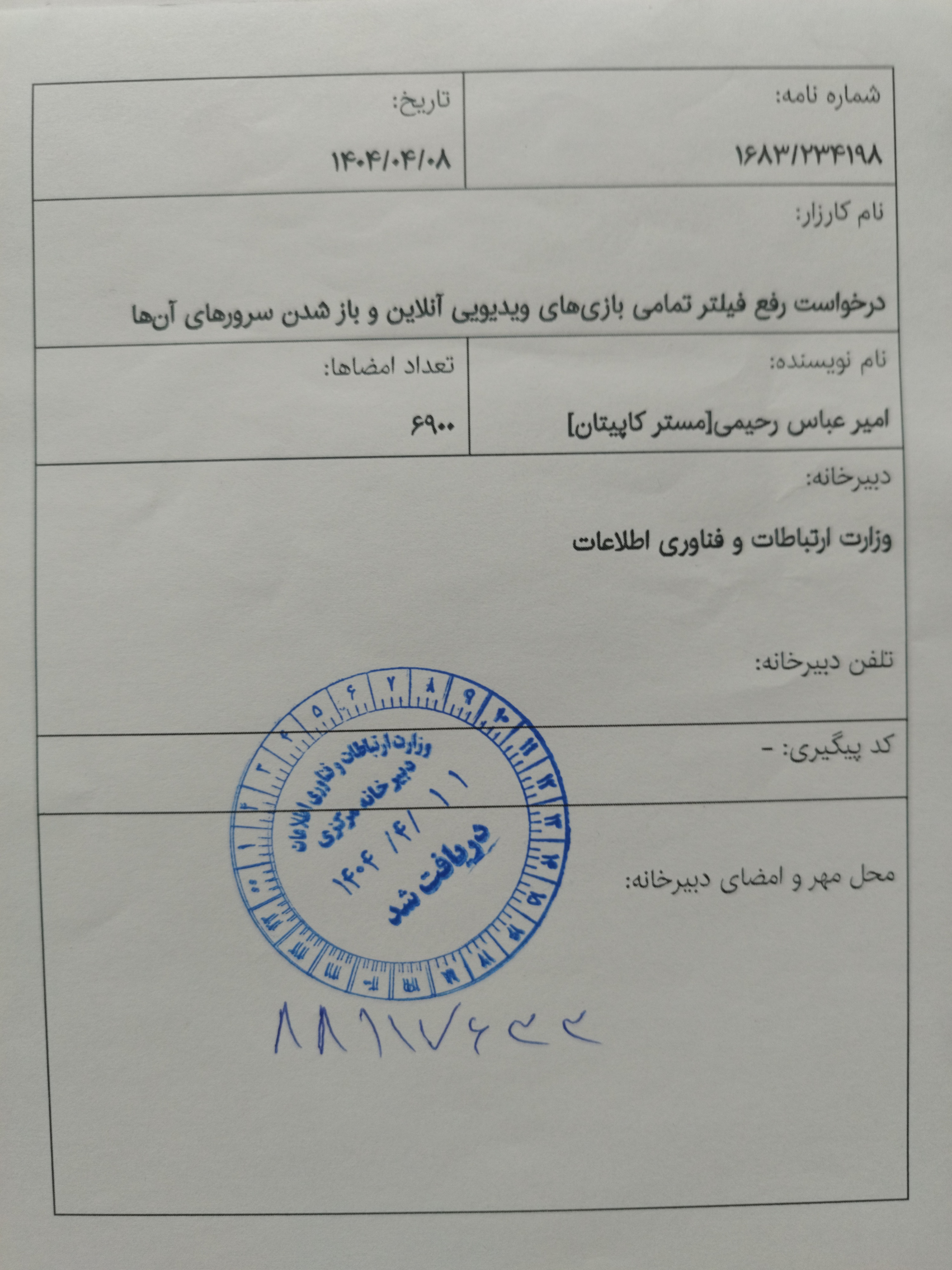 این کارزار در دبیرخانه وزارت ارتباطات و فناوری اطلاعات ثبت شد.