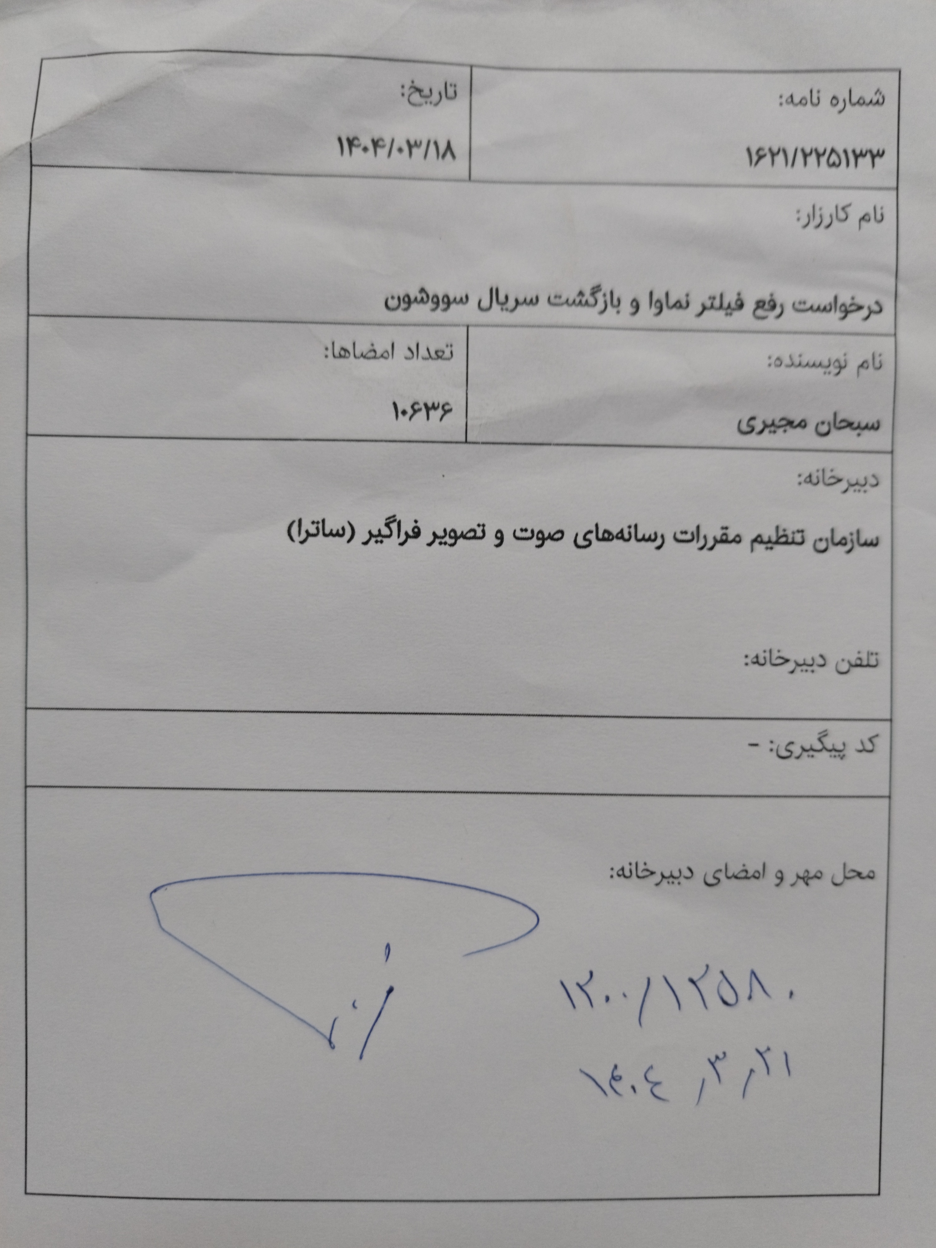 این کارزار در دبیرخانه ساترا ثبت شد.