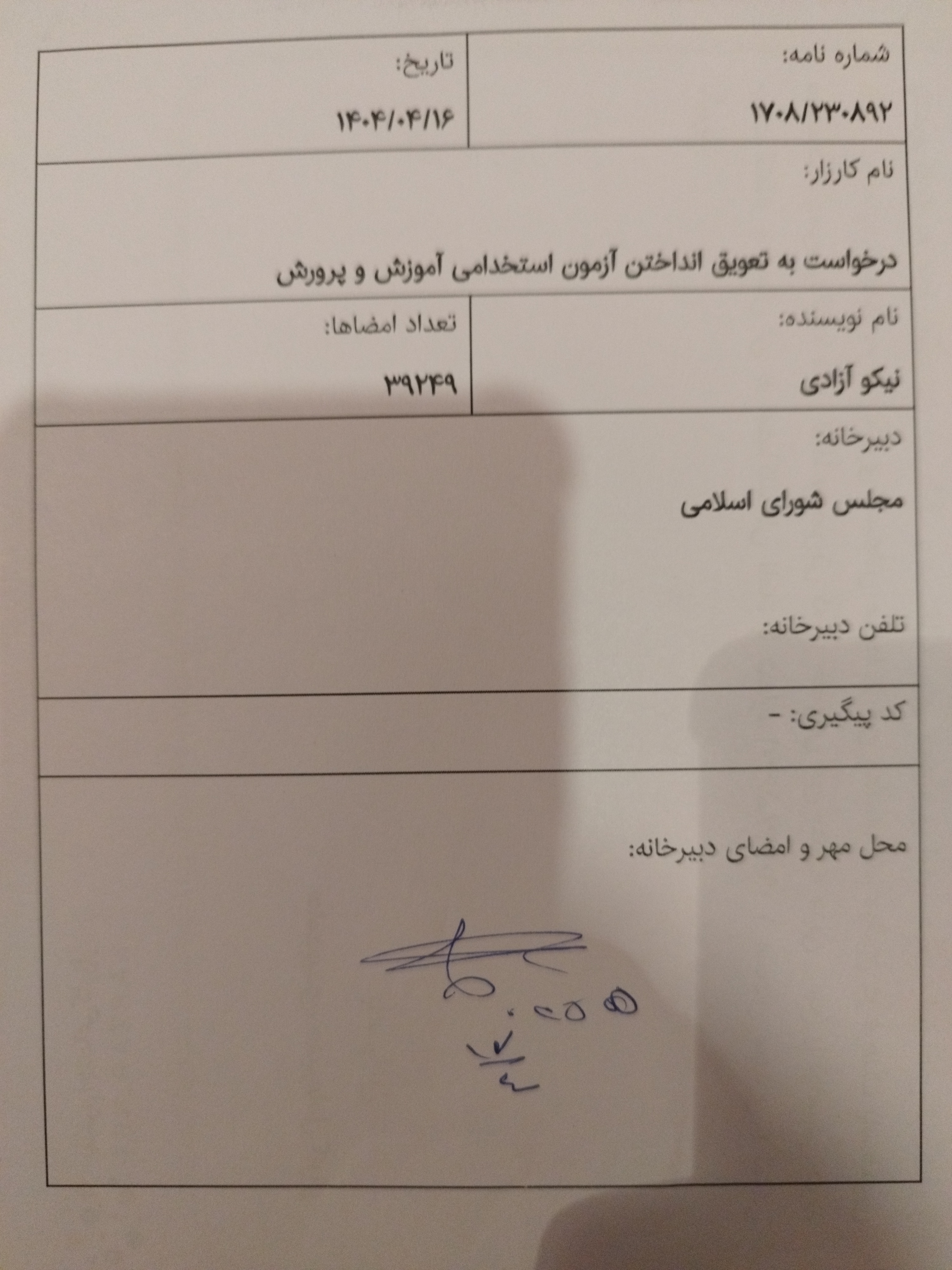 نامه گزارش این کارزار جهت پیگیری صادر شد.