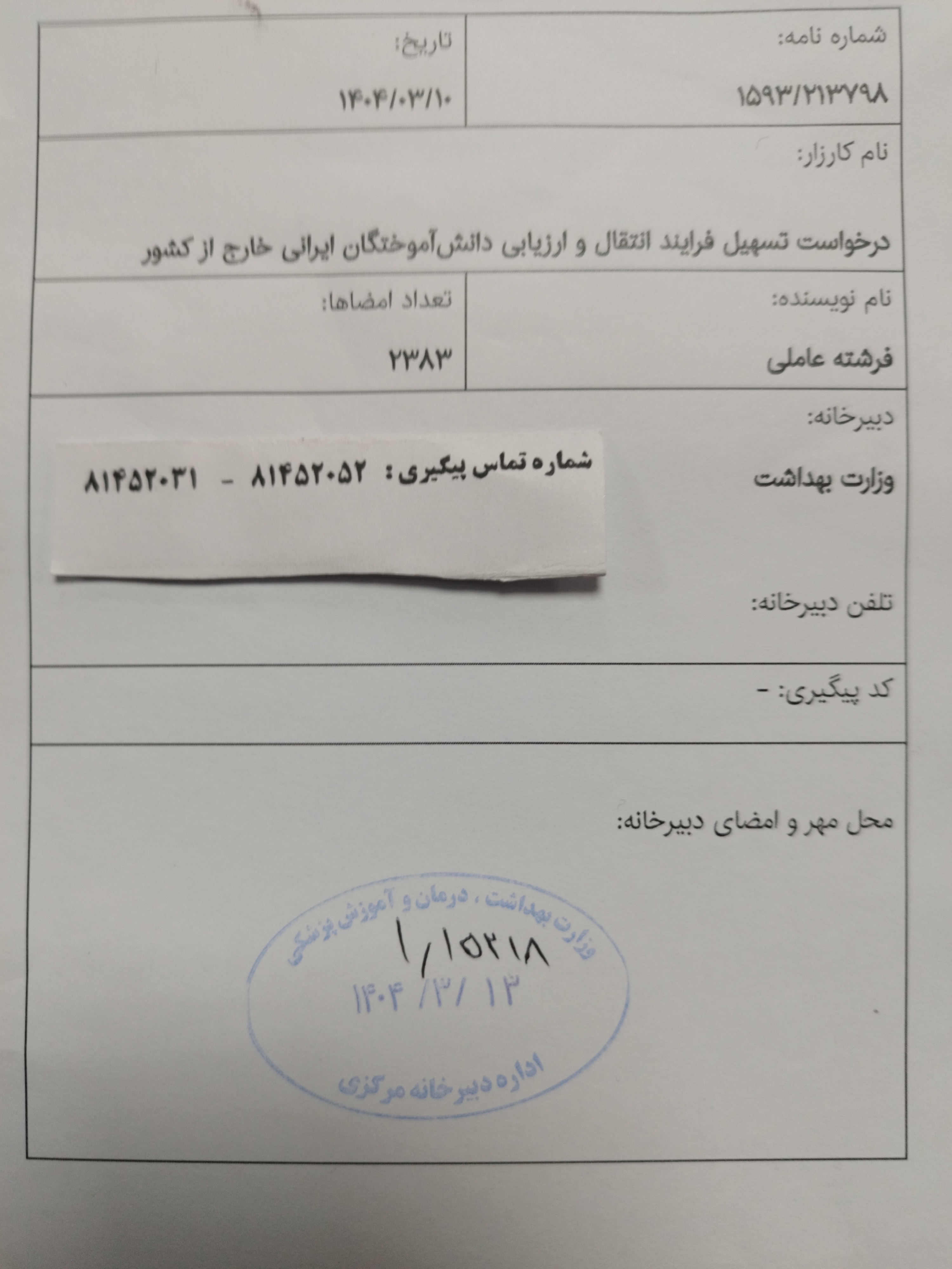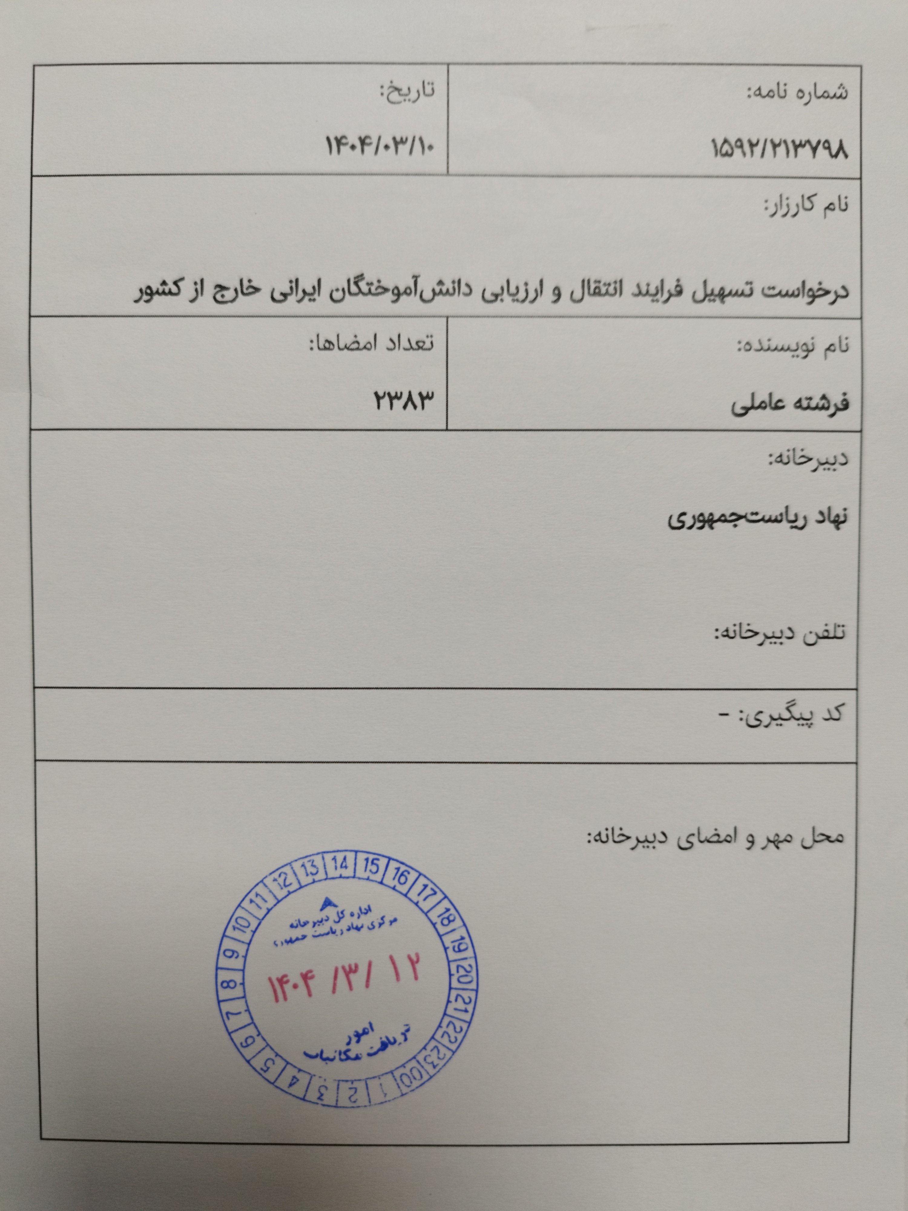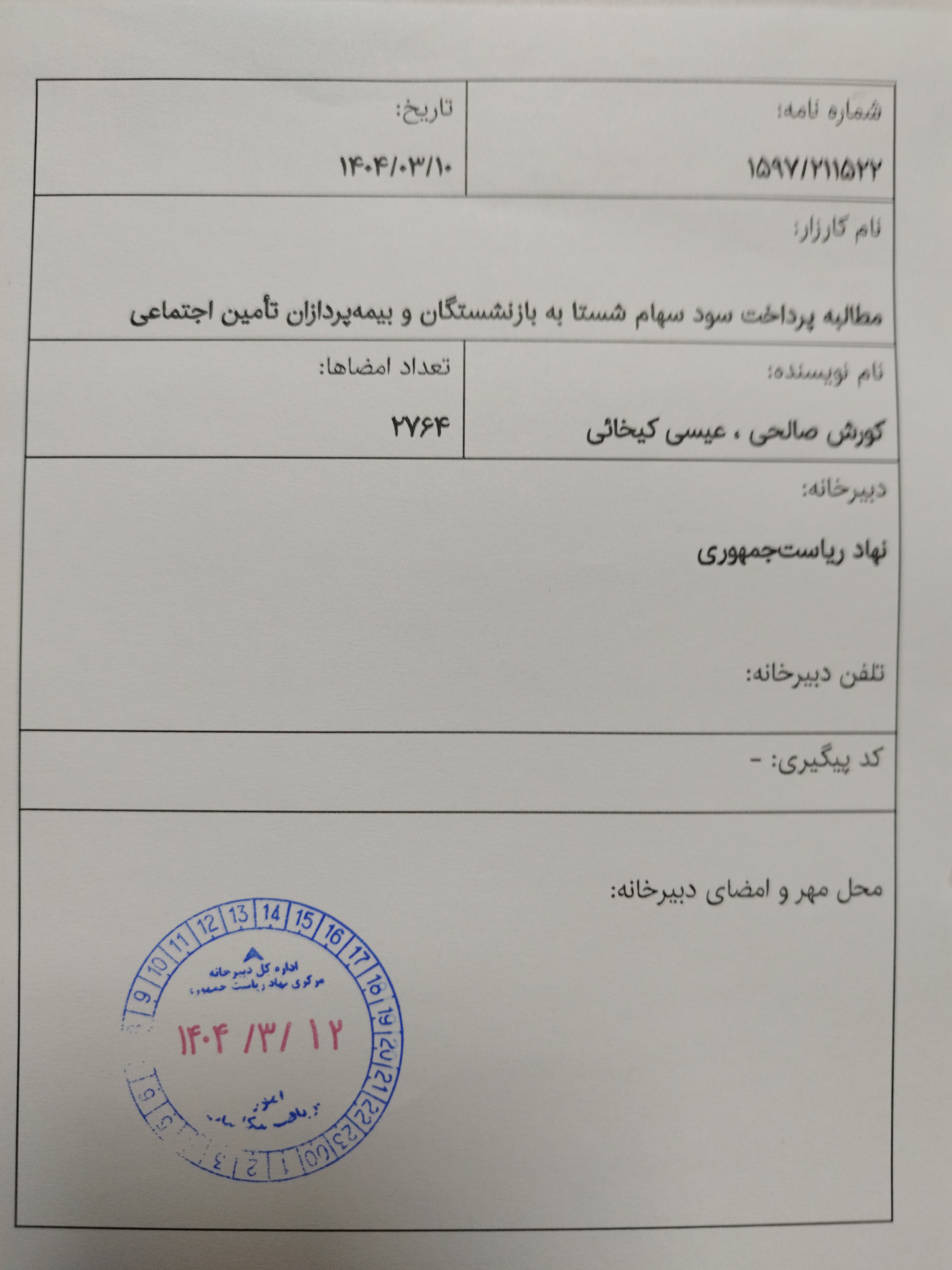 نامه گزارش این کارزار جهت پیگیری صادر شد.
