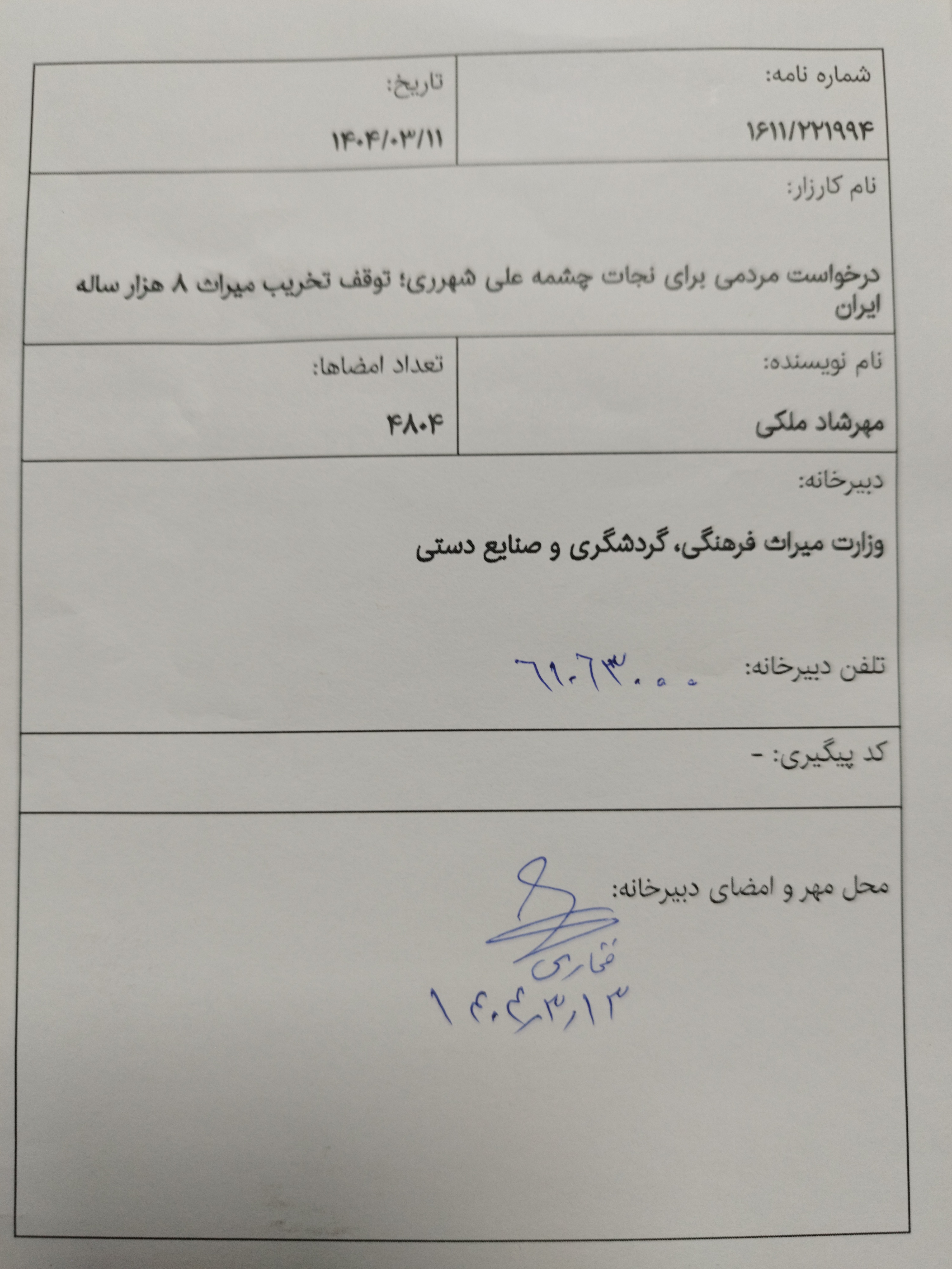 این کارزار در دبیرخانه وزارت میراث فرهنگی، گردشگری و صنایع دستی ثبت شد.