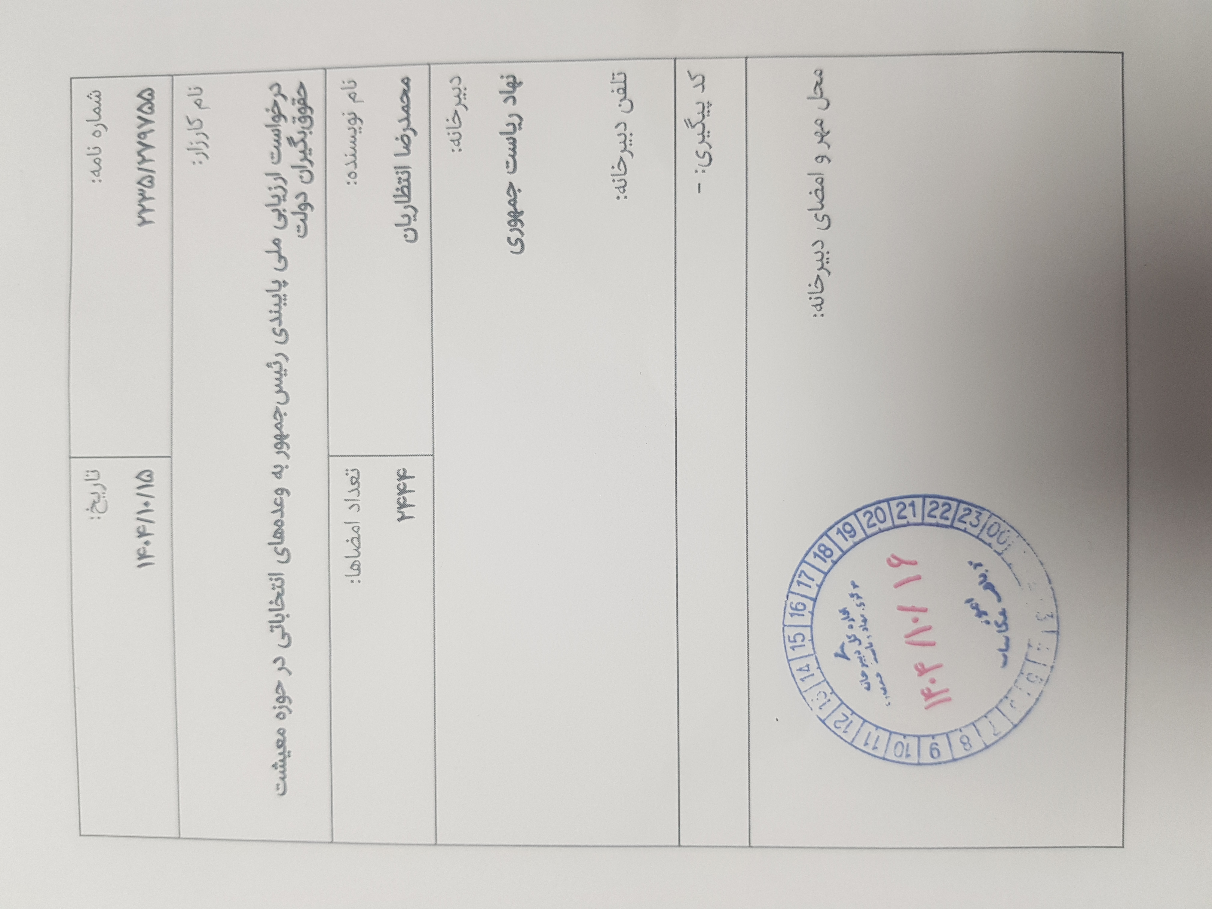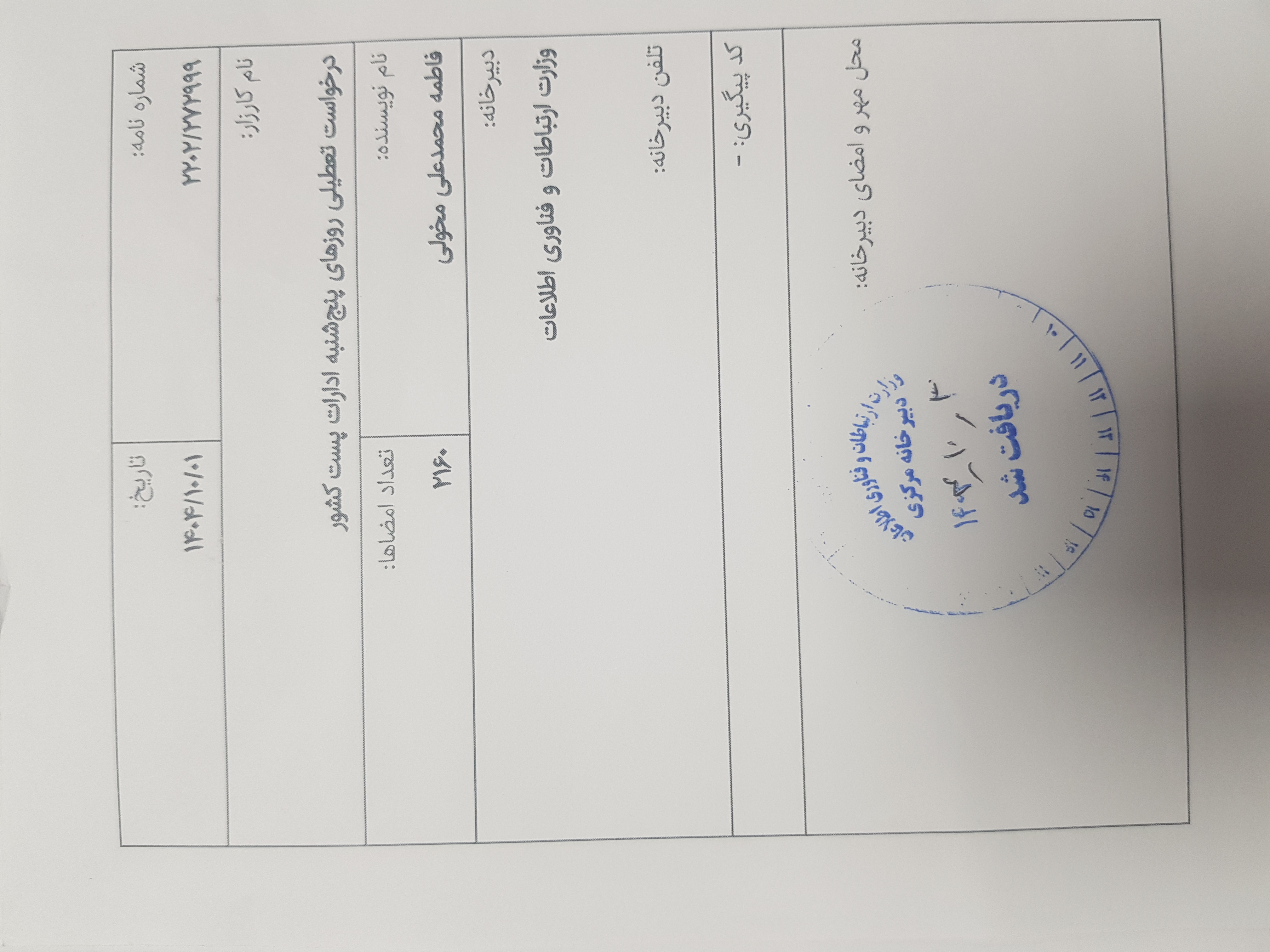 ثبت رسمی در دبیرخانه