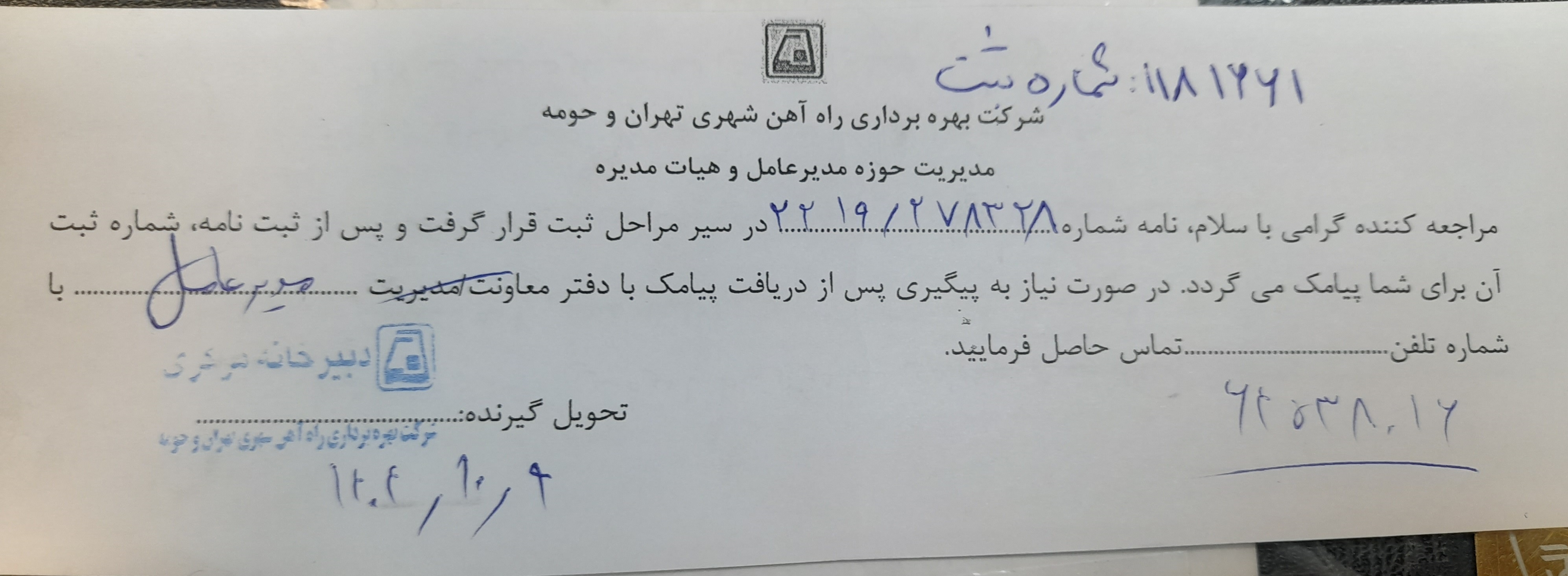 این کارزار در دبیرخانه شرکت بهرهبرداری راه آهن شهری تهران و حومه ثبت شد.