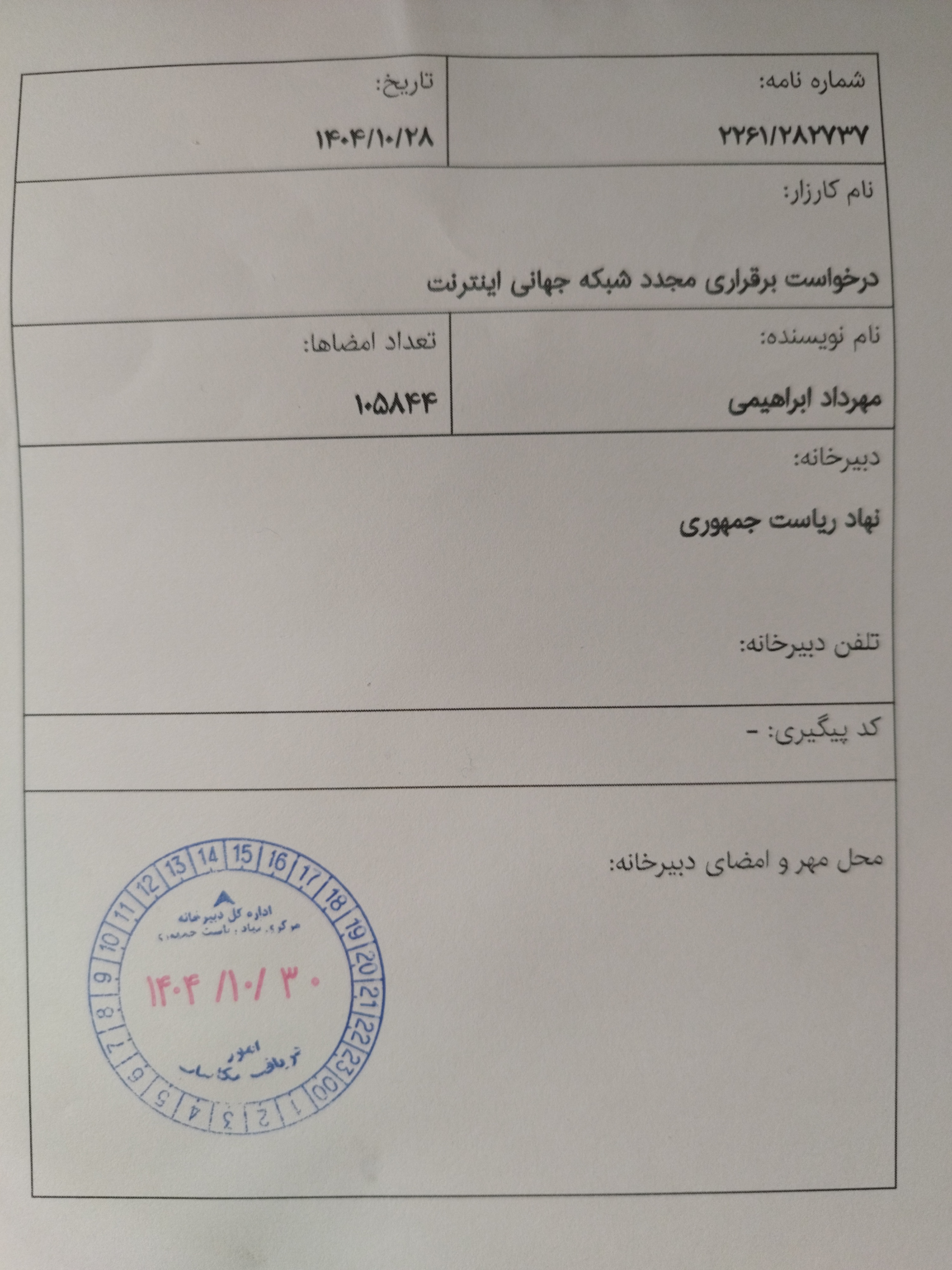 این کارزار در دبیرخانه وزارت ارتباطات و فناوری اطلاعات ثبت شد.