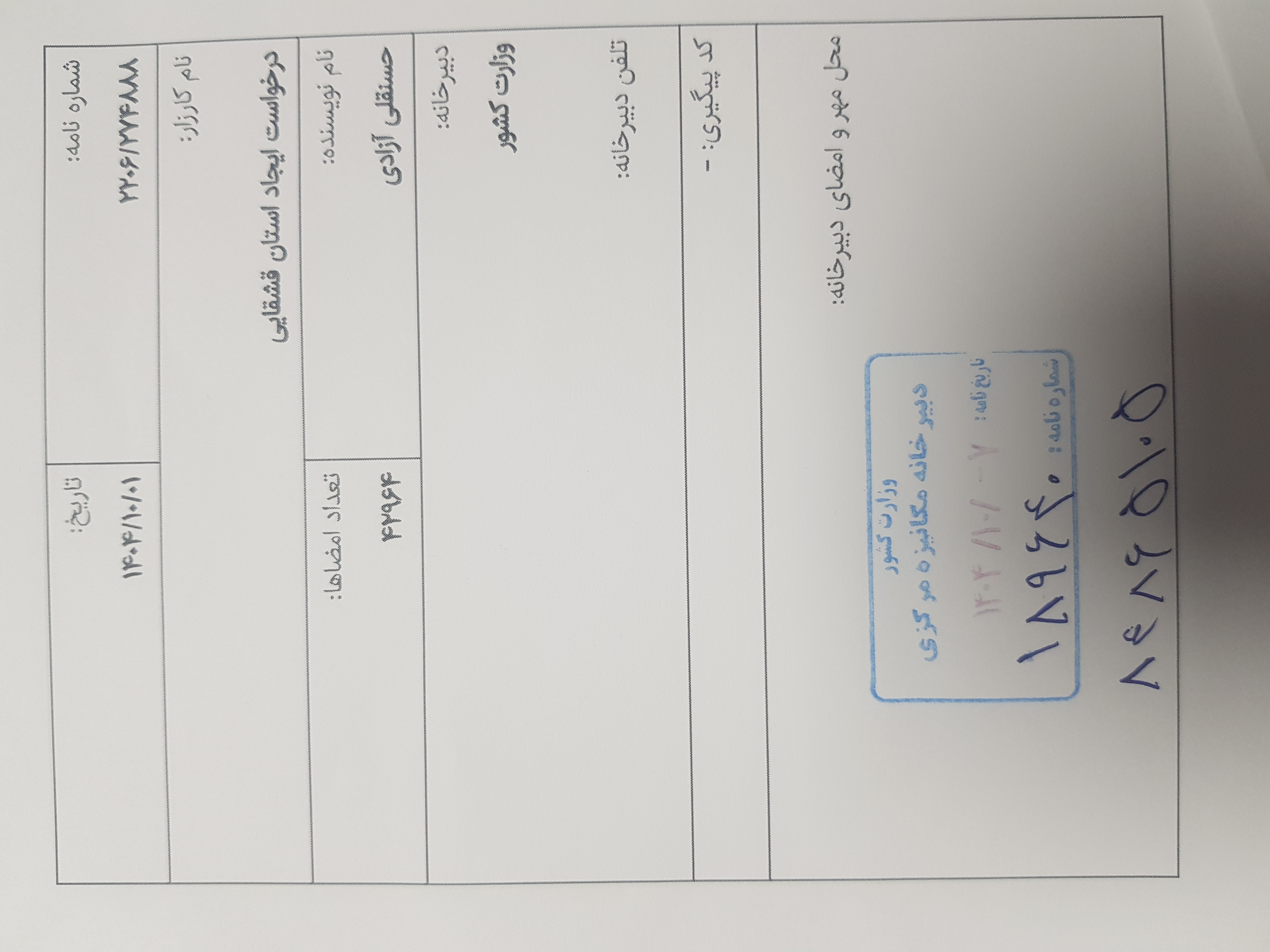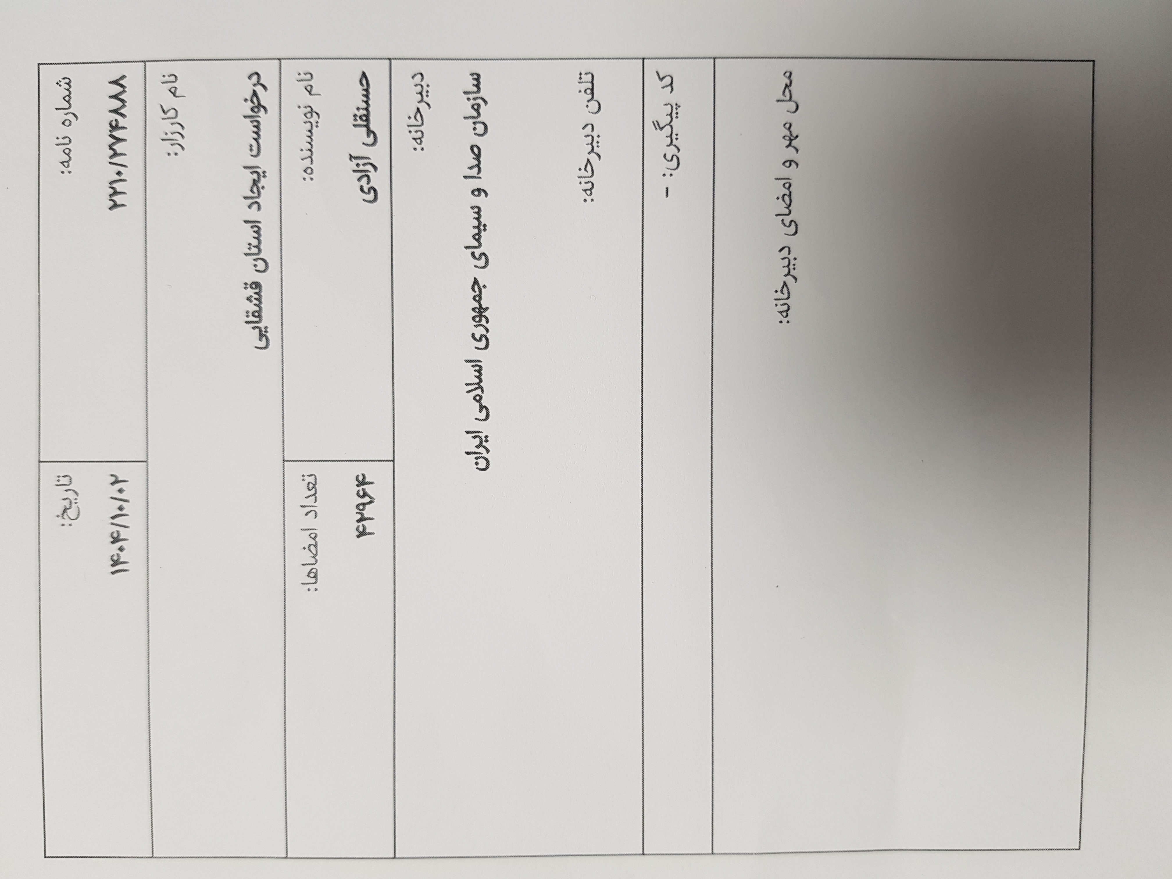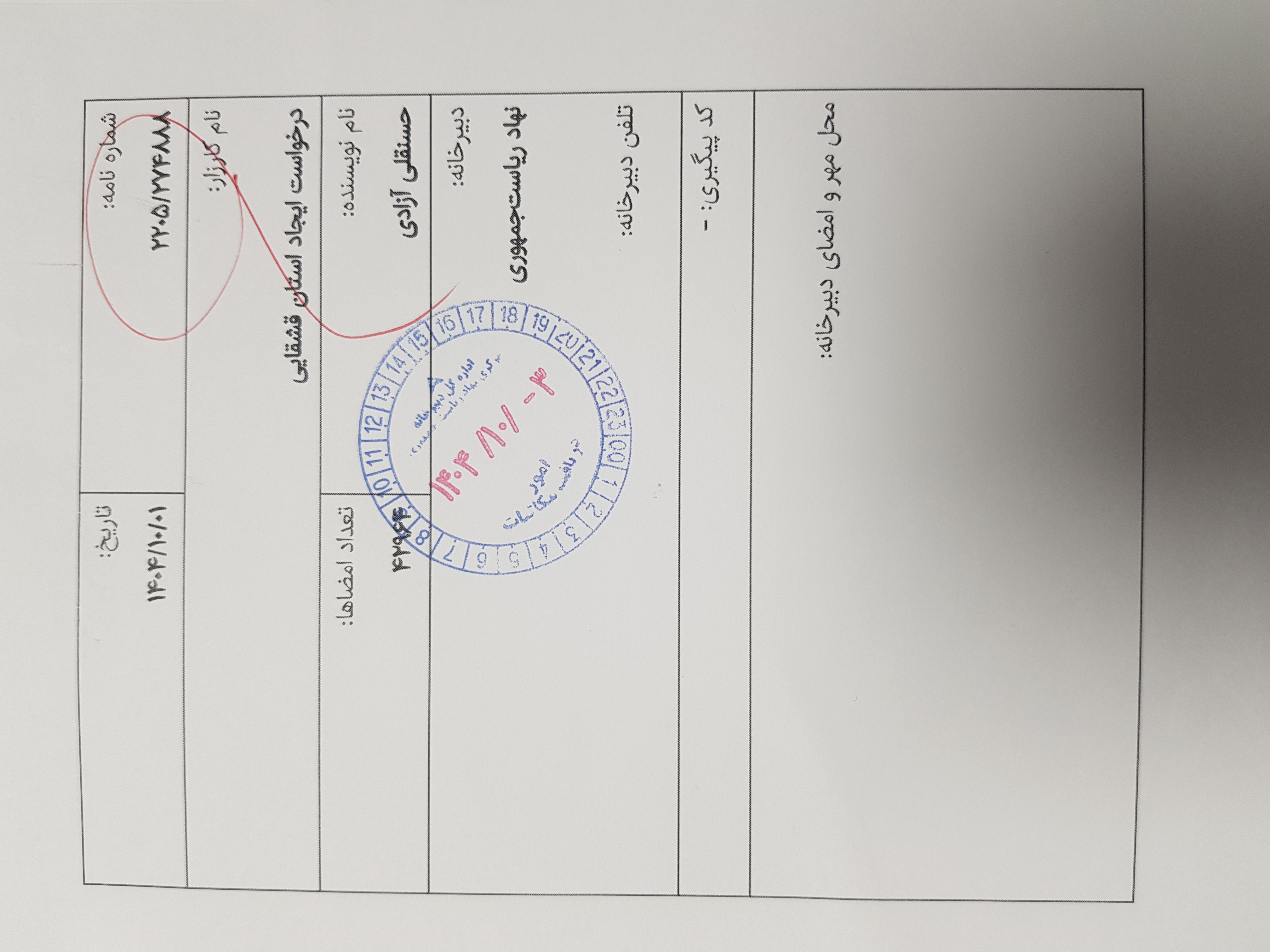ثبت رسمی در دبیرخانه