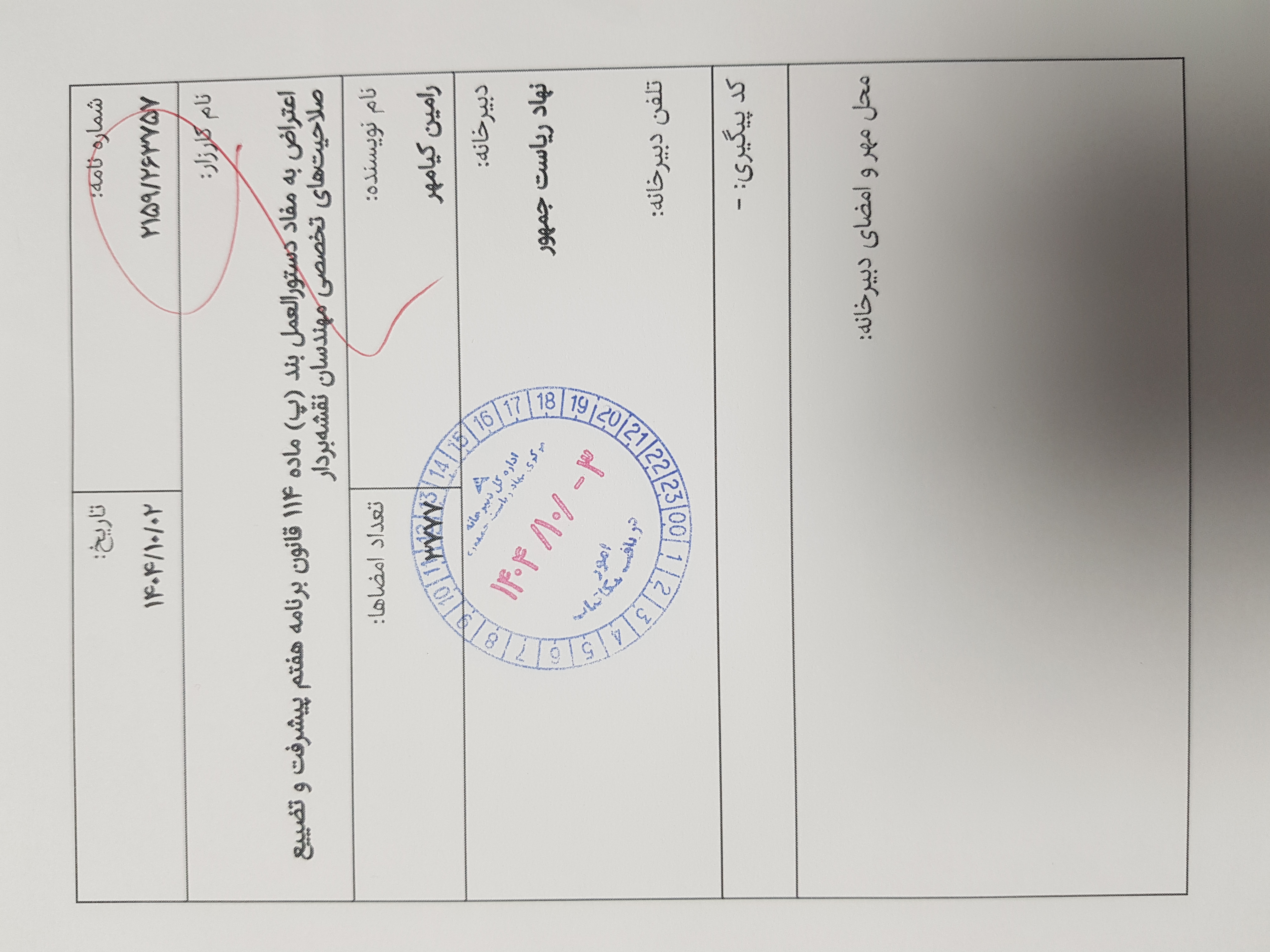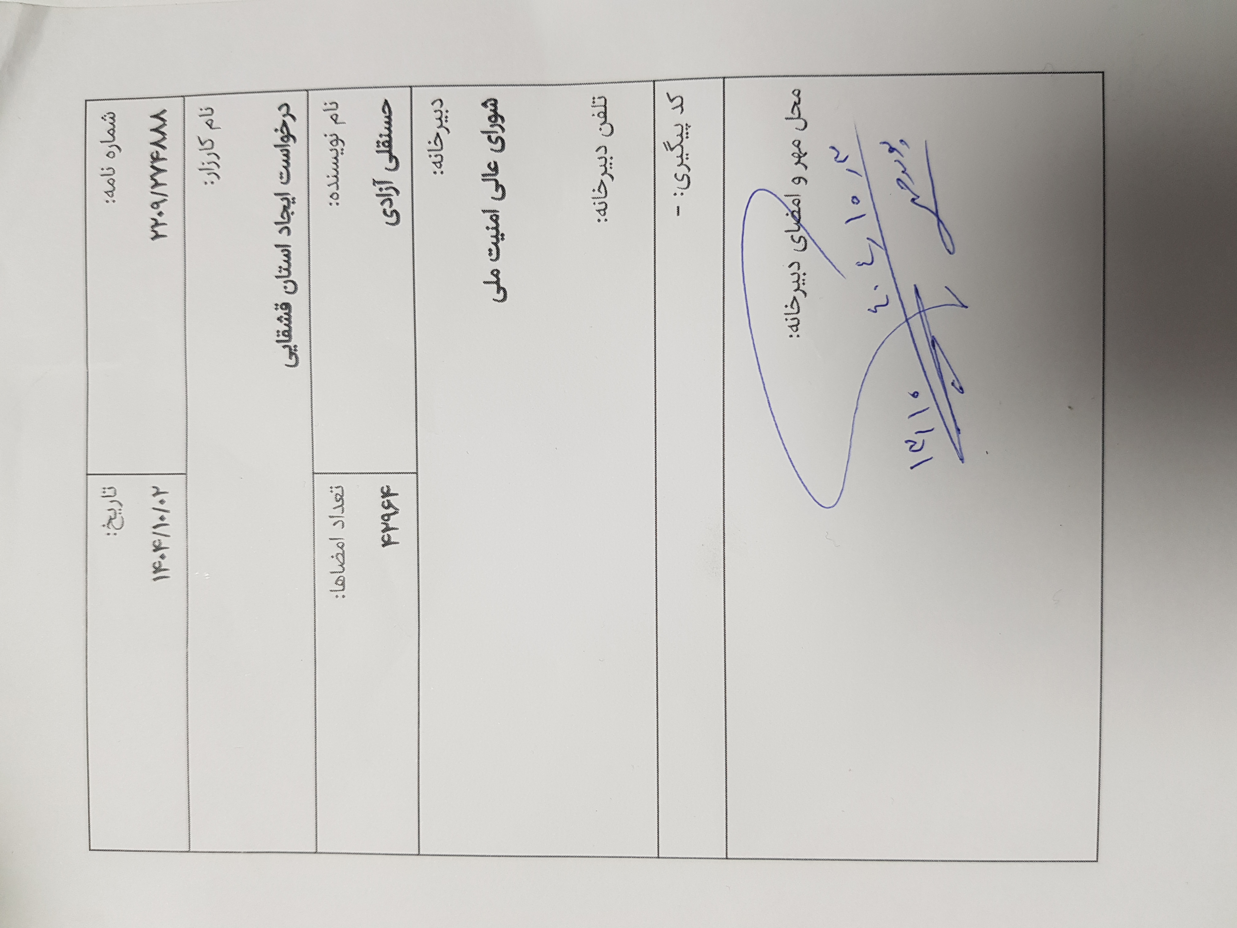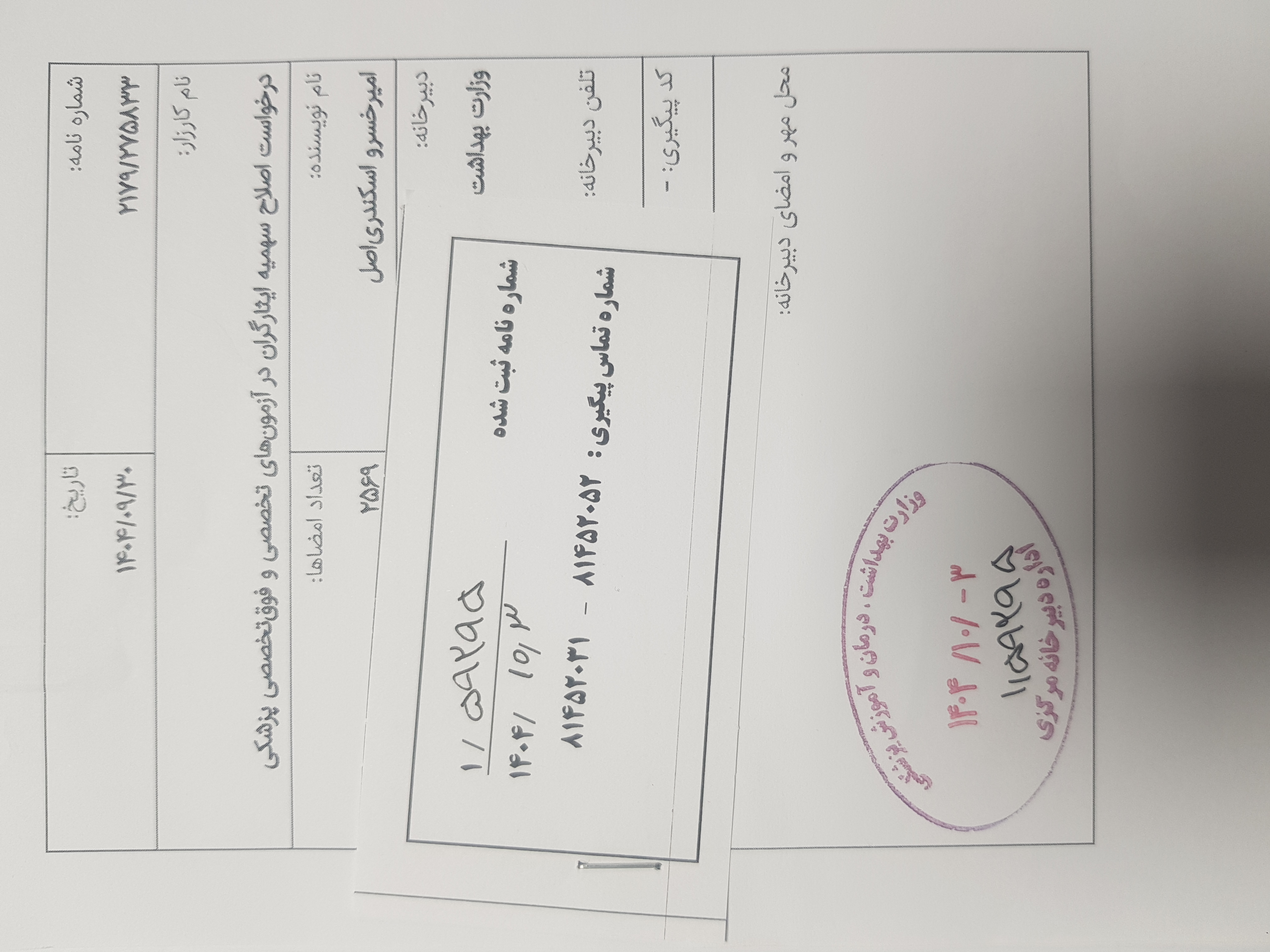 ثبت رسمی در دبیرخانه