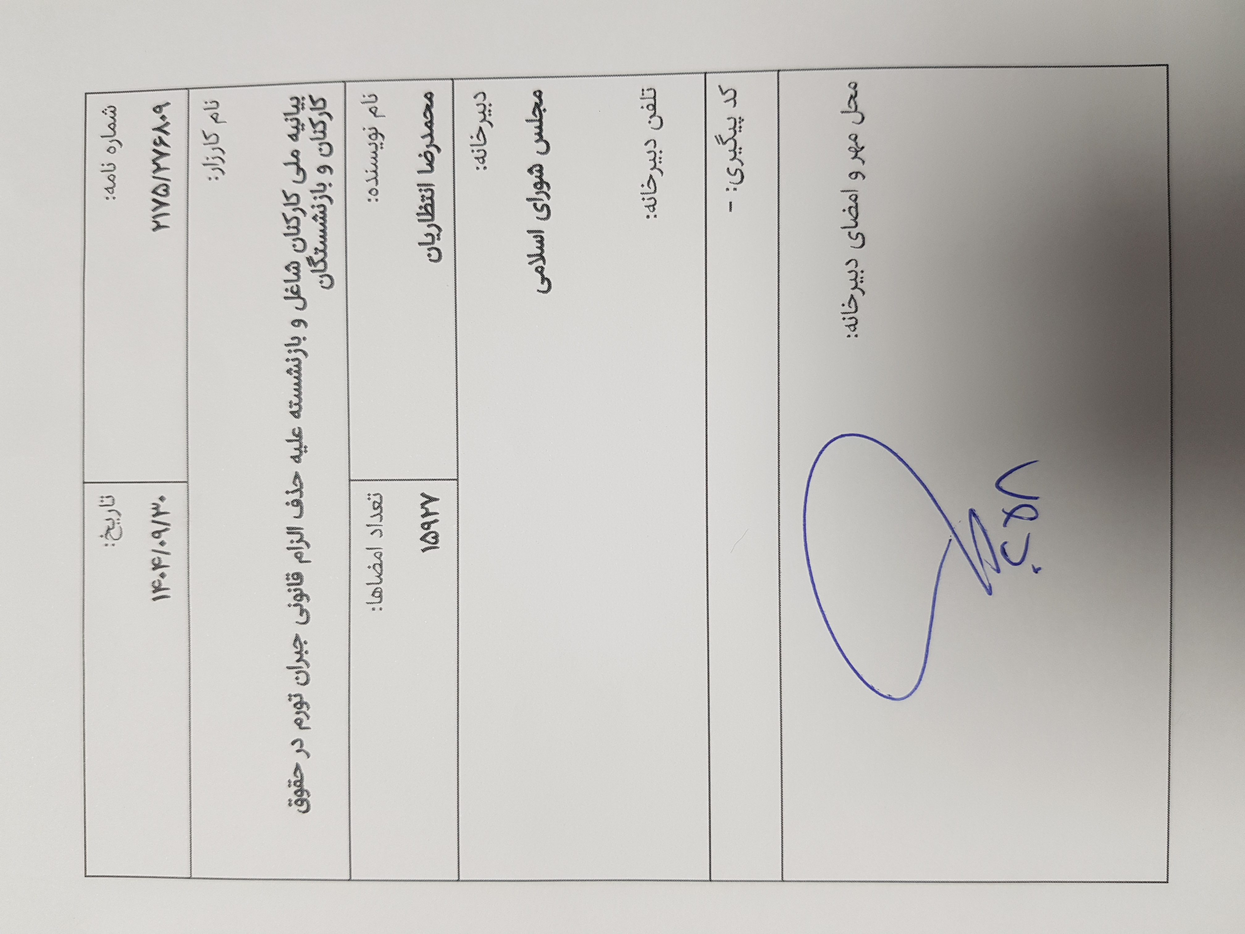 این کارزار در دبیرخانه مجلس شورای اسلامی ثبت شد.