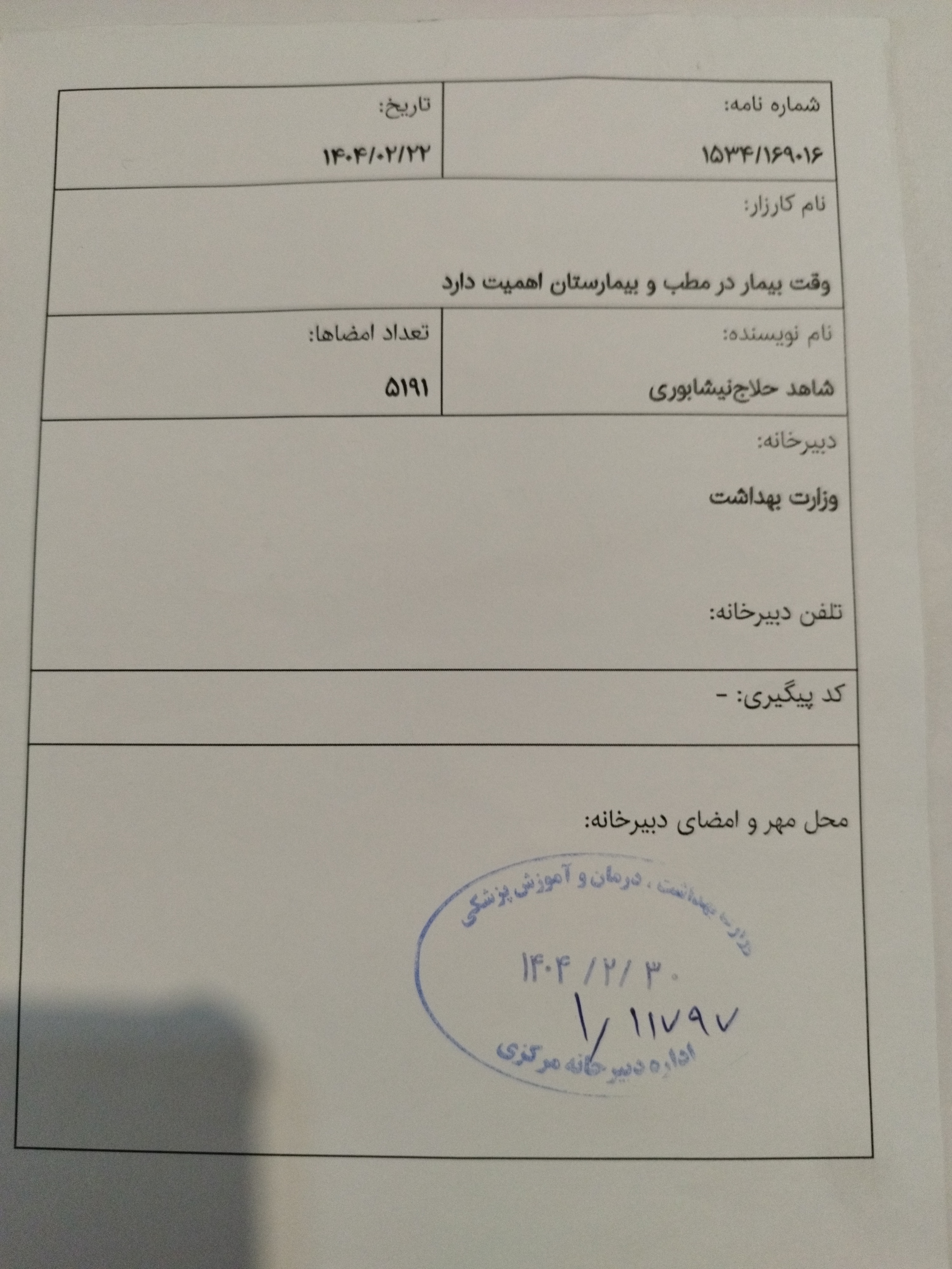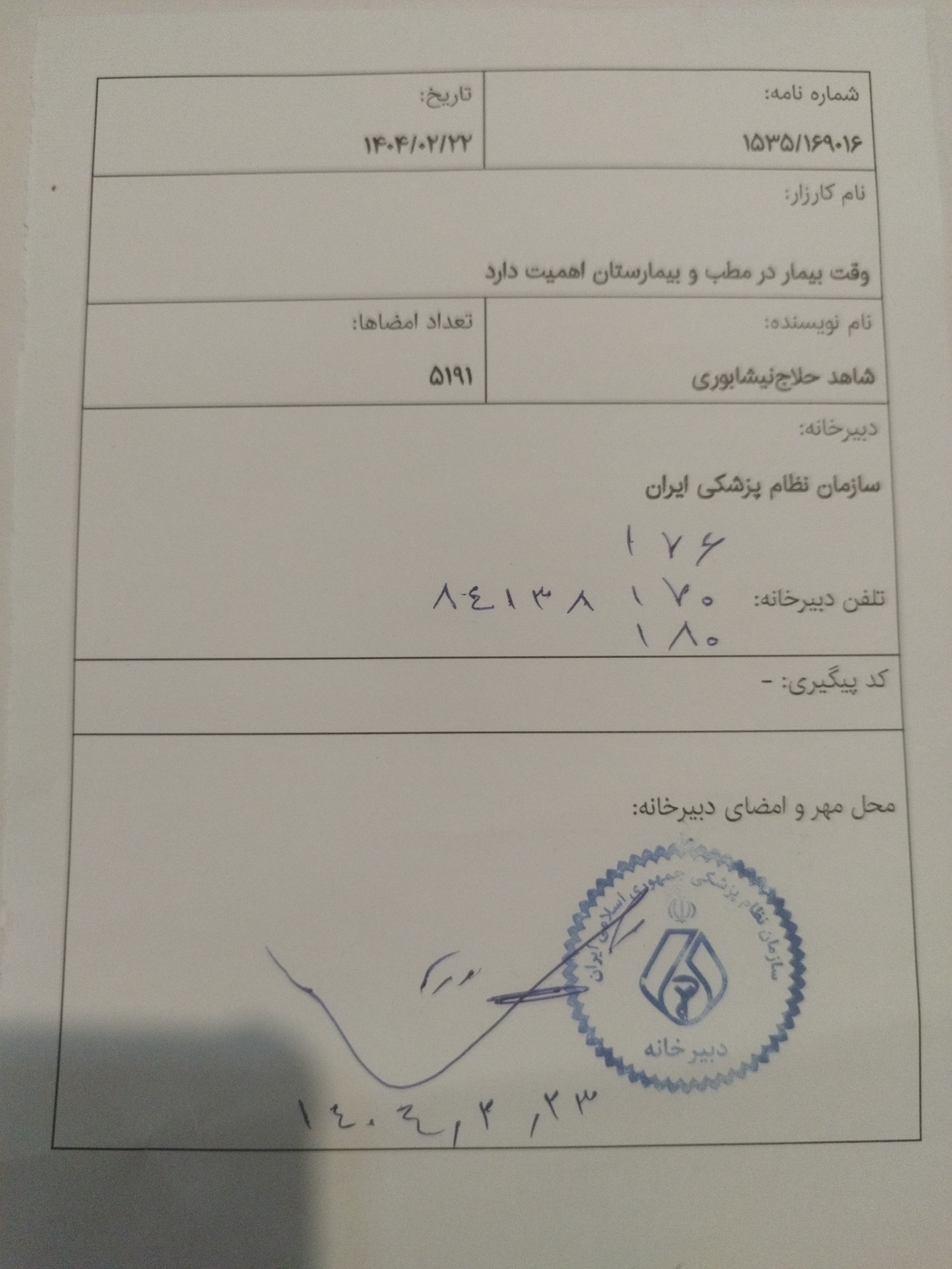 مشاهده پست دانلود پوسترثبت رسمی در دبیرخانه