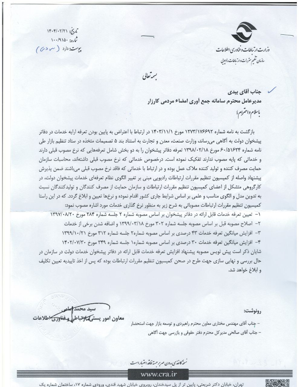 پاسخ وزارت ارتباطات به اعتراض به پایین بودن تعرفه خدمات در دفاتر پیشخوان