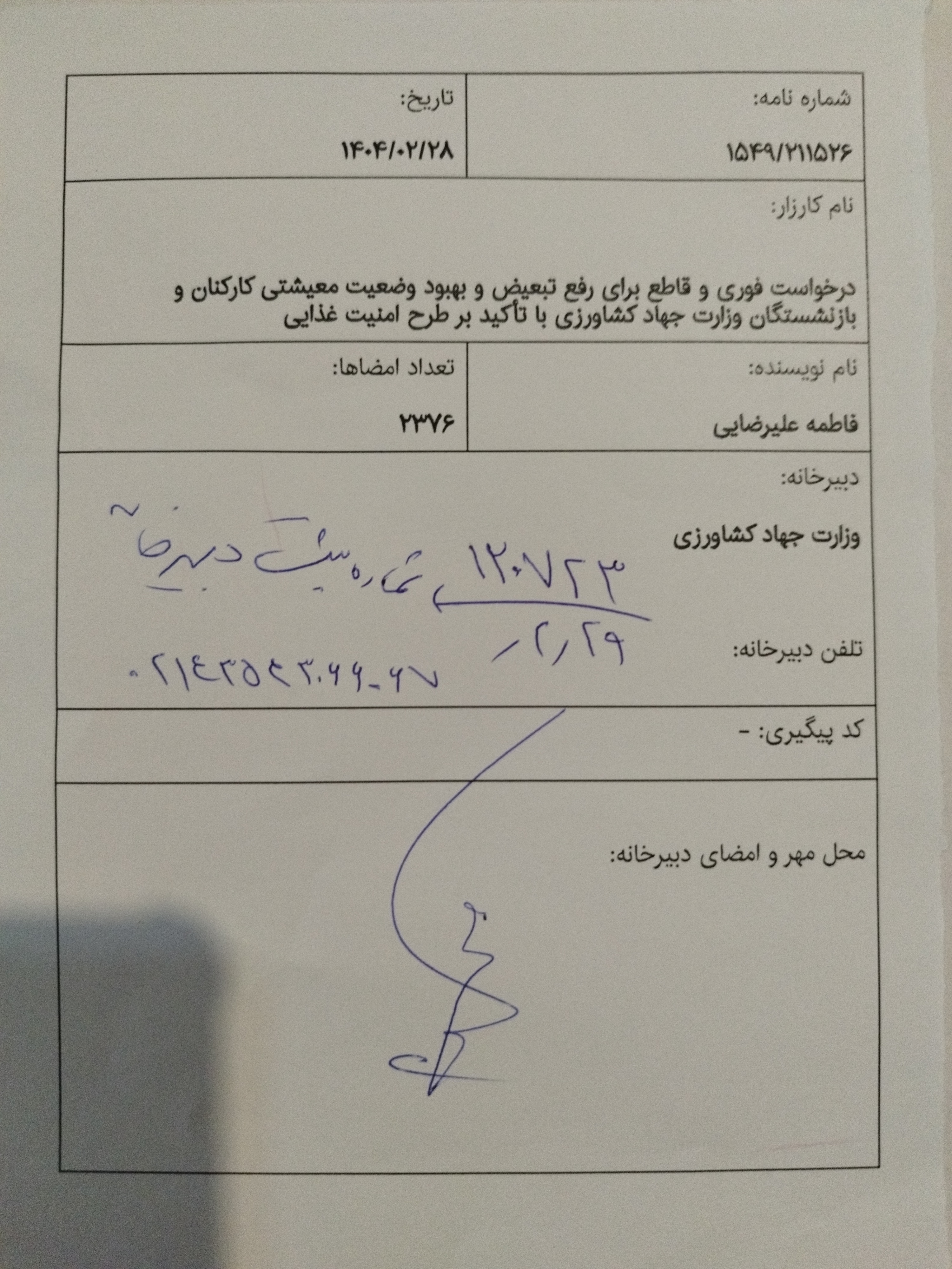 این کارزار در دبیرخانه وزارت جهادکشاورزی ثبت شد.