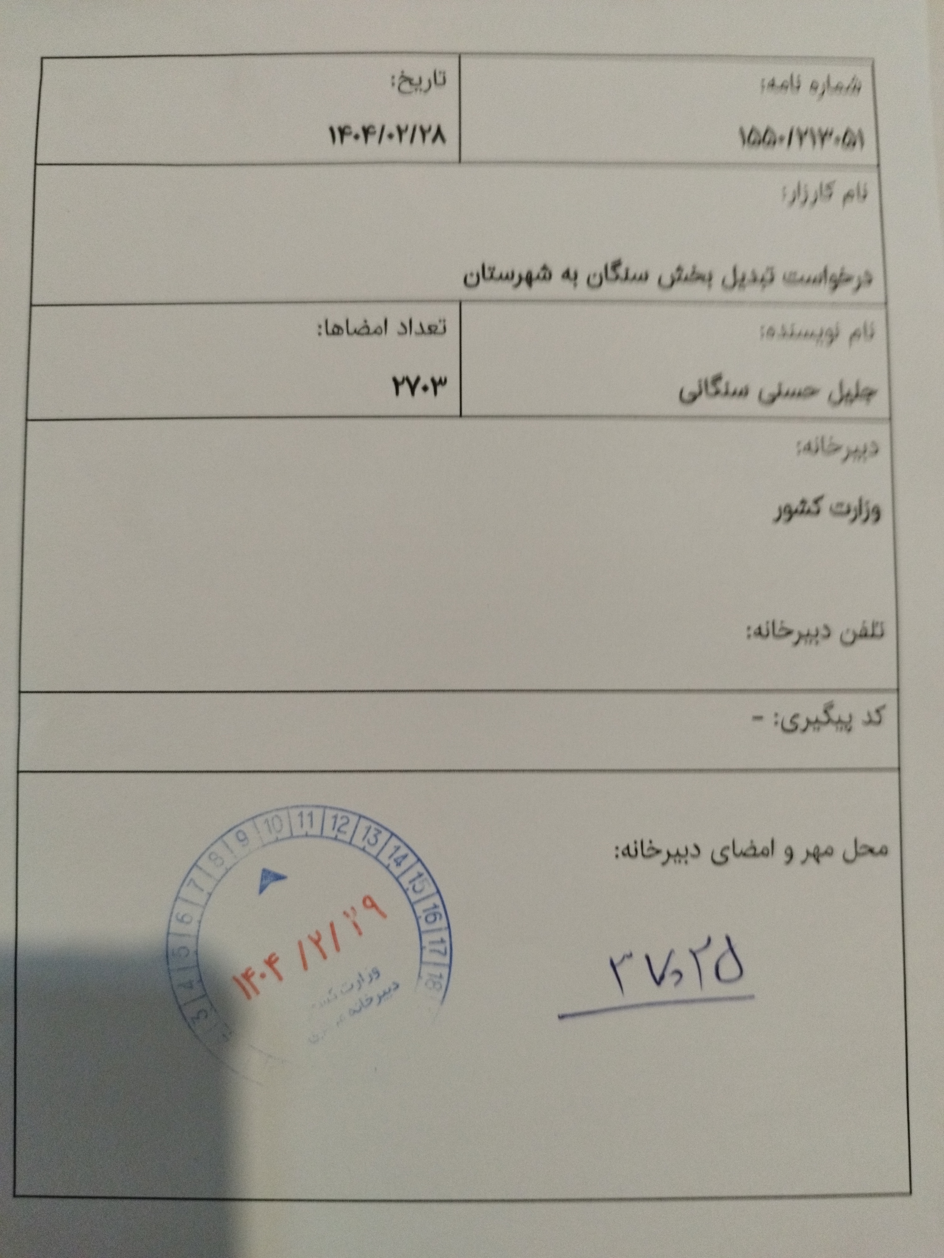 ثبت رسمی در دبیرخانه