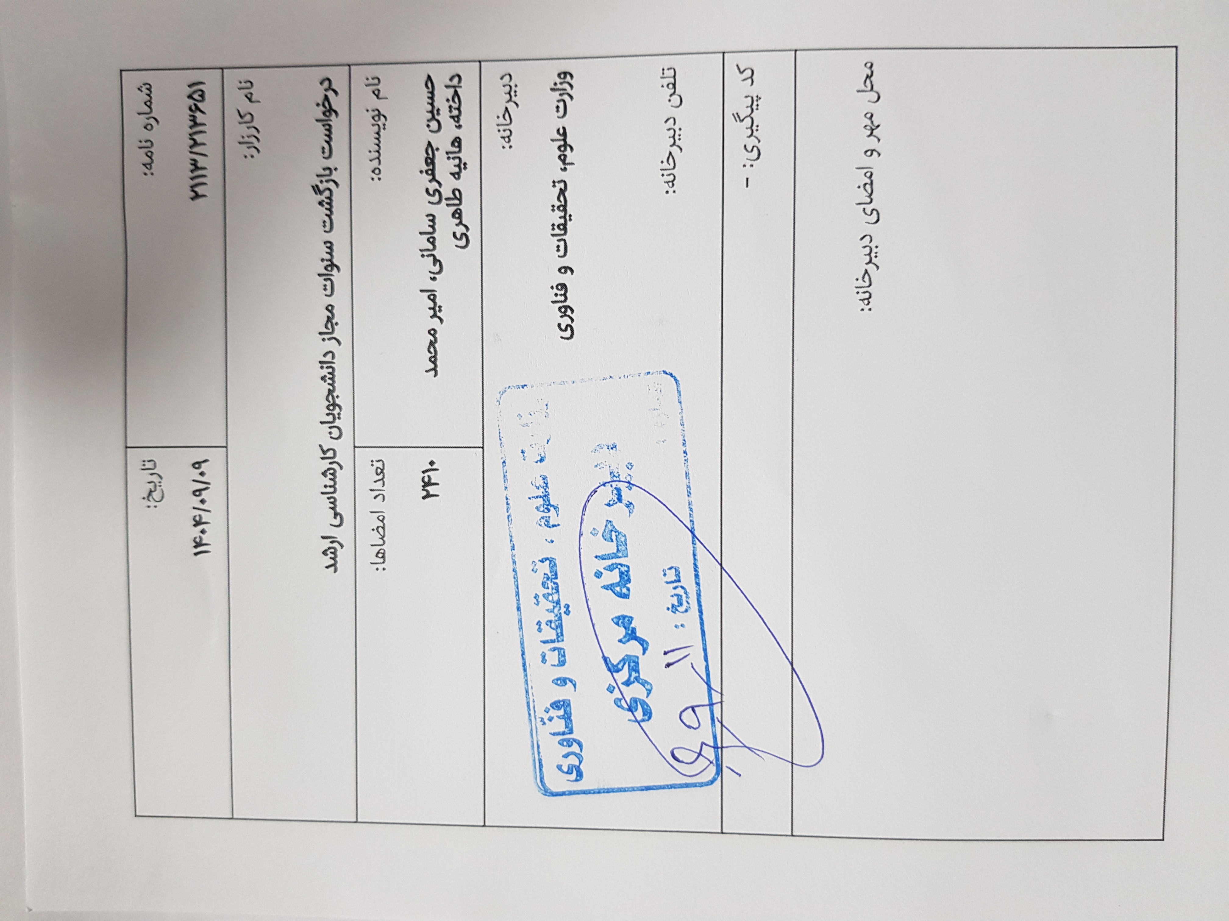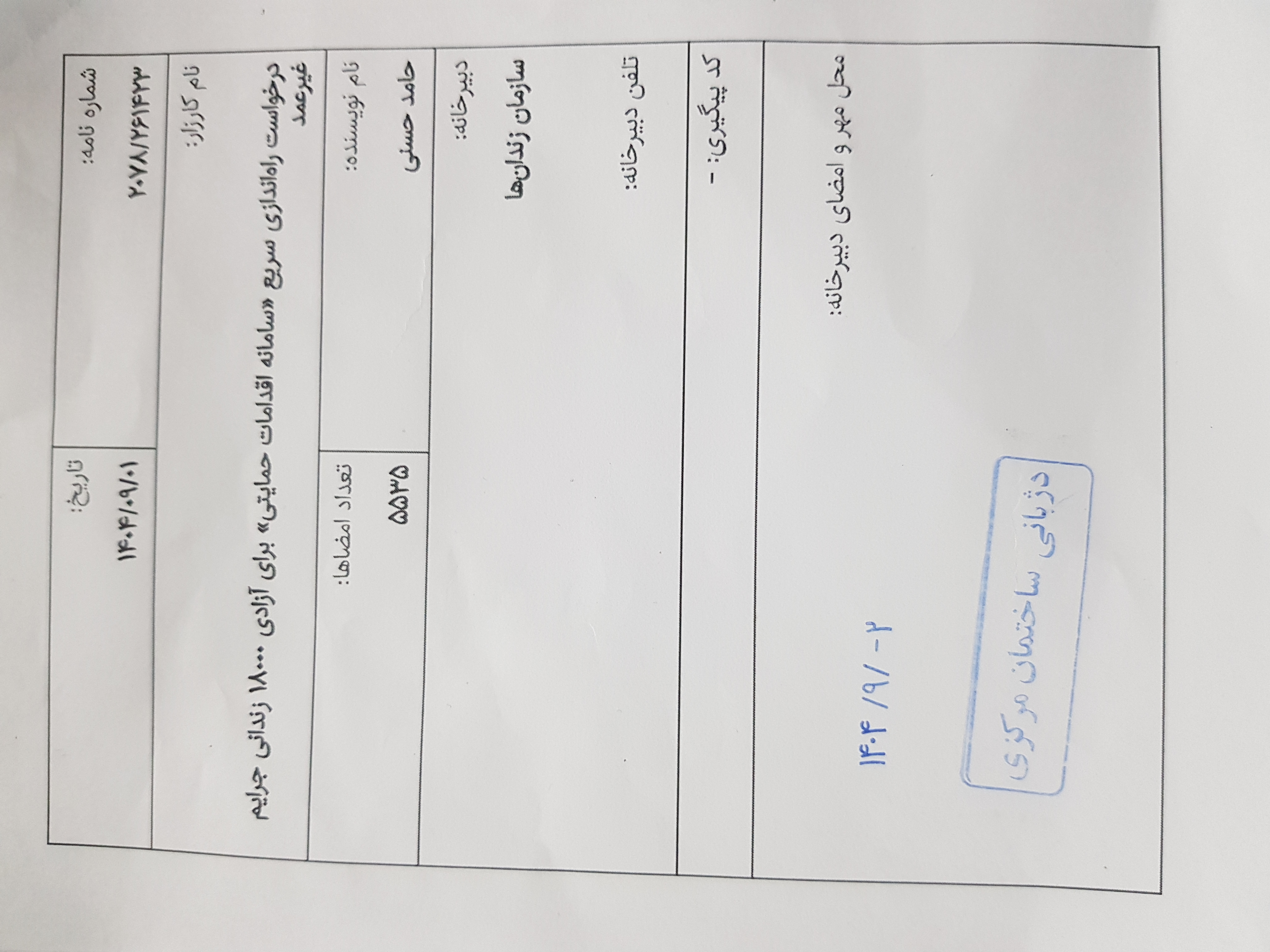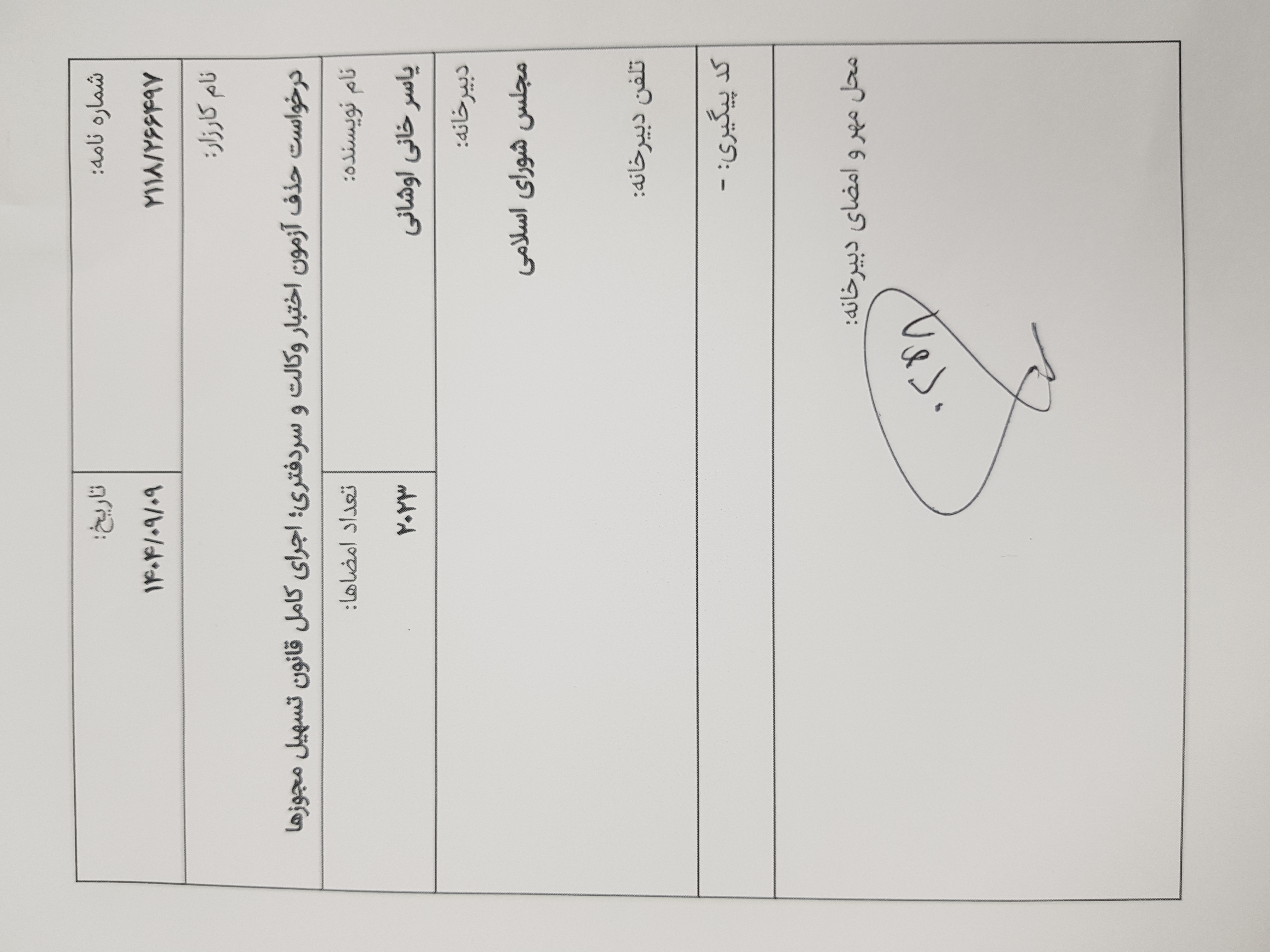 ثبت رسمی در دبیرخانه