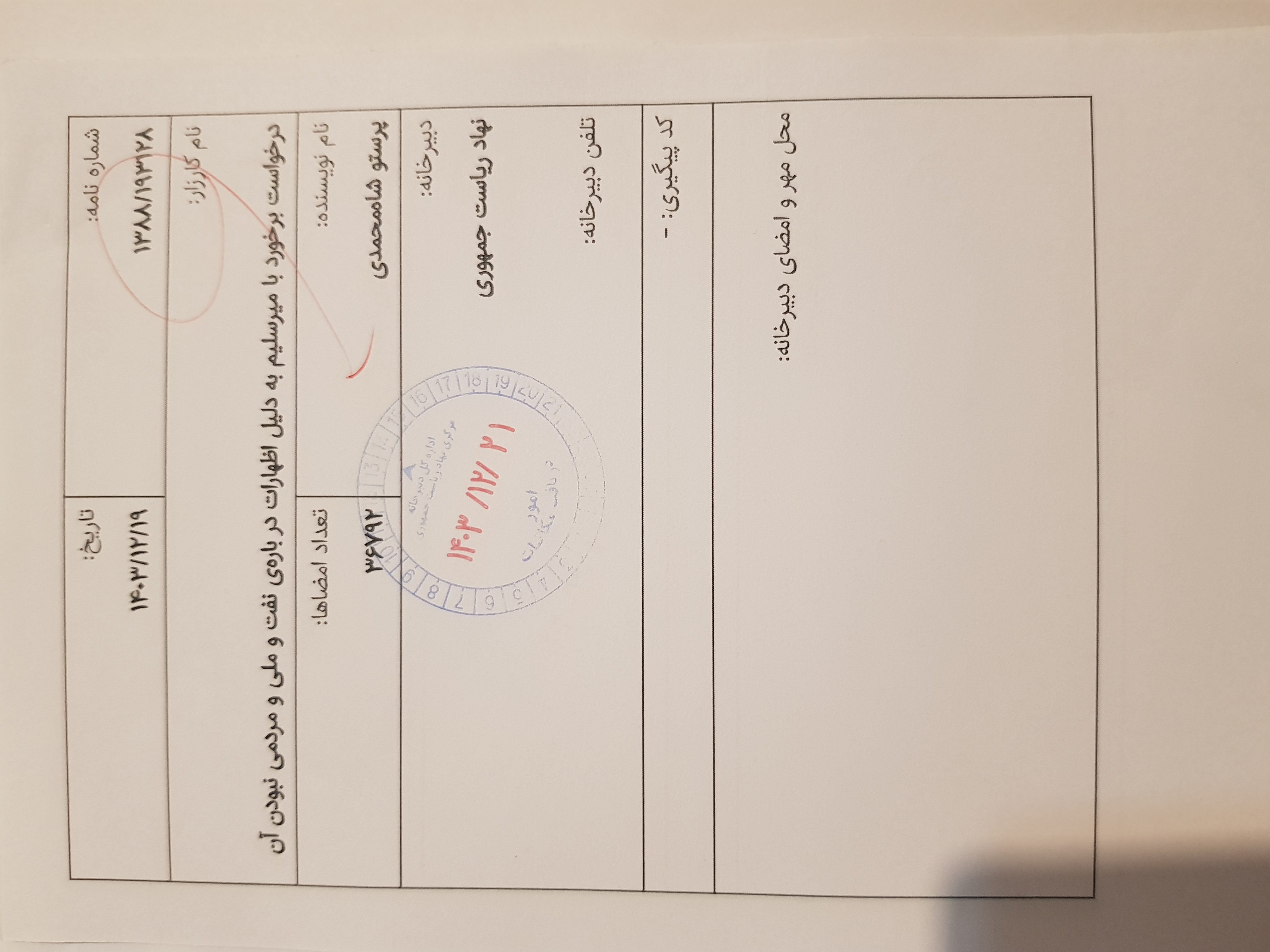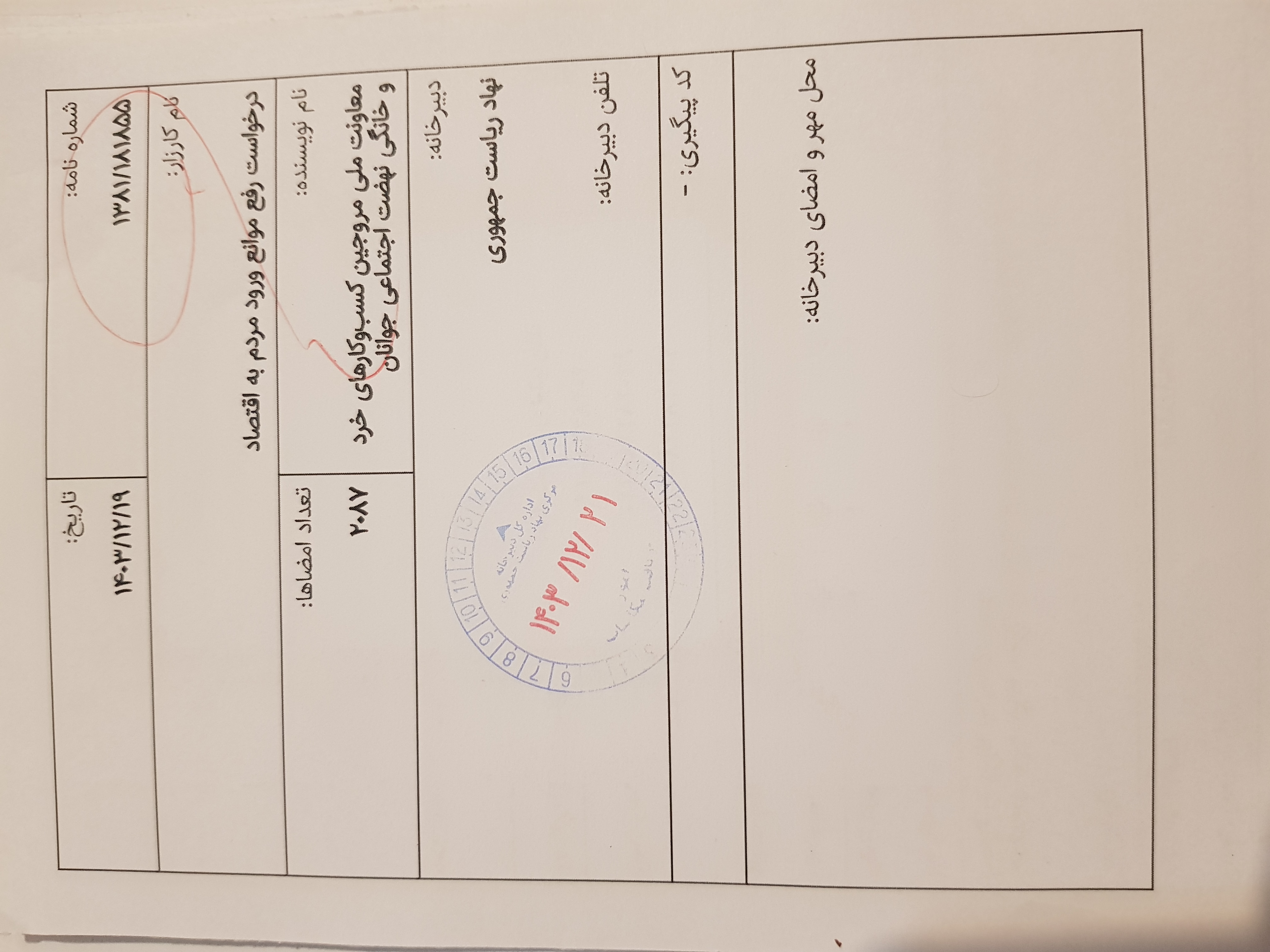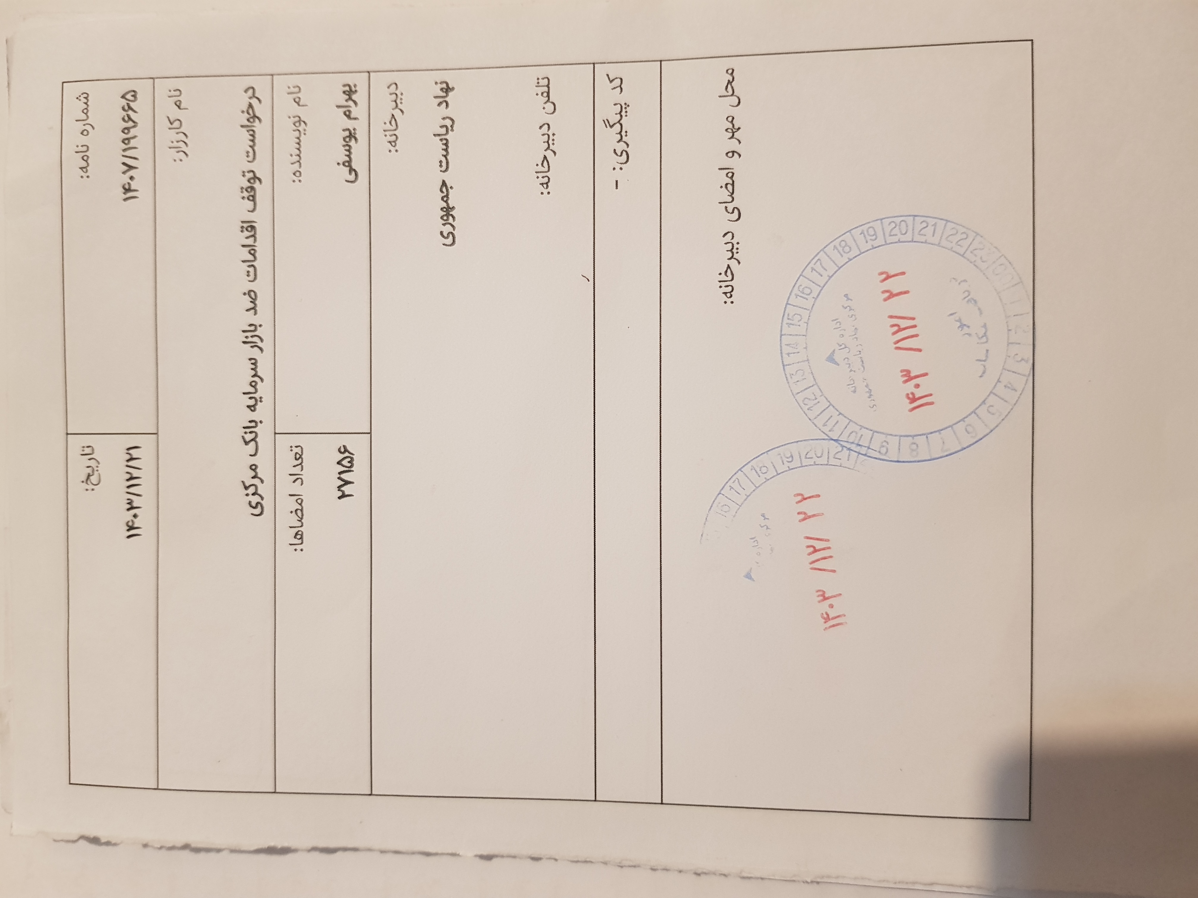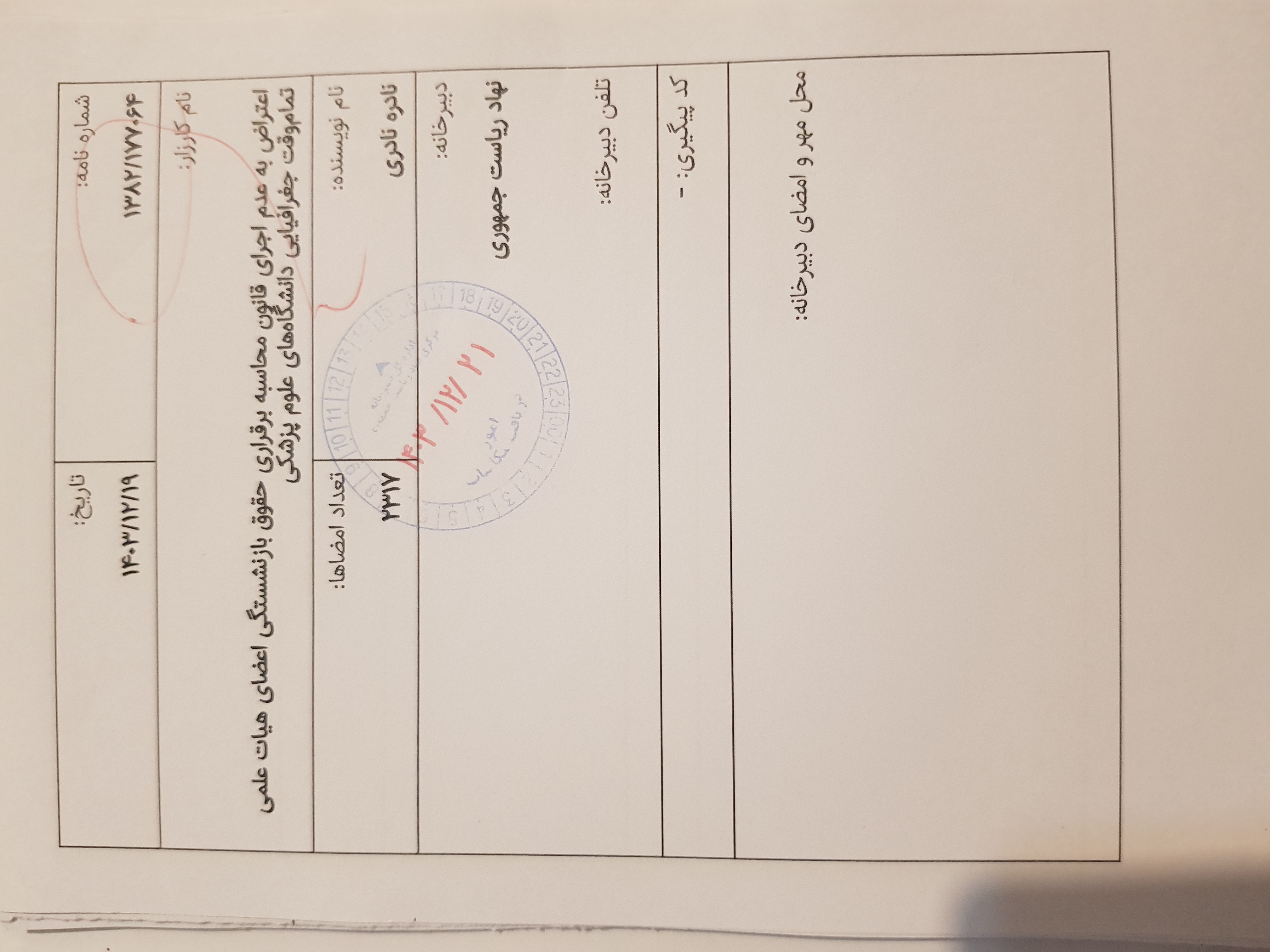 ثبت رسمی در دبیرخانه