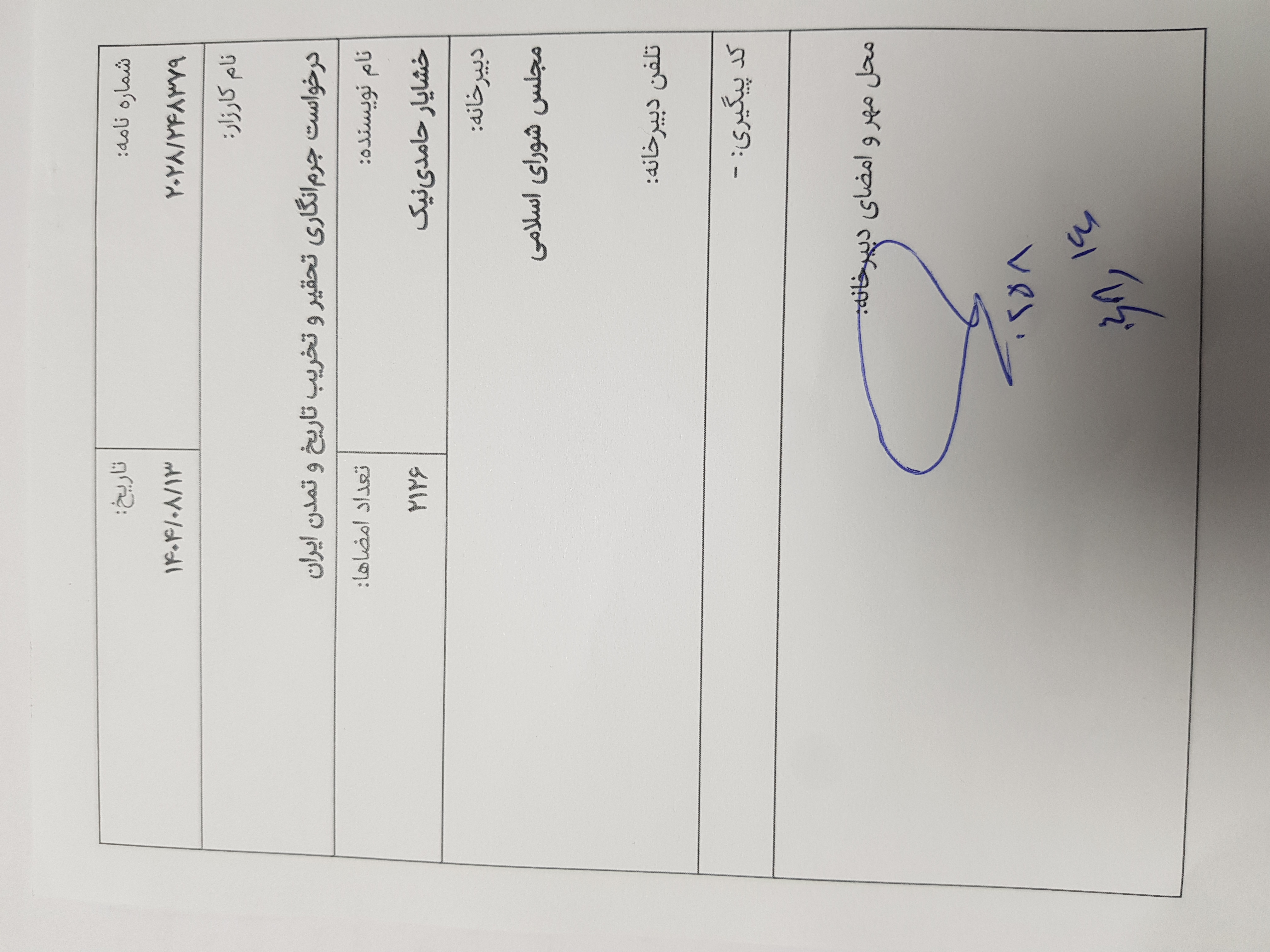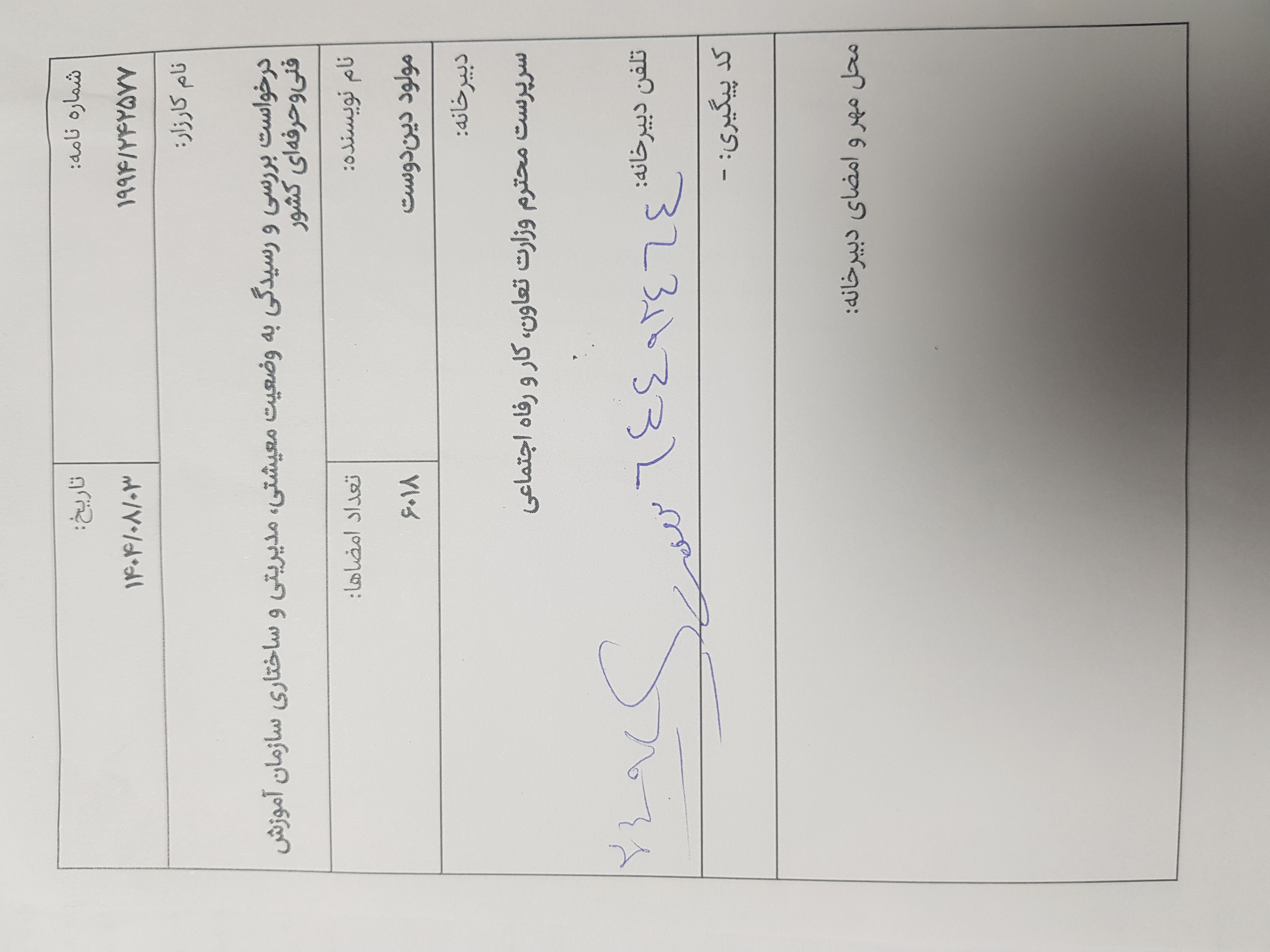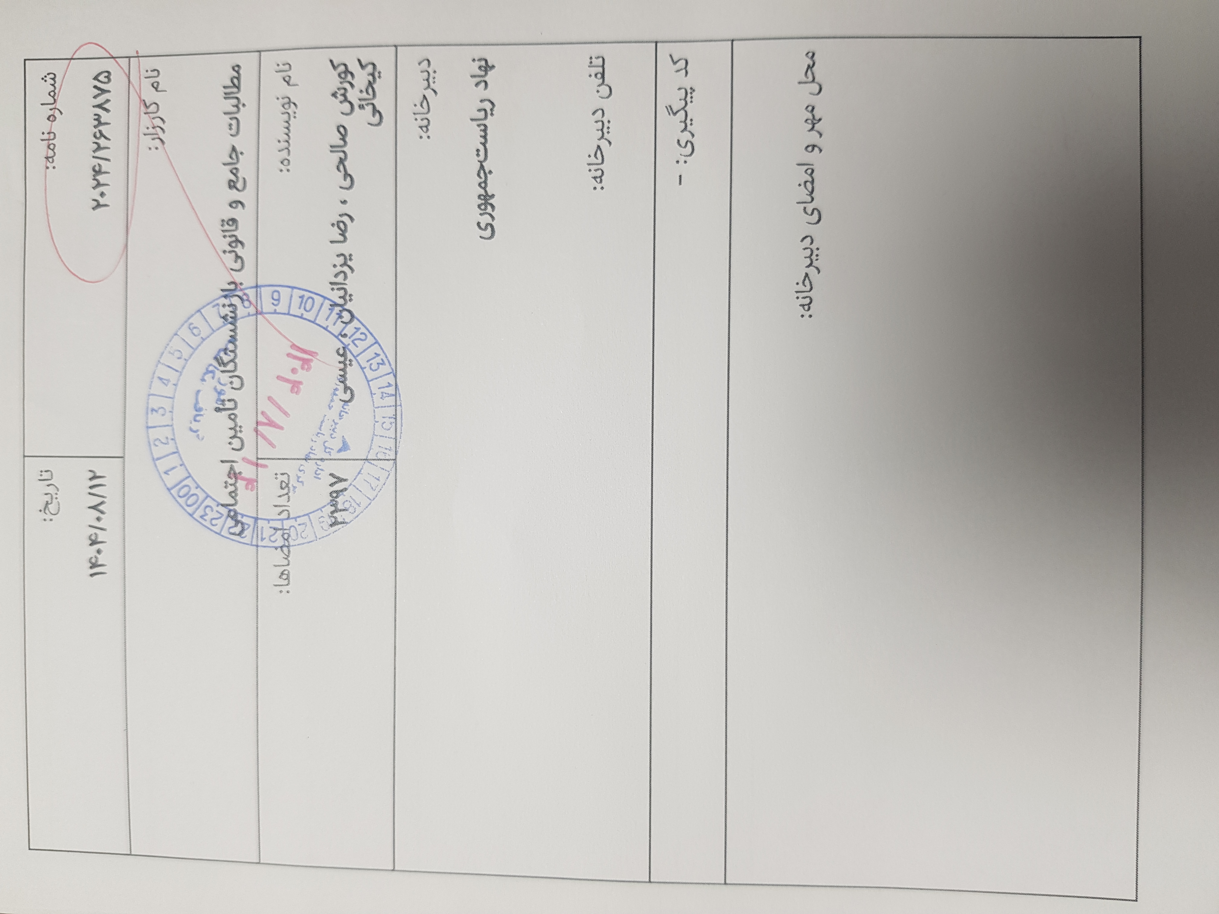 ثبت رسمی در دبیرخانه