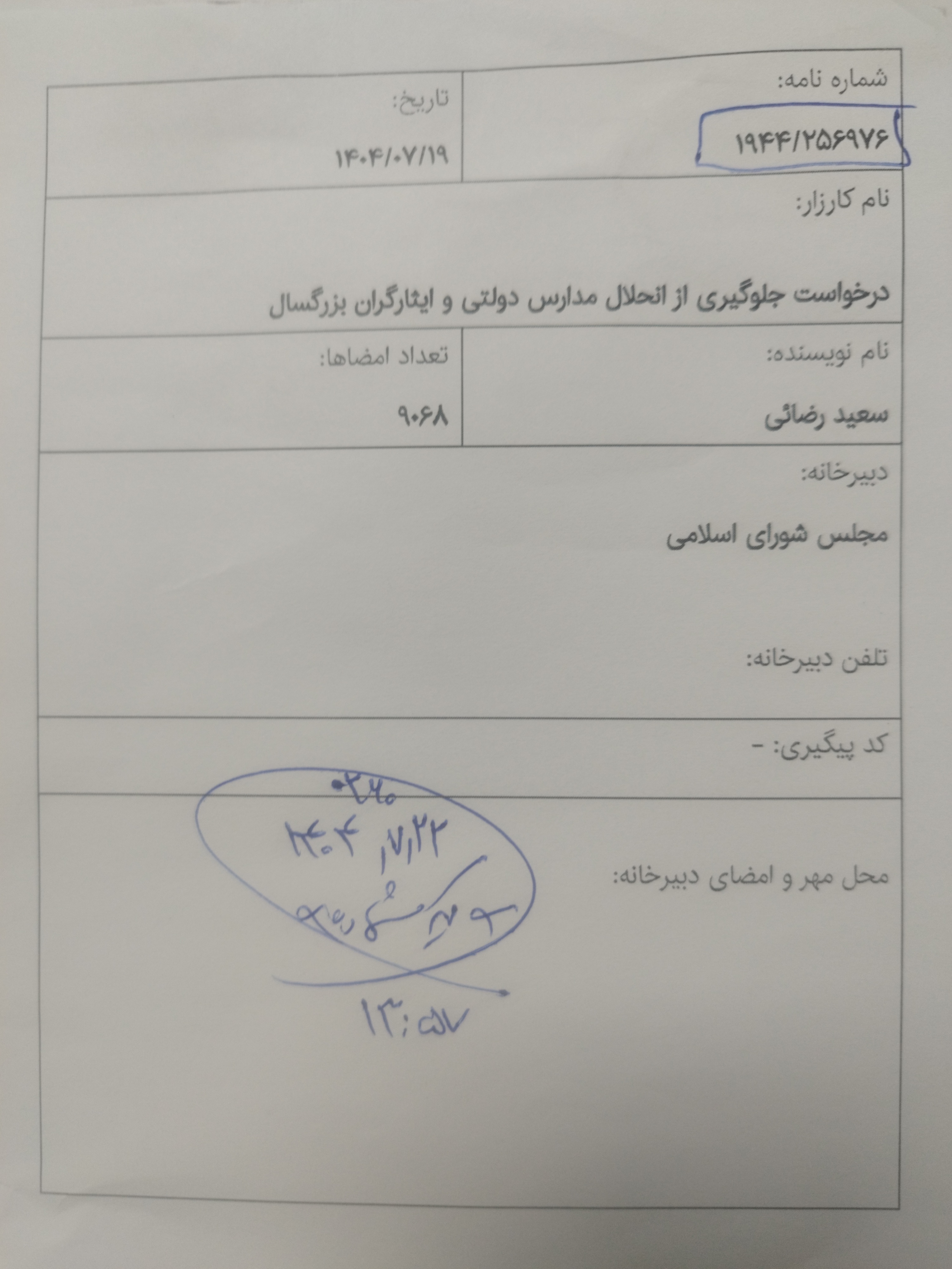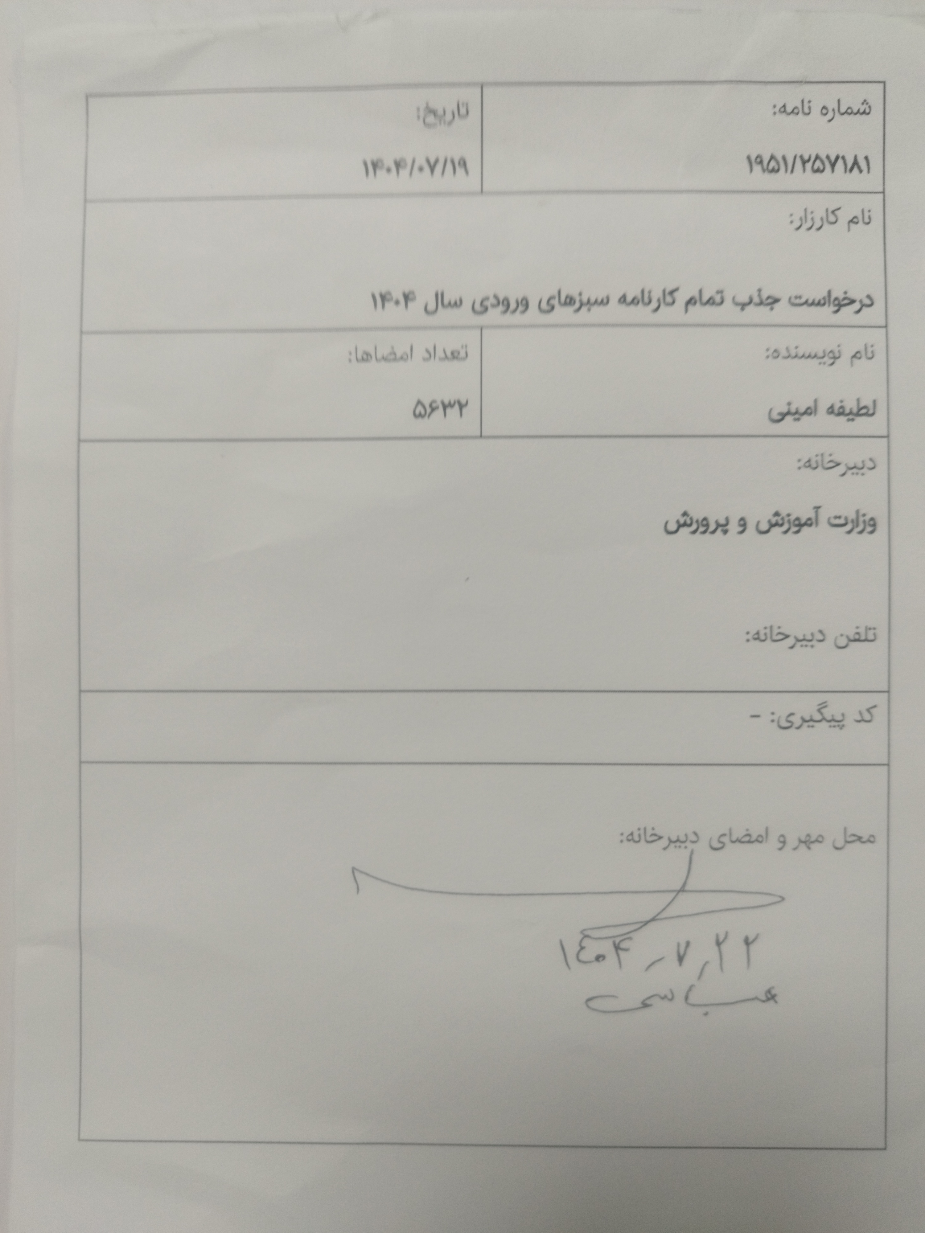 این کارزار در دبیرخانه وزارت آموزش و پرورش ثبت شد.