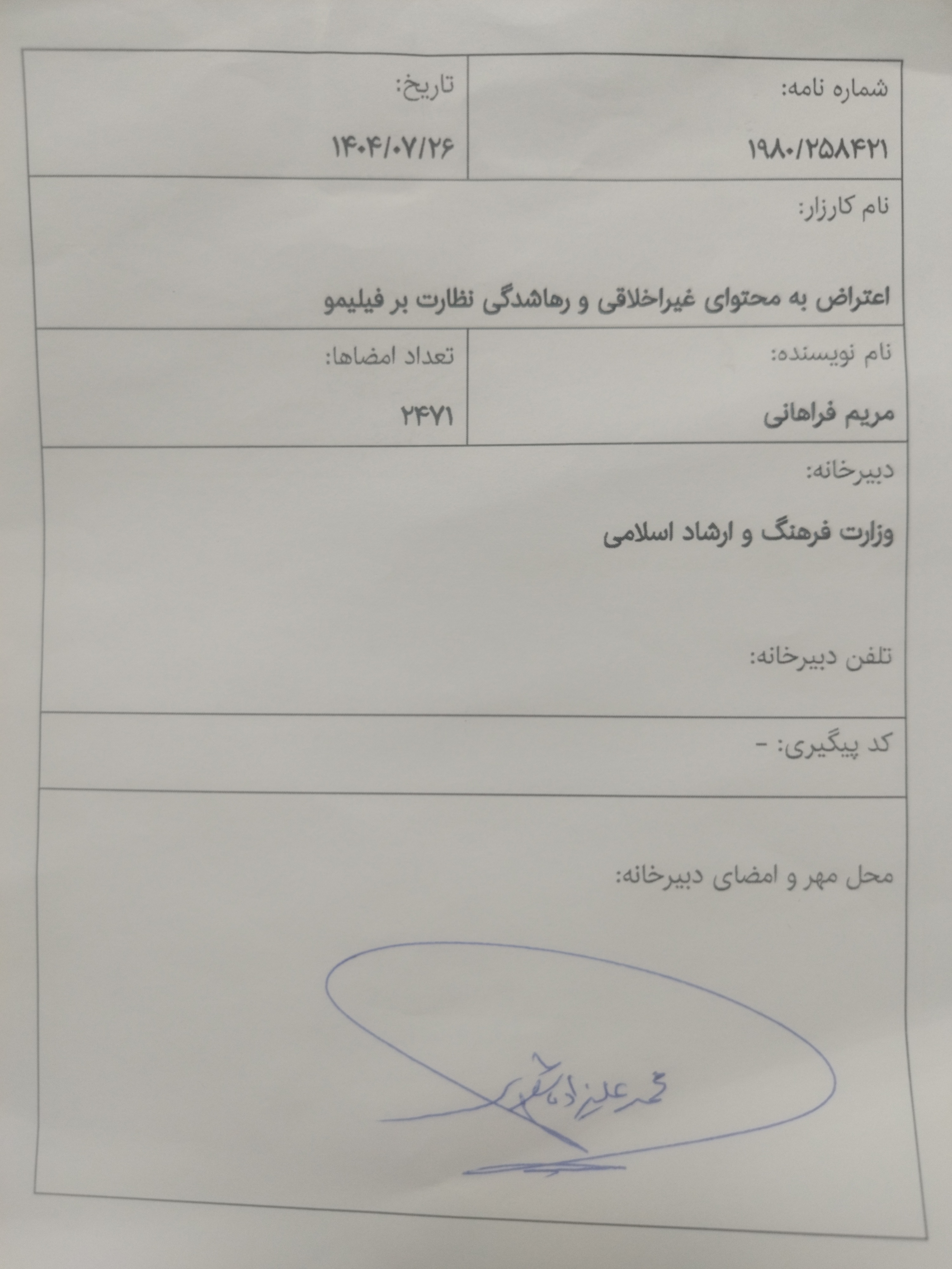 این کارزار در دبیرخانه وزارت فرهنگ و ارشاد اسلامی ثبت شد.