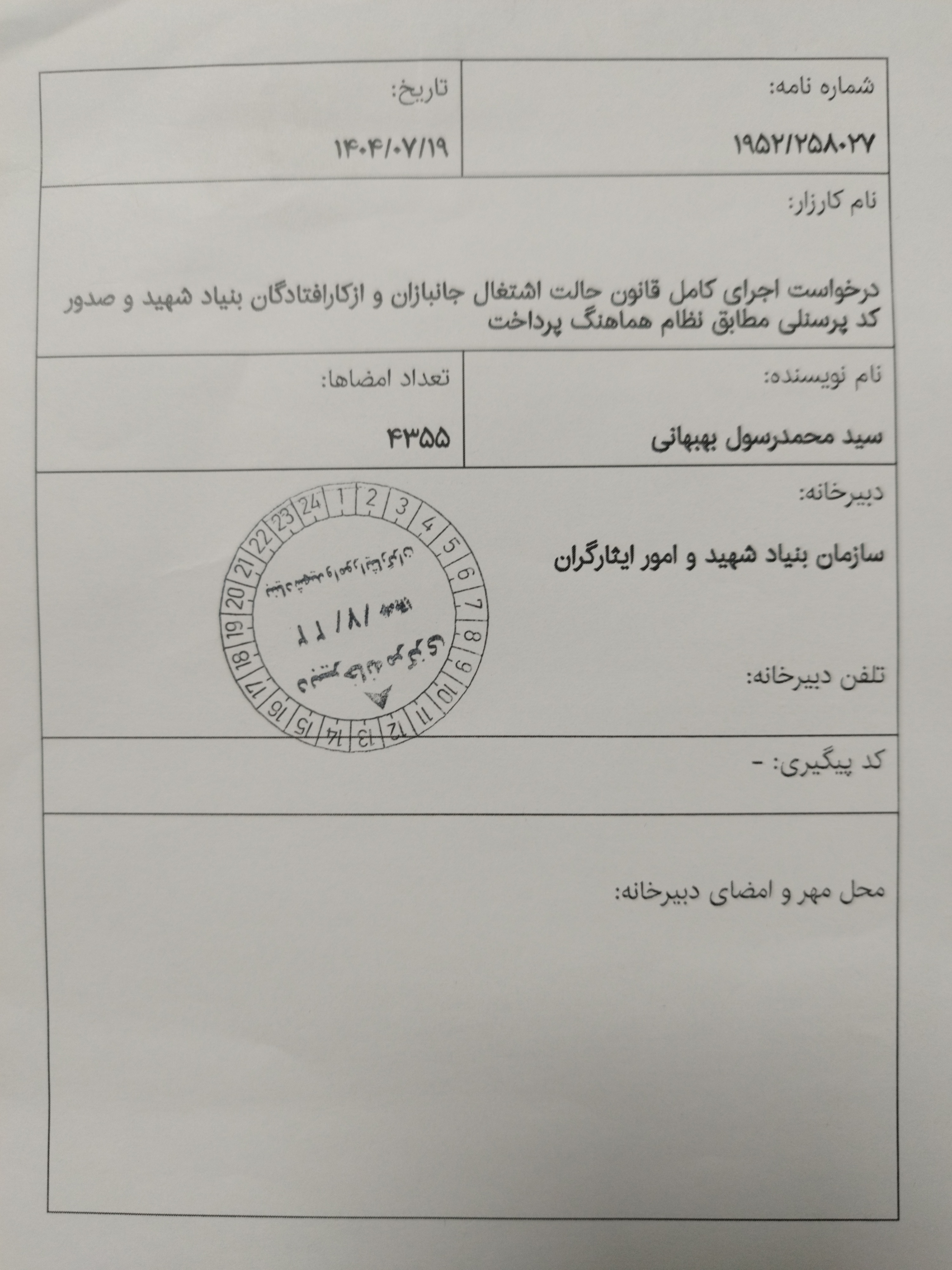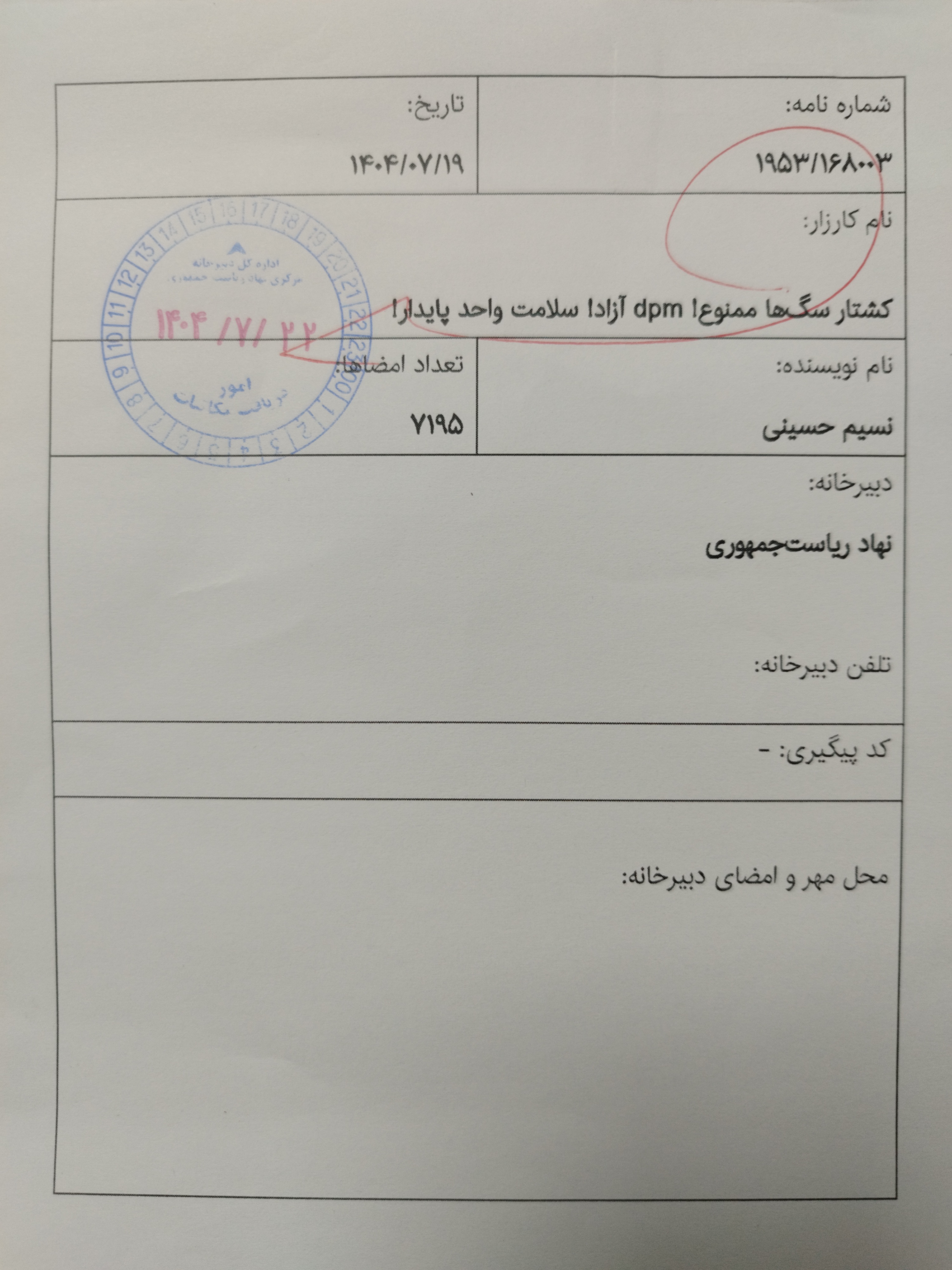 نامه گزارش این کارزار جهت پیگیری صادر شد.
