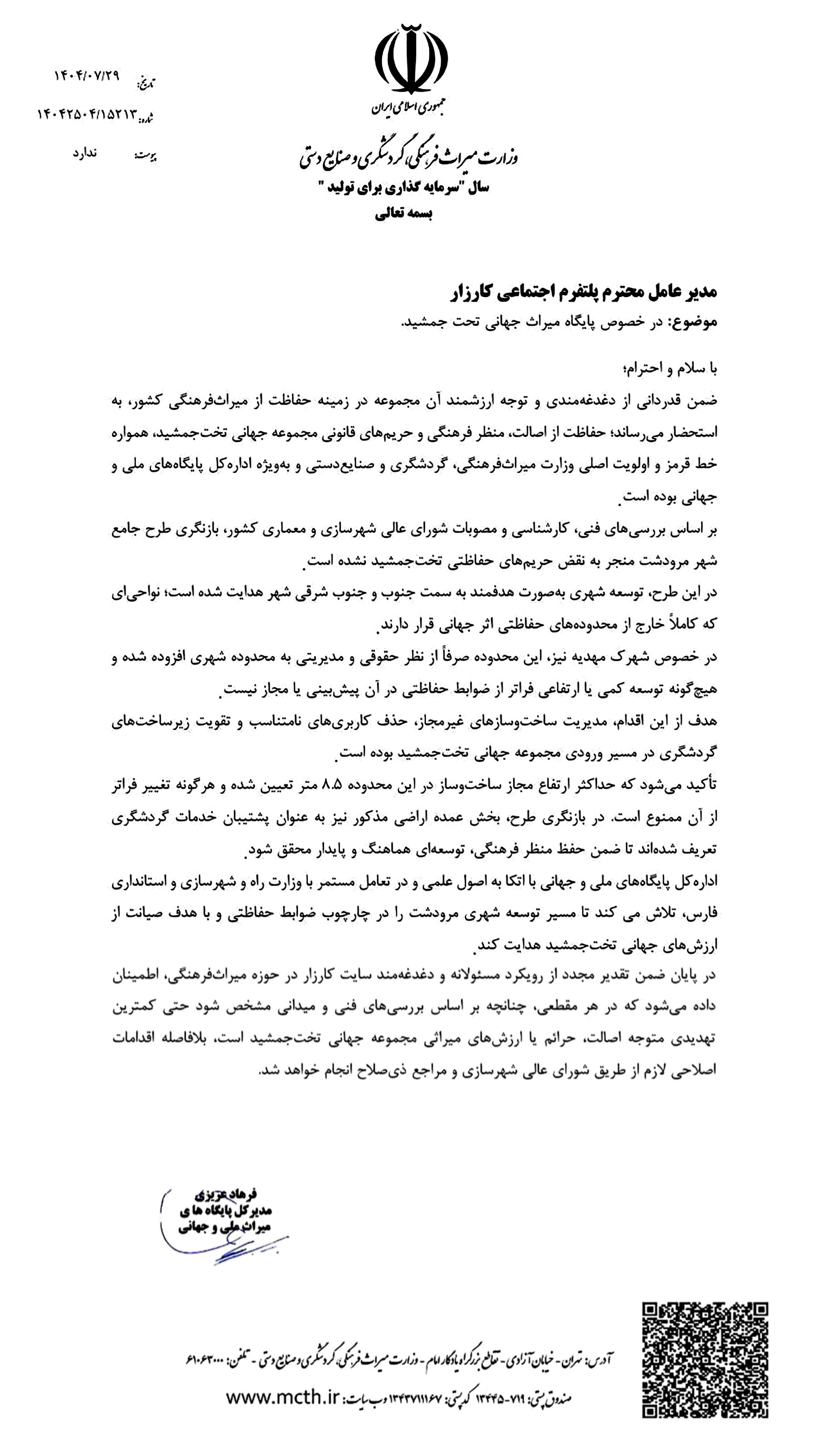 پاسخ رسمی وزارت میراث فرهنگی به کارزار «هشدار خروج تخت جمشید از فهرست میراث جهانی»