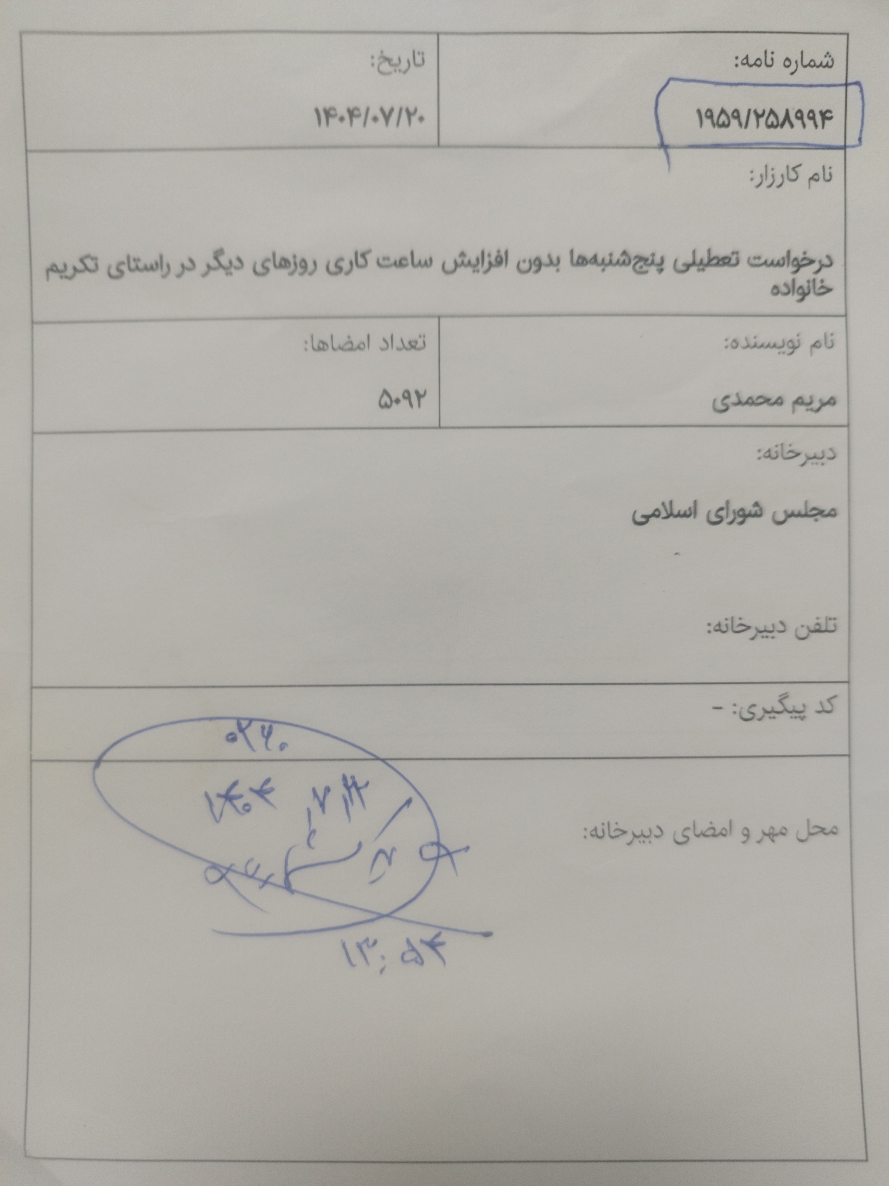 این کارزار در دبیرخانه مجلس شورای اسلامی ثبت شد.