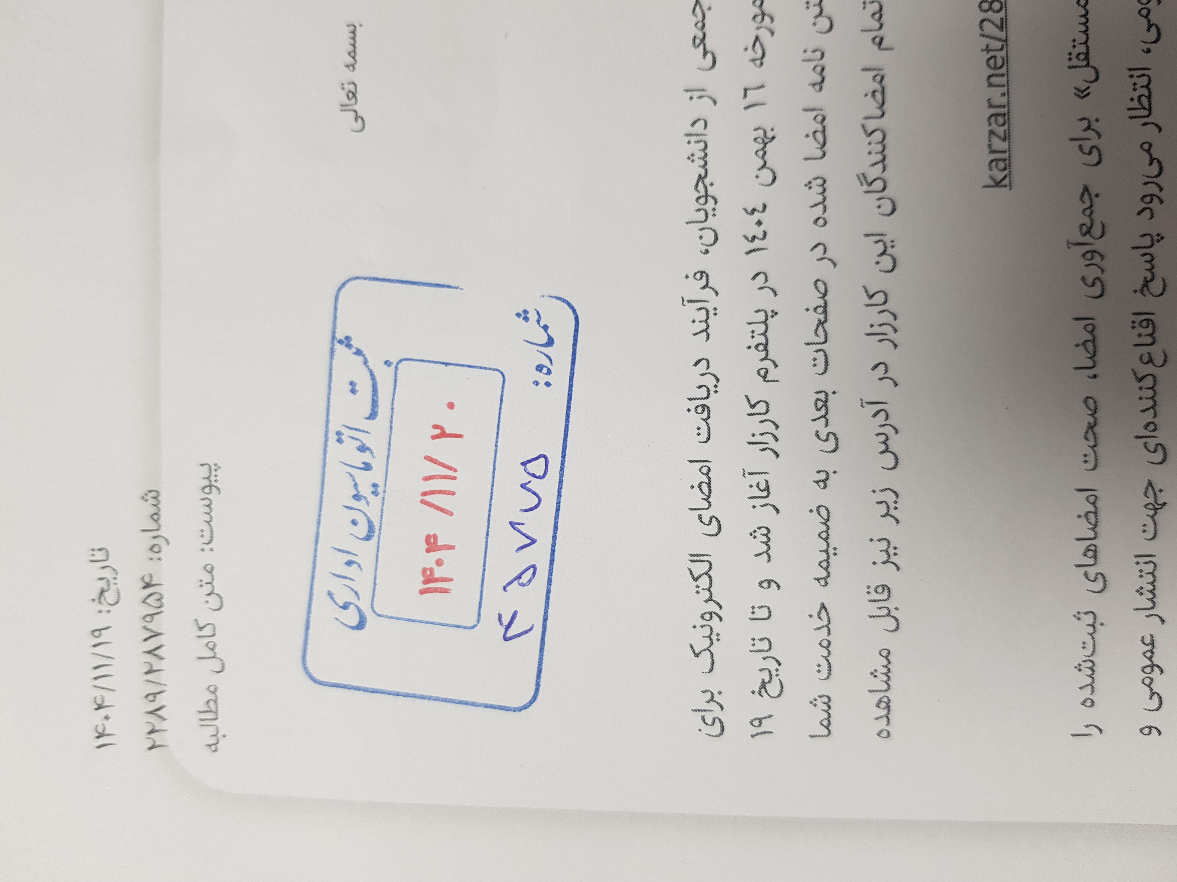 نامه گزارش این کارزار جهت پیگیری صادر شد.