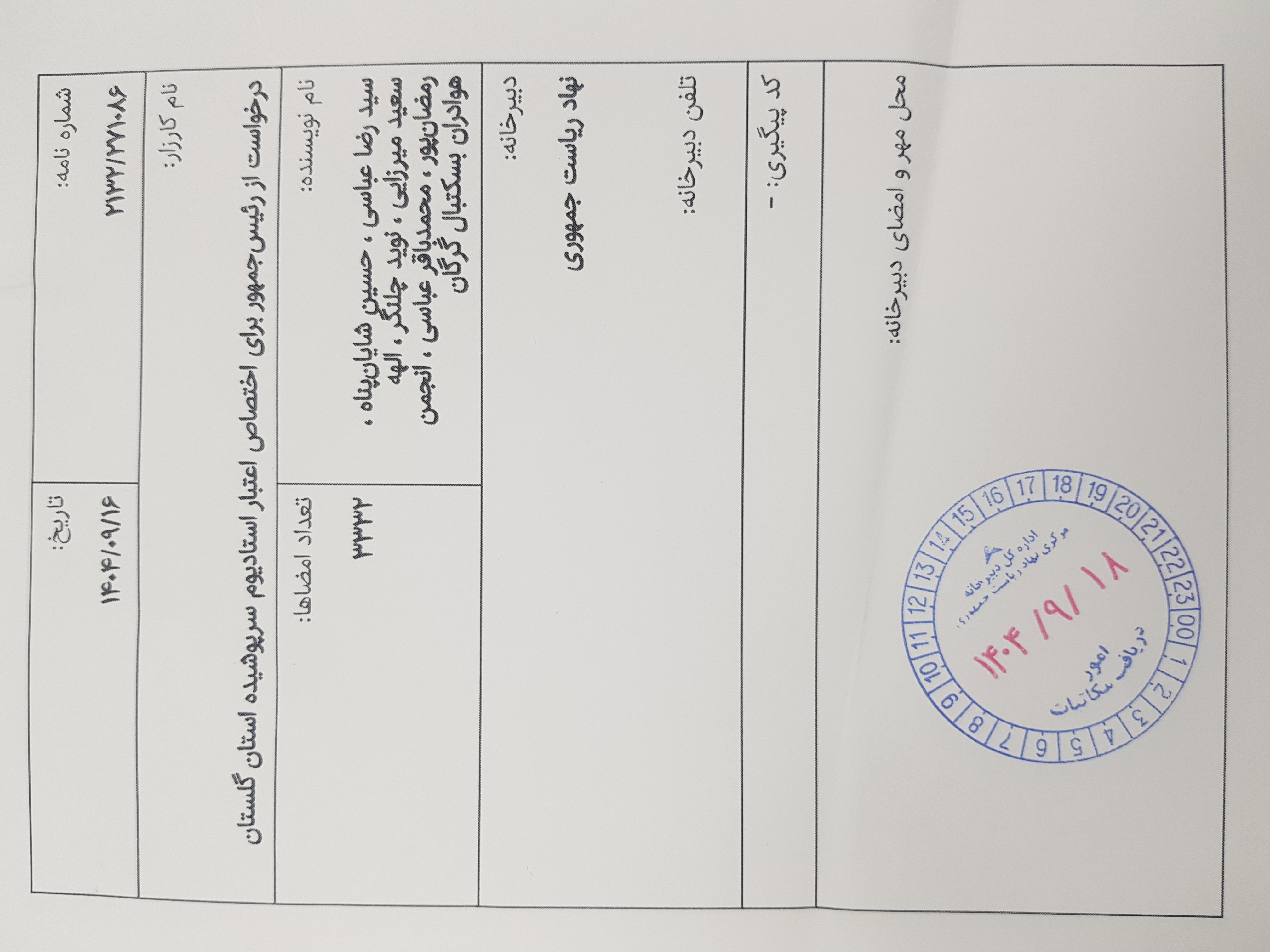 ثبت رسمی در دبیرخانه